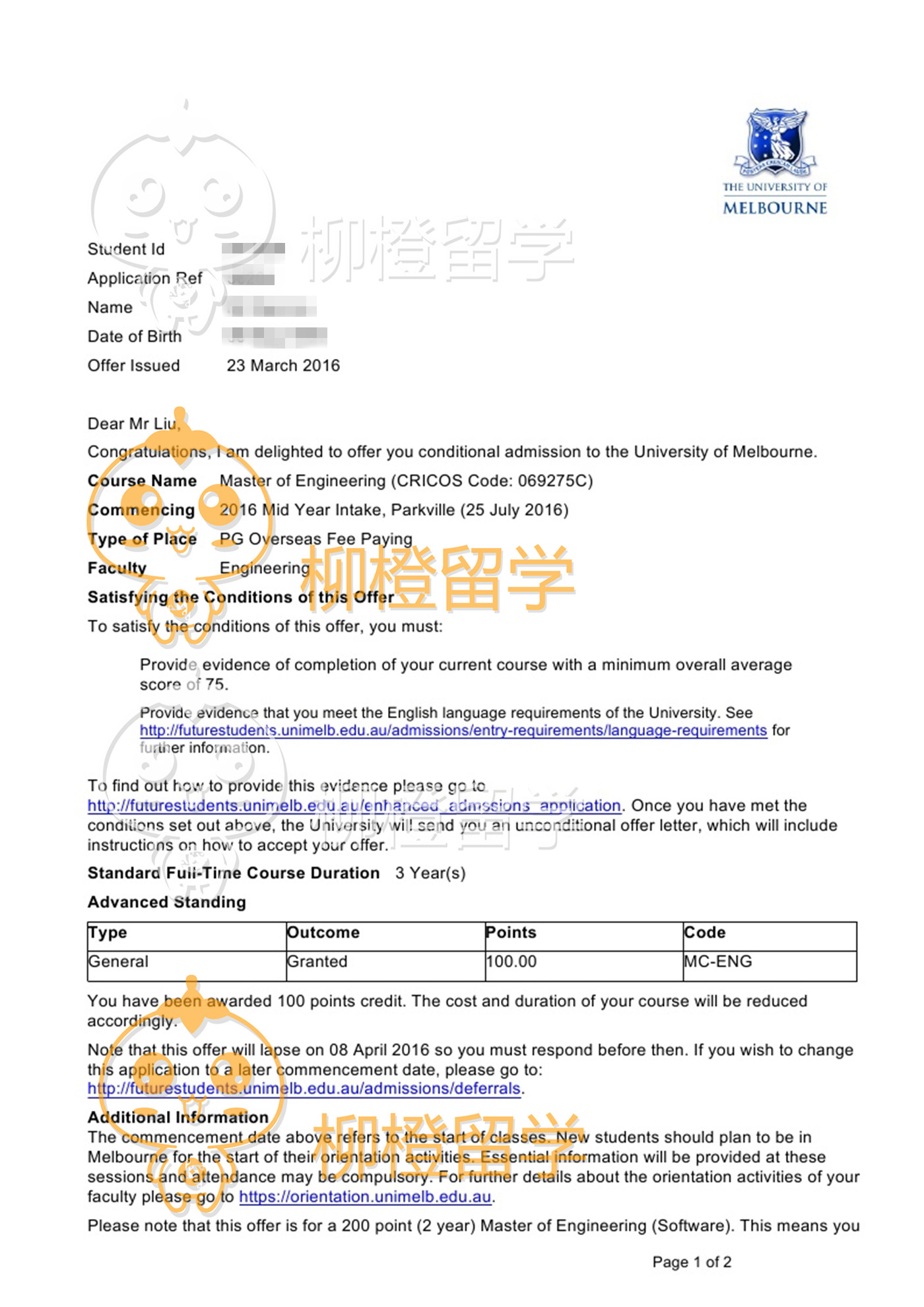 重庆大学,绩点2.73,在柳橙网老师专业指导下成功申请到了澳洲墨尔本大学,全程高效透明,值得推荐