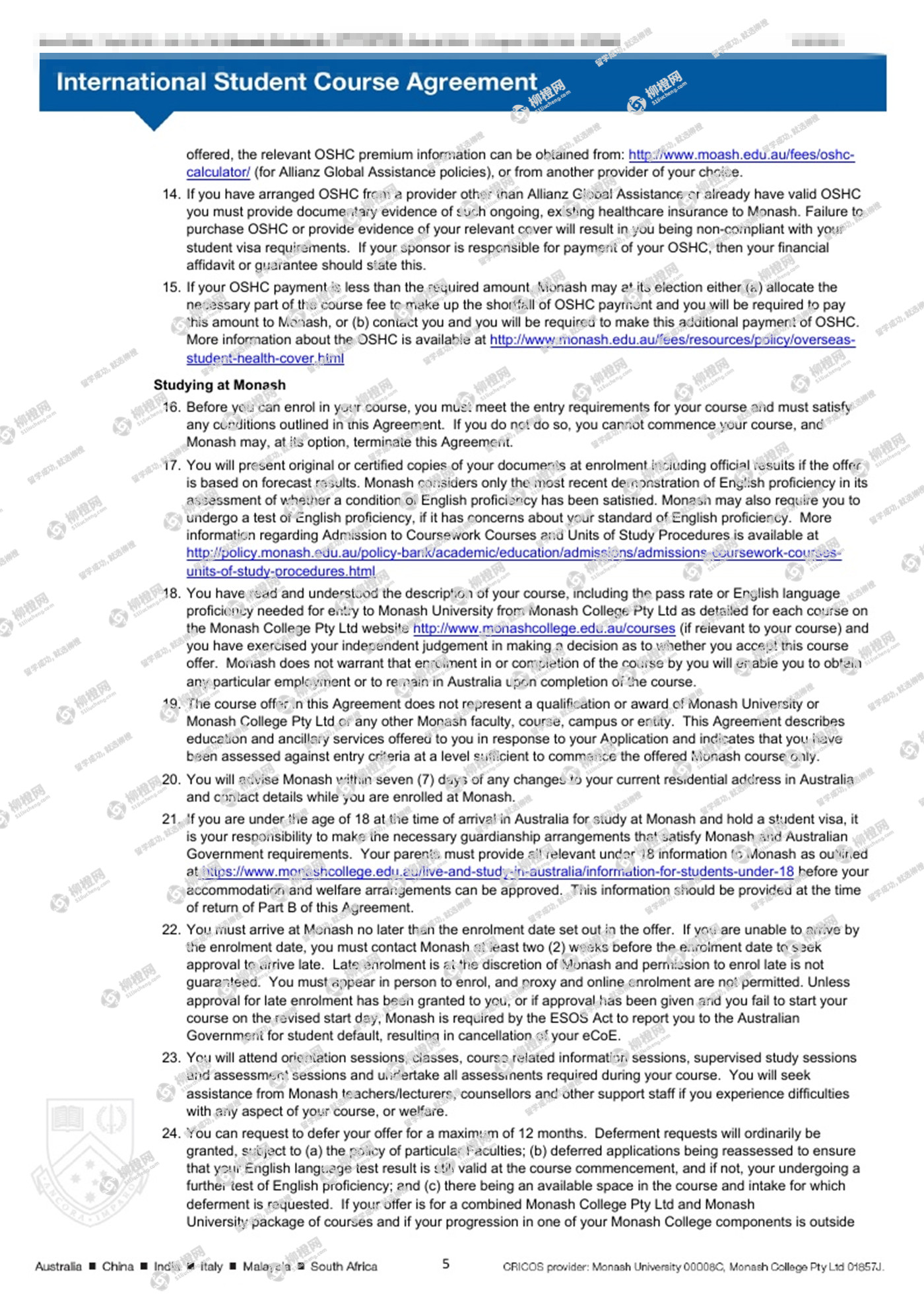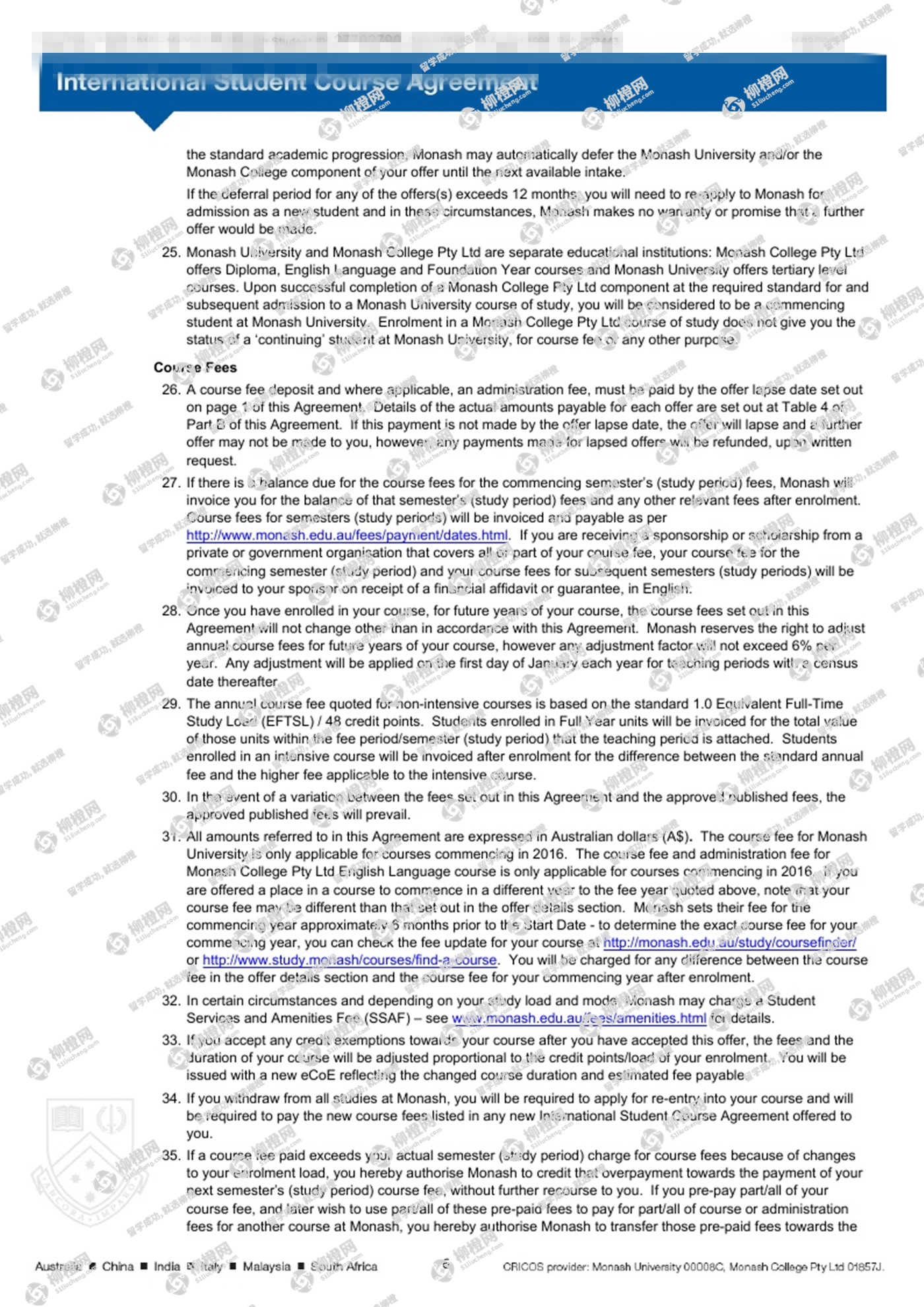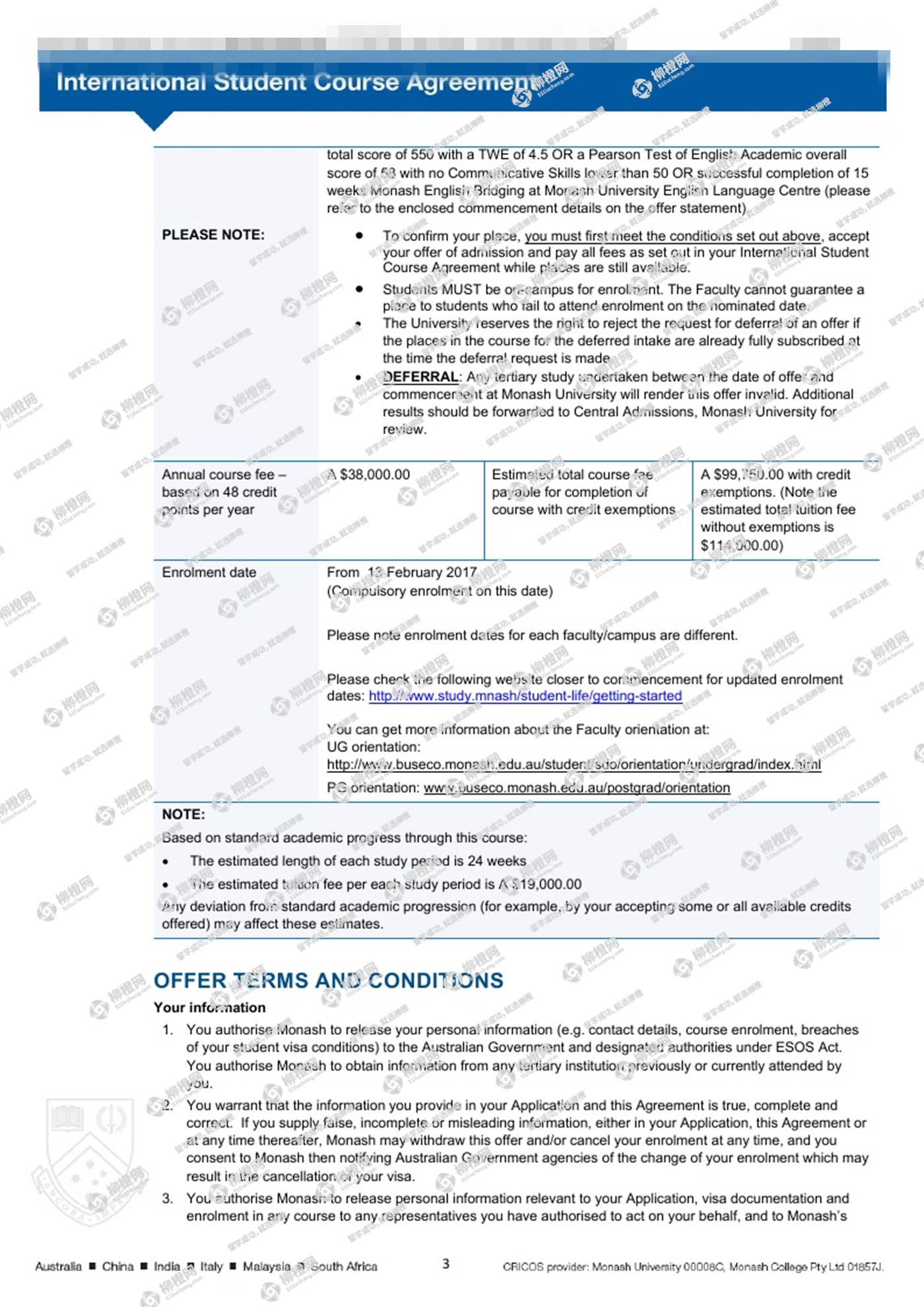 迟同学,山西大学会计专业,在柳橙网专业老师帮助下,成功拿到了澳洲八大莫纳什大学Bachelor of Commerce--accounting专业的offer。