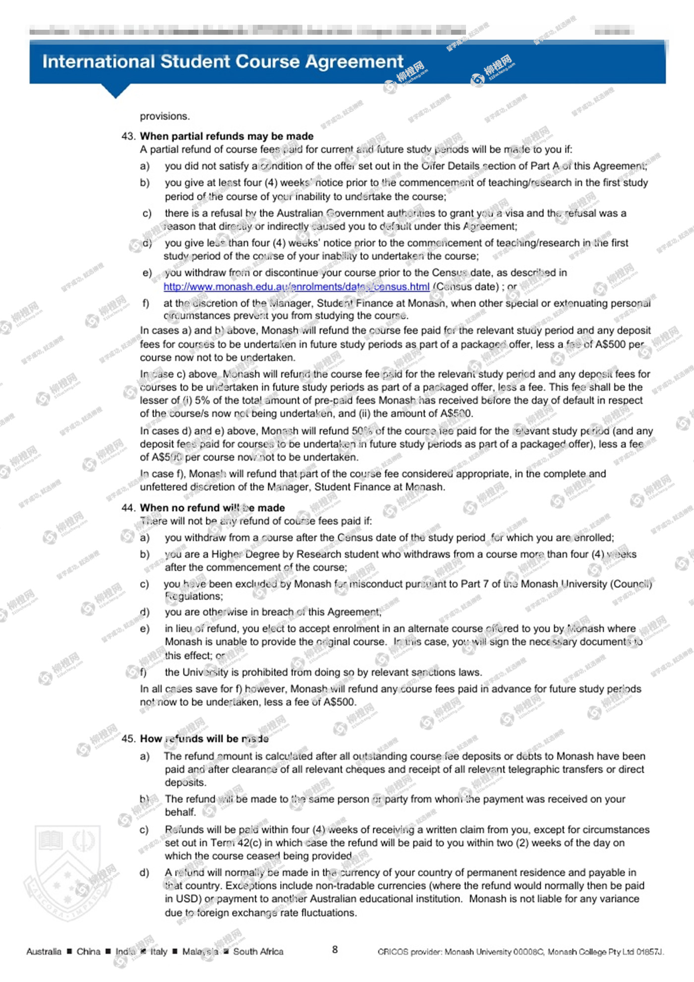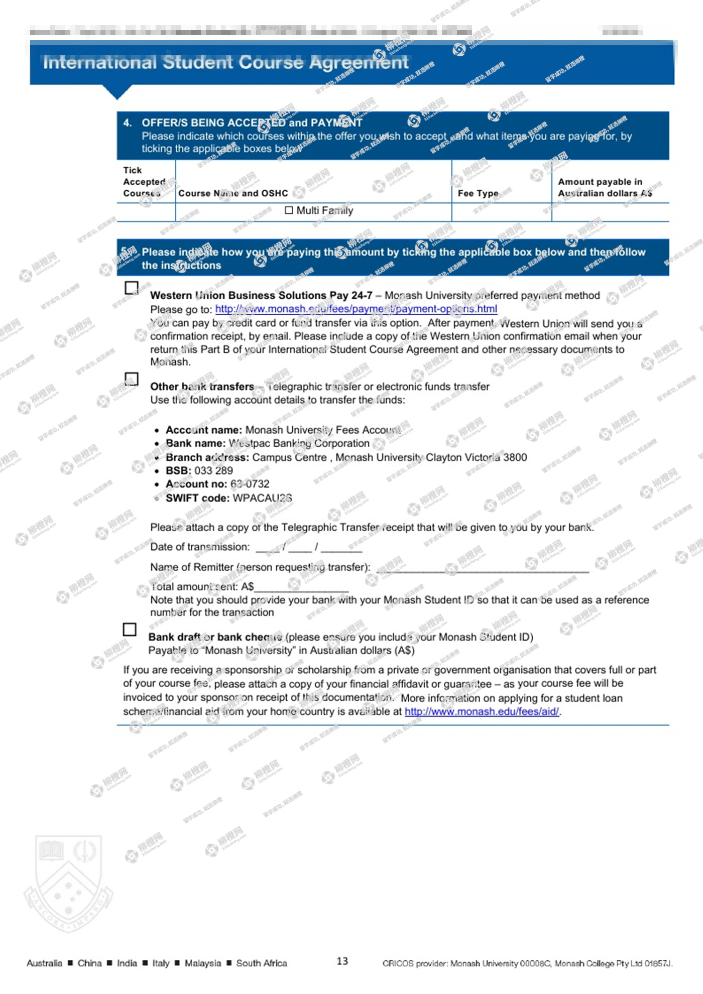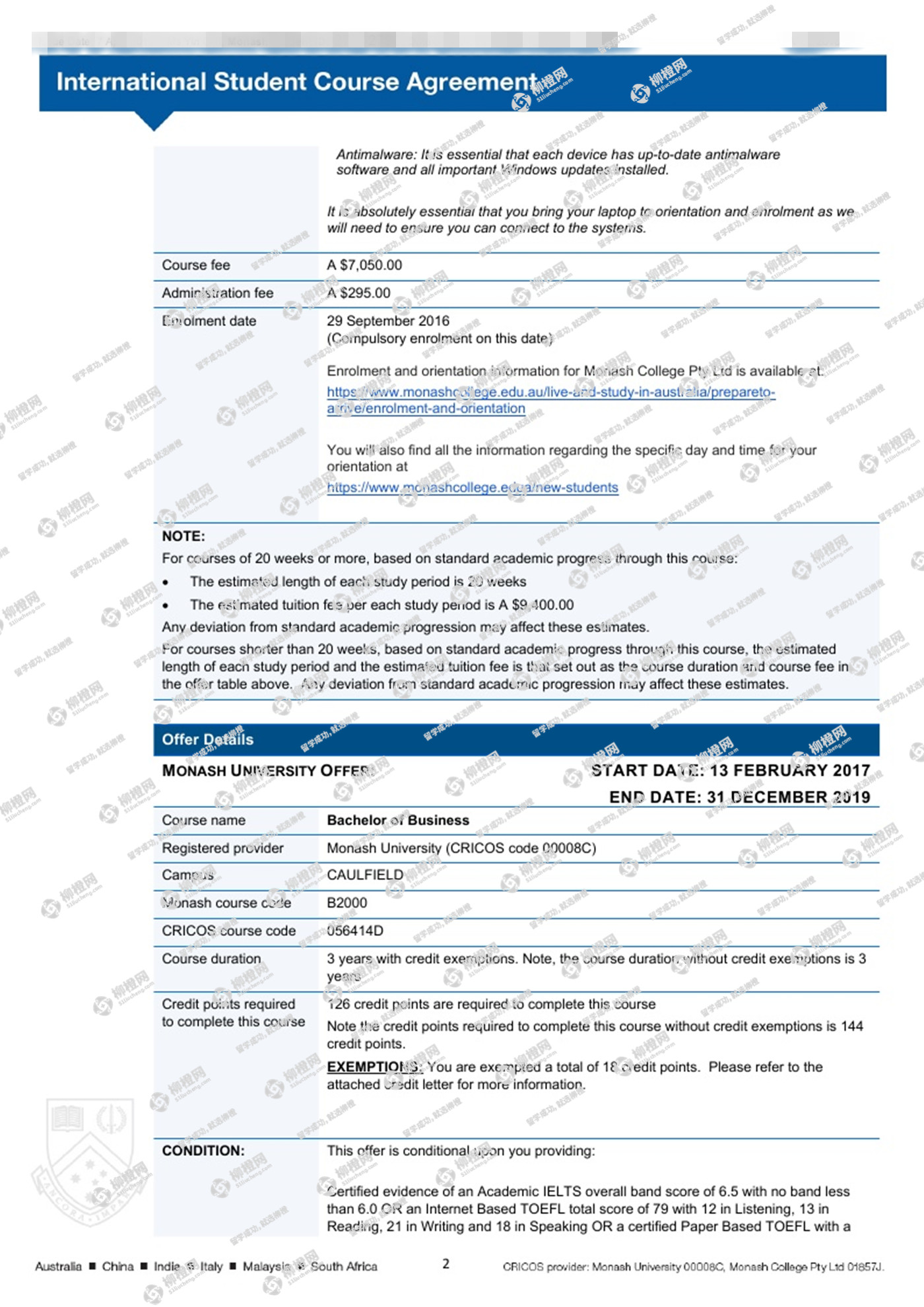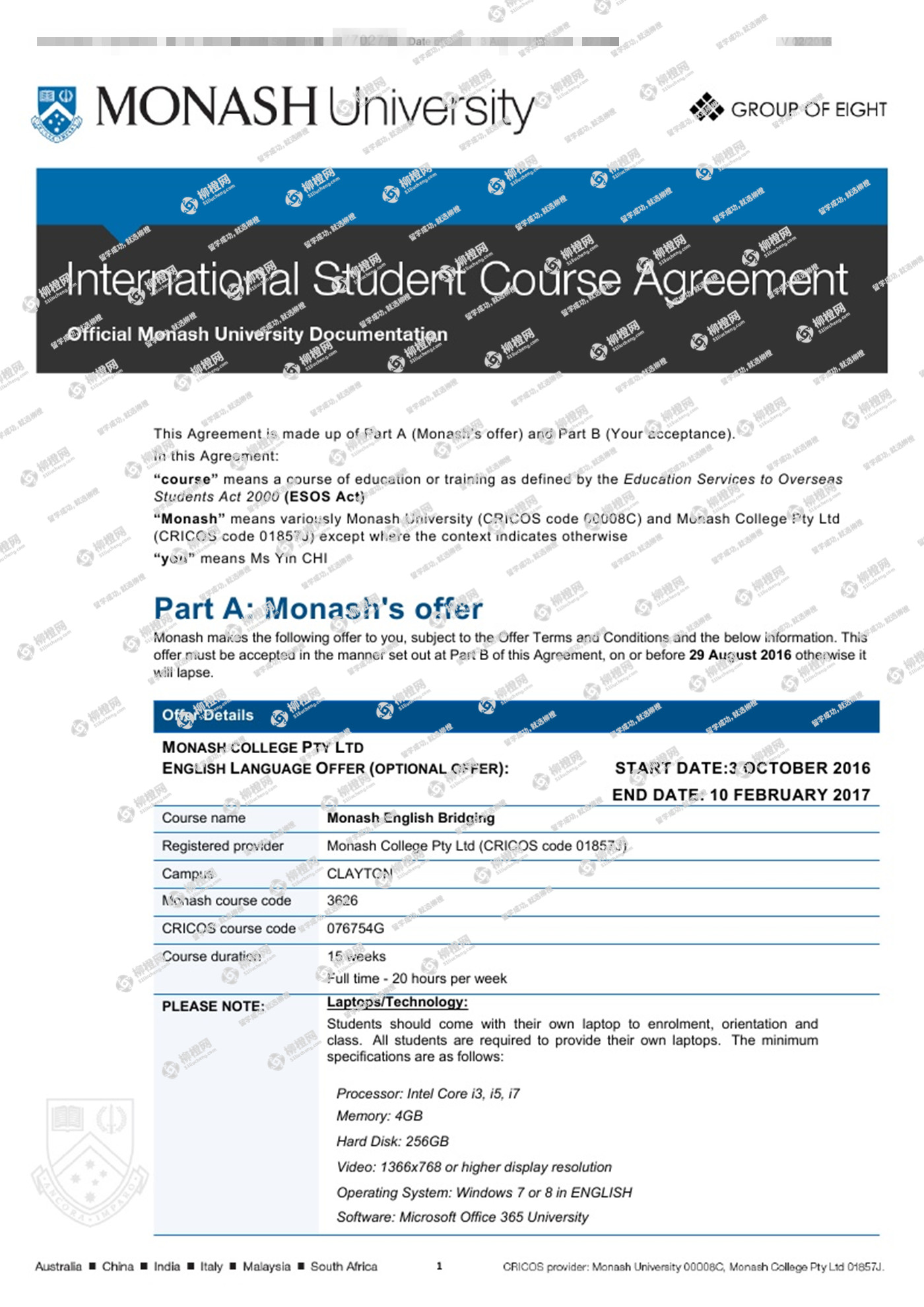 迟同学,山西大学会计专业,在柳橙网专业老师帮助下,成功拿到了澳洲八大莫纳什大学Bachelor of Commerce--accounting专业的offer。