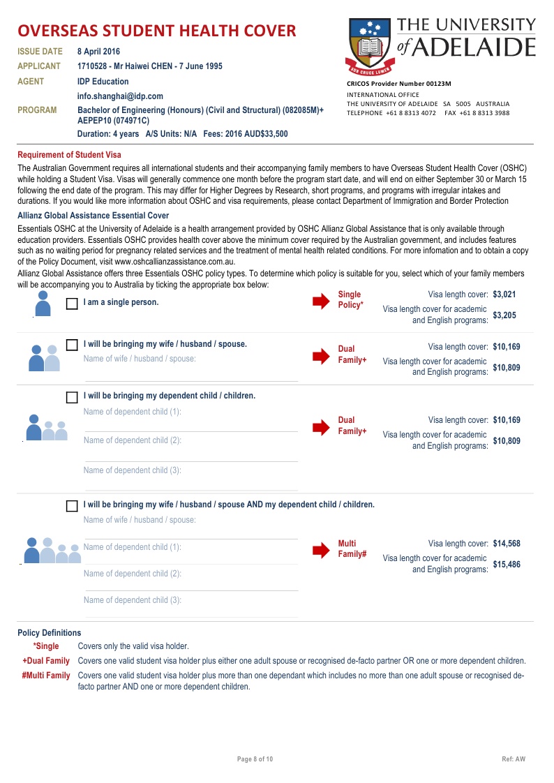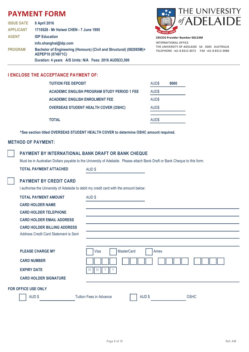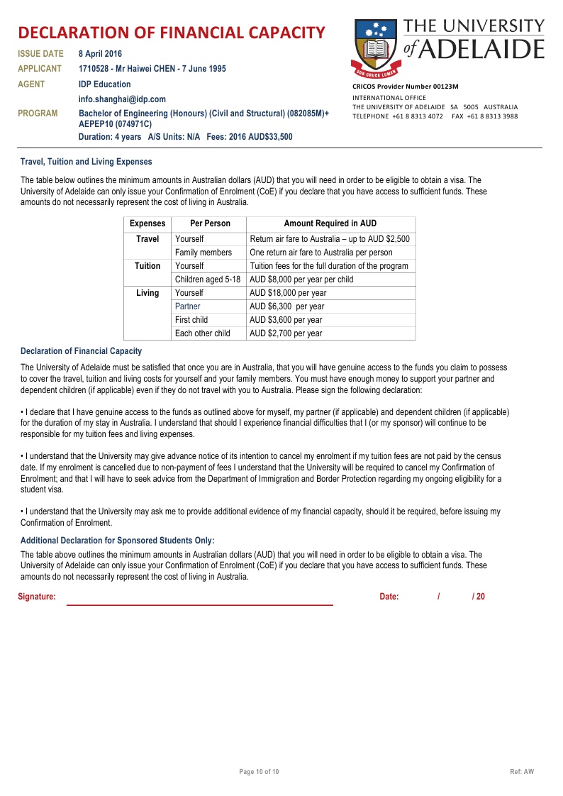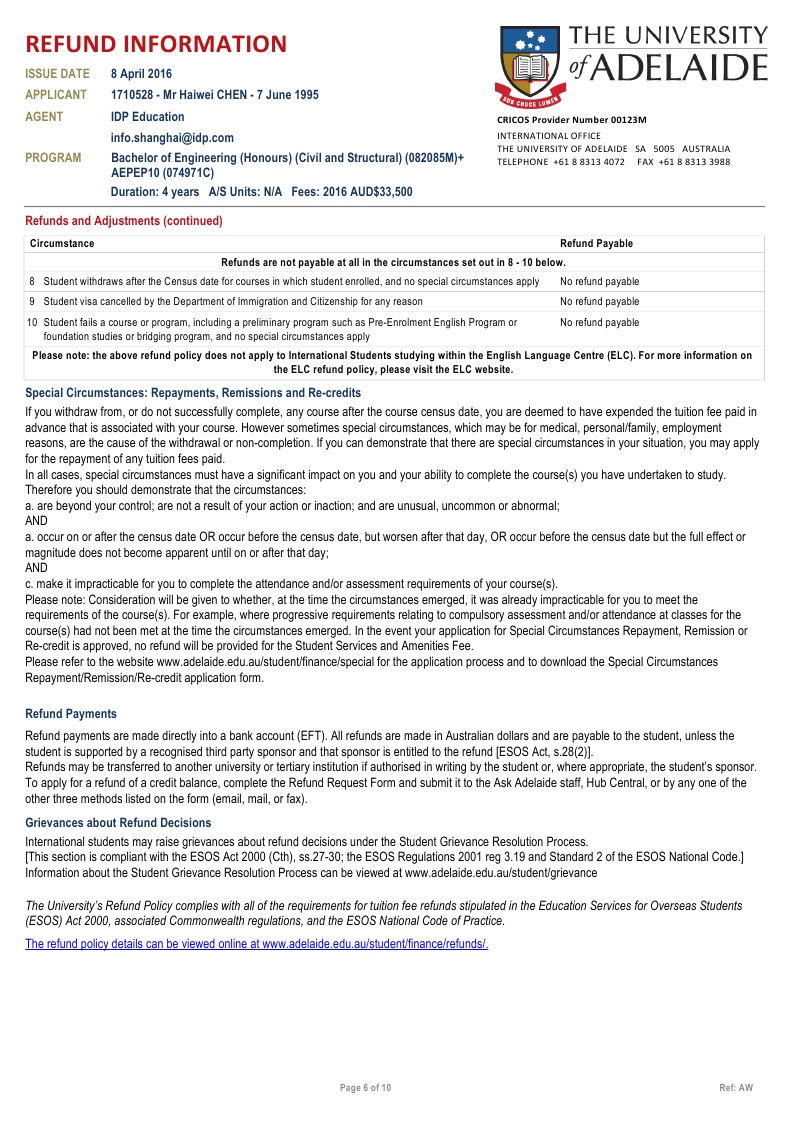 该同学在新加坡博伟教育学院读的Alevel课程,在我们柳橙网一个月以内就拿到了澳大利亚阿德莱德大学的有条件录取。阿德莱德是澳洲八大之一,位于南澳州,环境相对的优美,也是唯一一个有地区移民加分的八大。