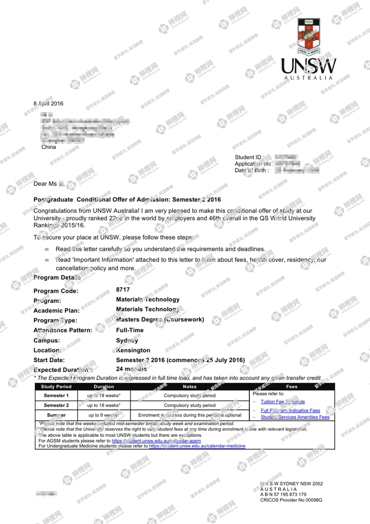 李同学南开大学物理学(伯苓班),均分85,在柳橙网成功申请到澳洲新南威尔士大学Masters of Materials Technology