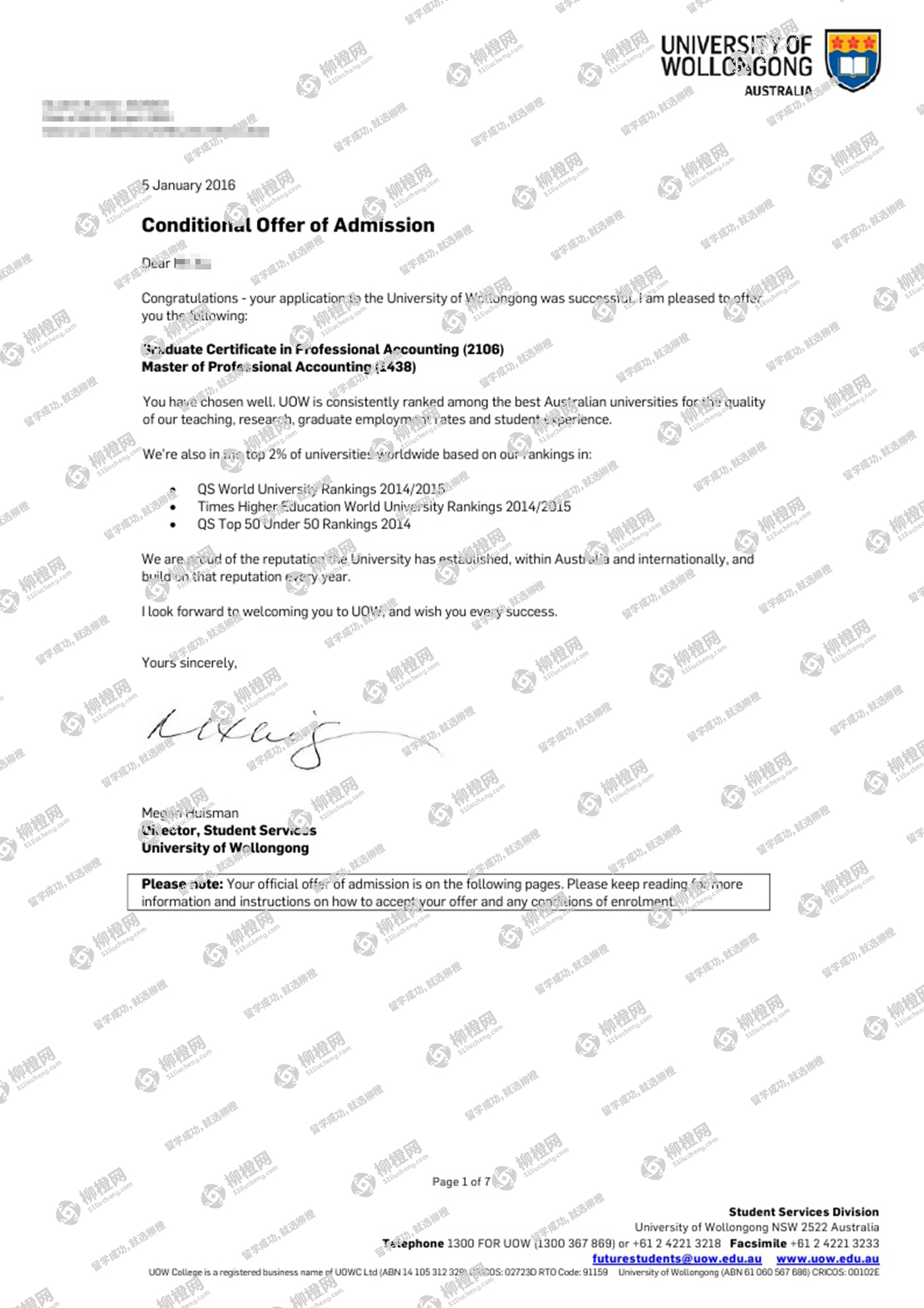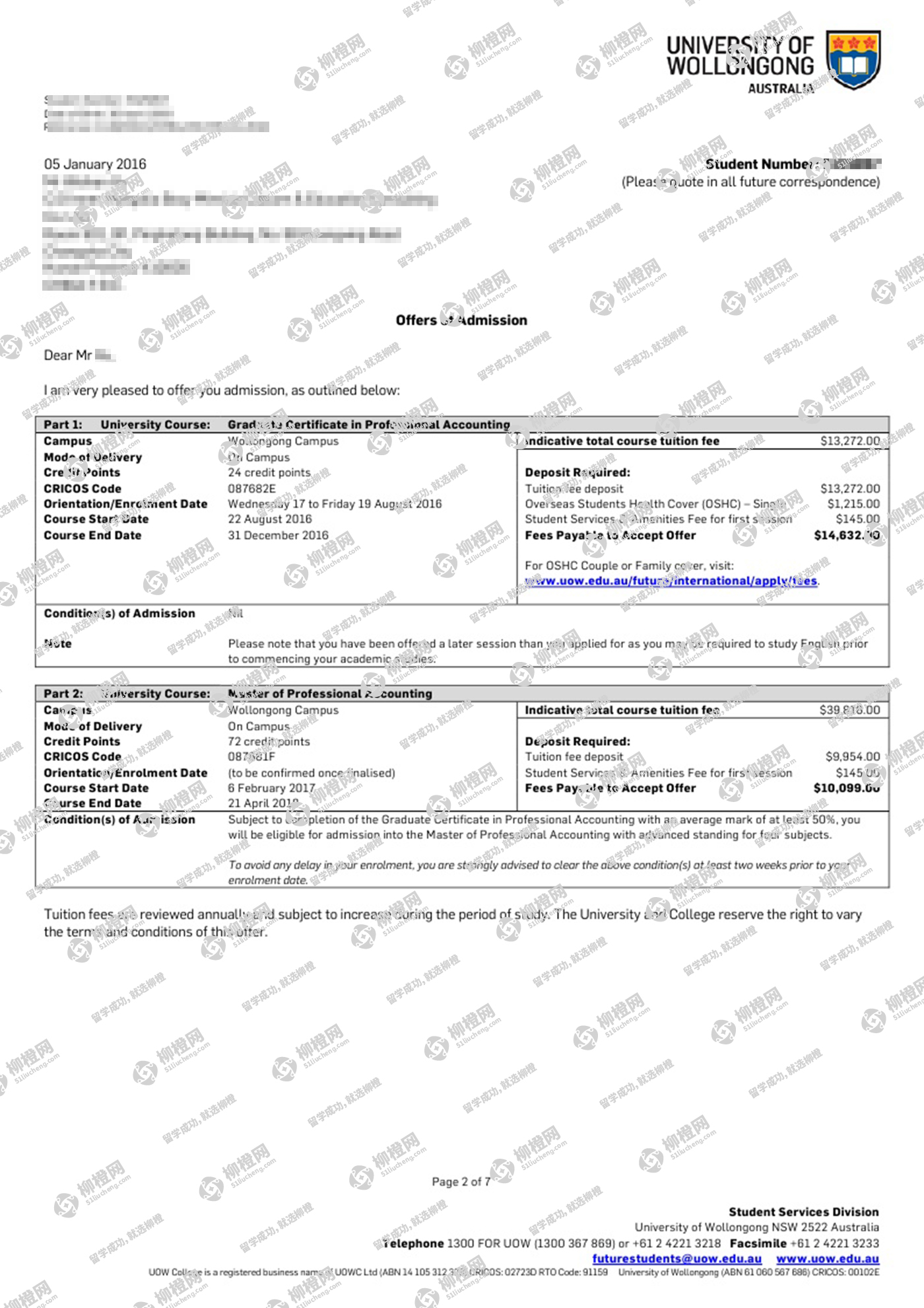 苏州大学数学统计71.4拿到University of Wollongong的GRADUATE CERTIFICATE IN PROFESSIONAL ACCOUNTING