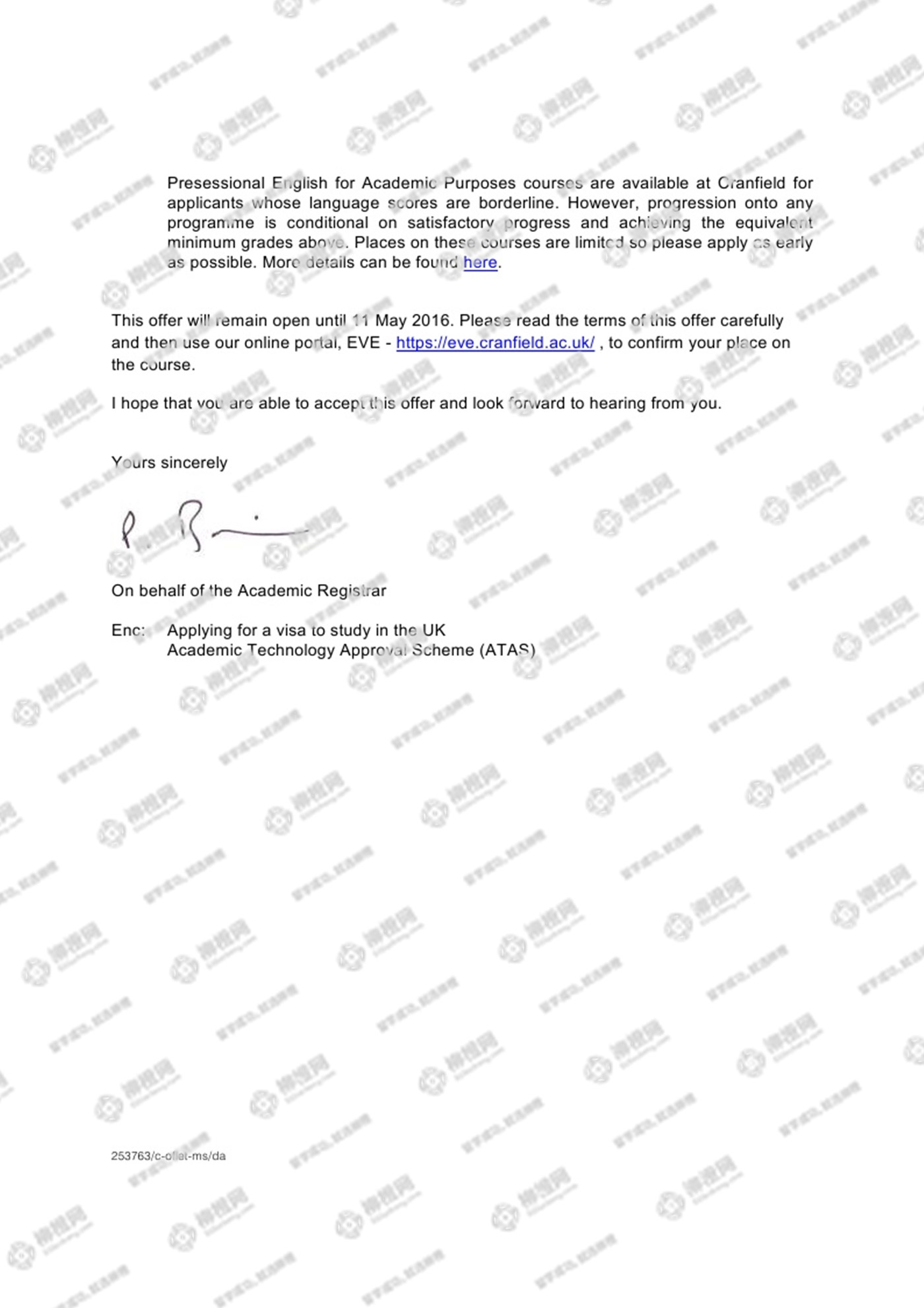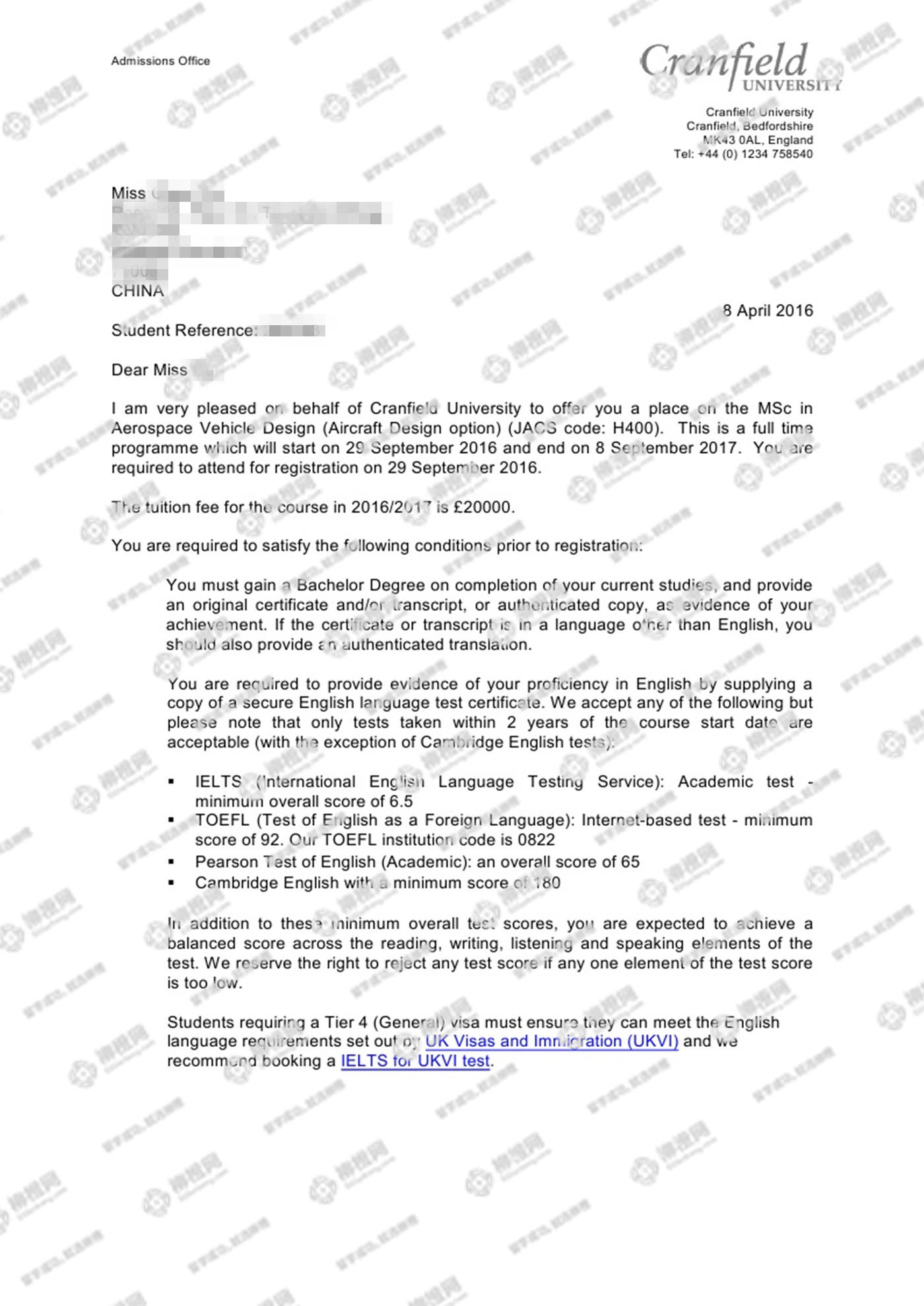崔同学,211本科背景,通过柳橙网成功拿到英国克兰菲尔德大学offer