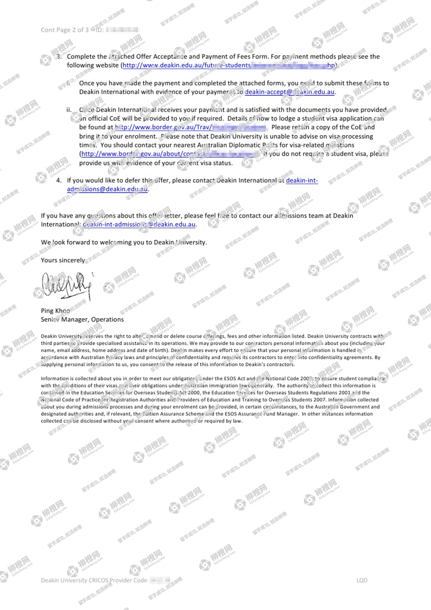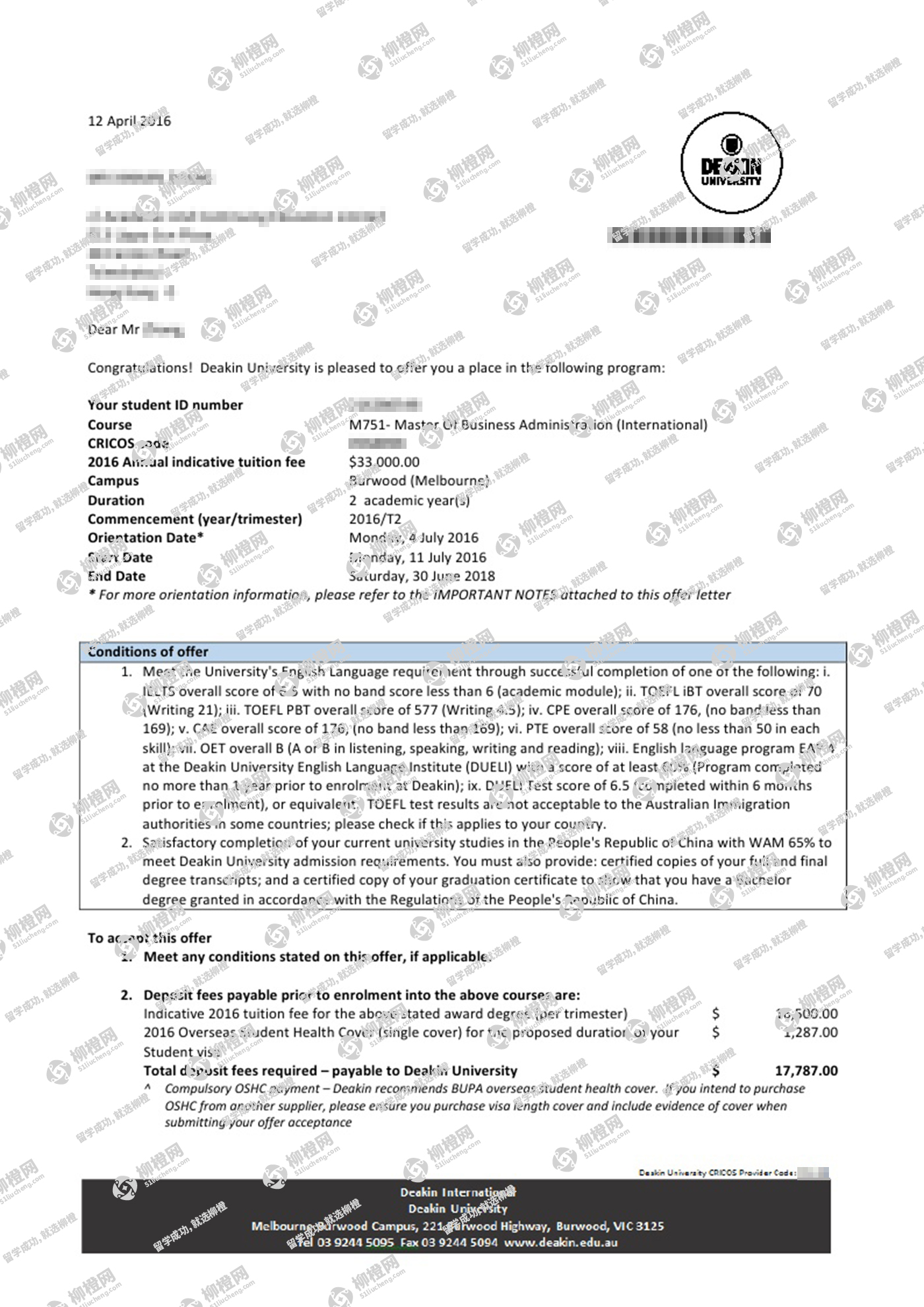 张同学,通过柳橙网办理留学申请服务,最终顺利拿到迪肯大学offer
