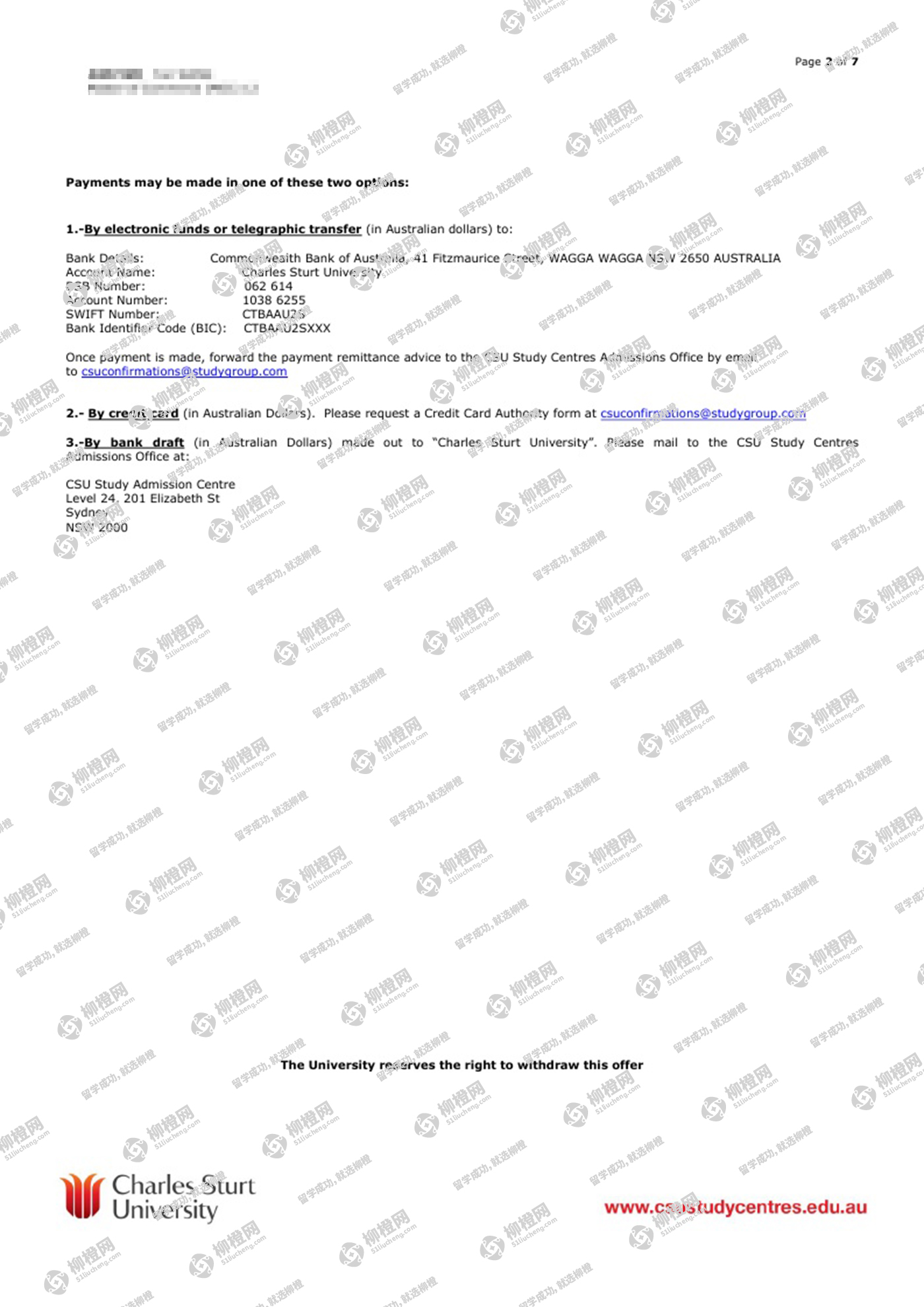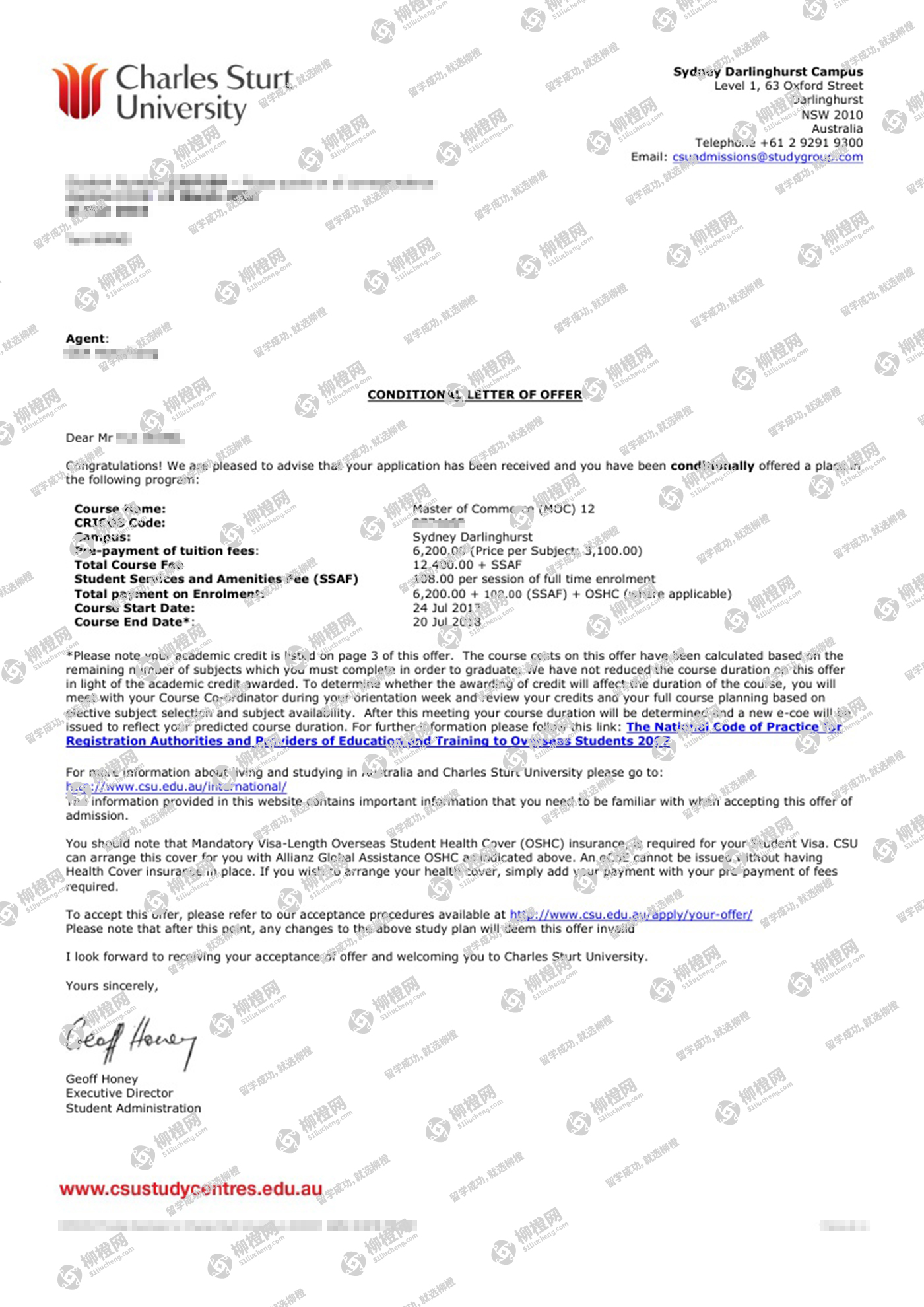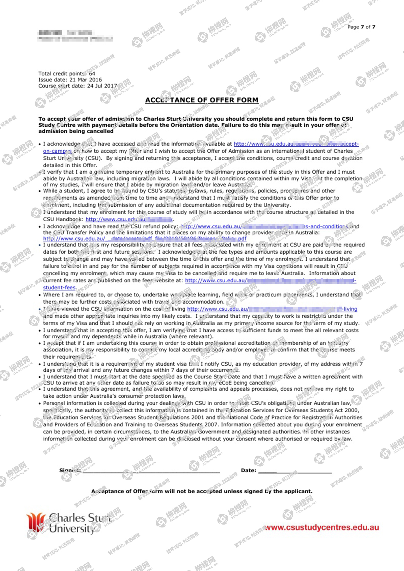 王同学,在柳橙网办理留学服务,最终顺利收获查尔斯大学offer