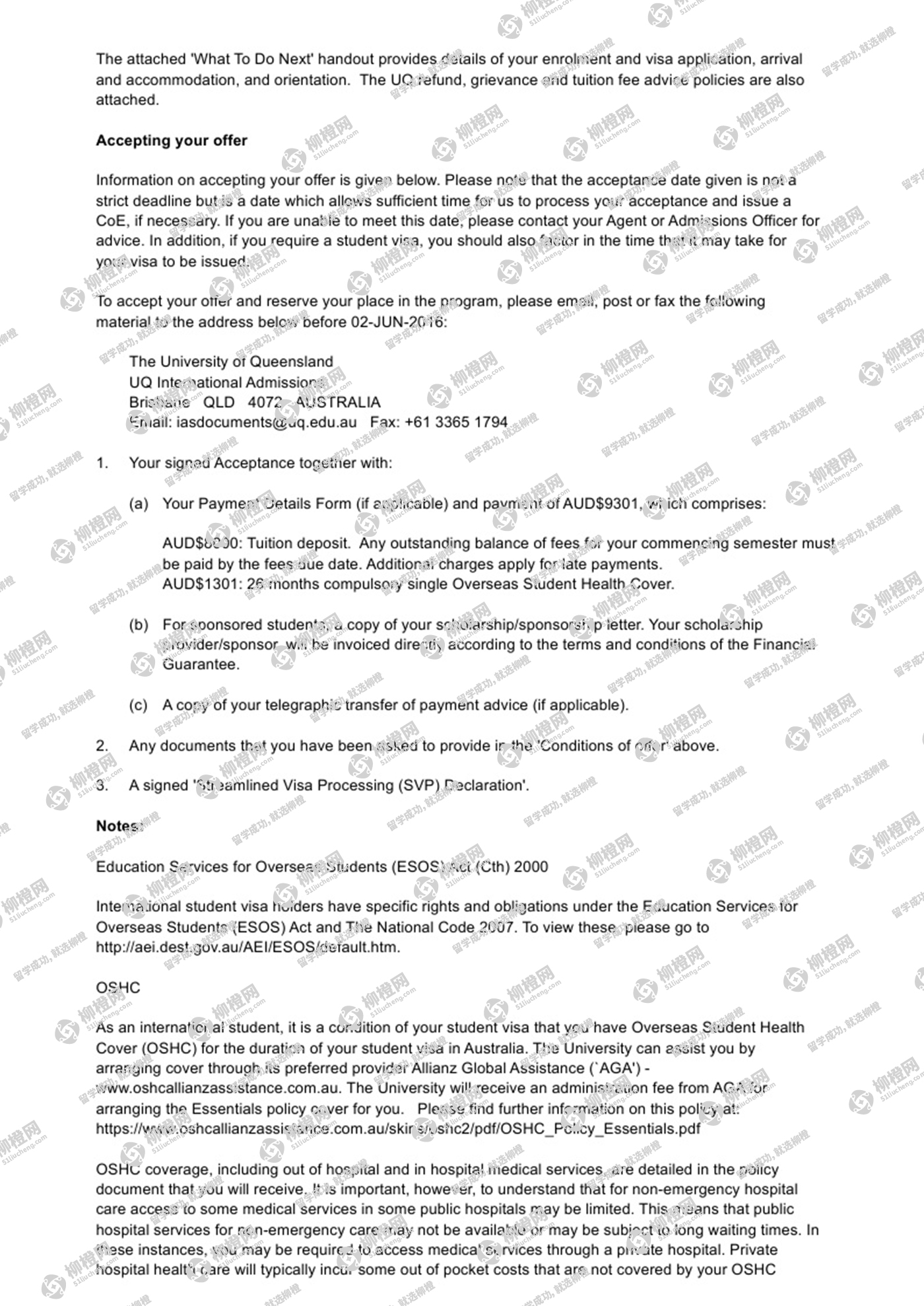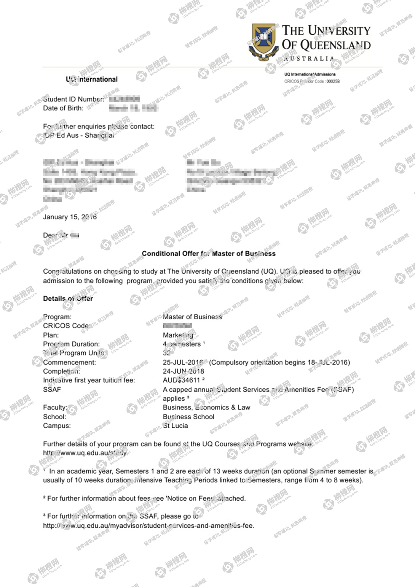 恭喜古同学通过柳橙网获得昆士兰大学offer!