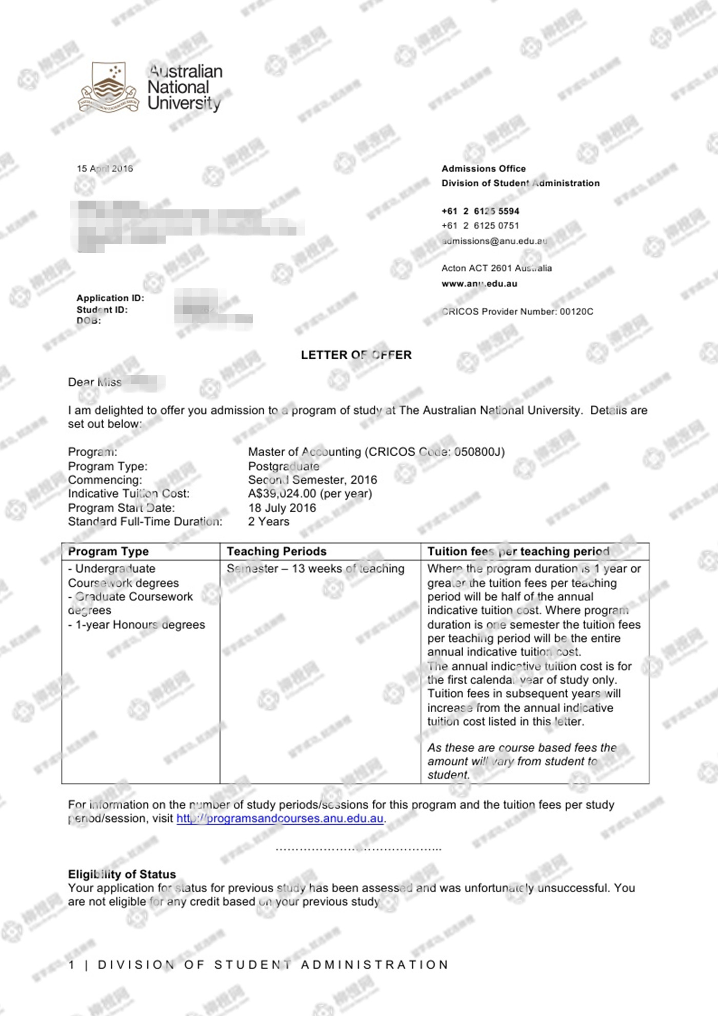 章同学条件还不错,申请的也比较早,澳国立拿到也是意向之中的事了
