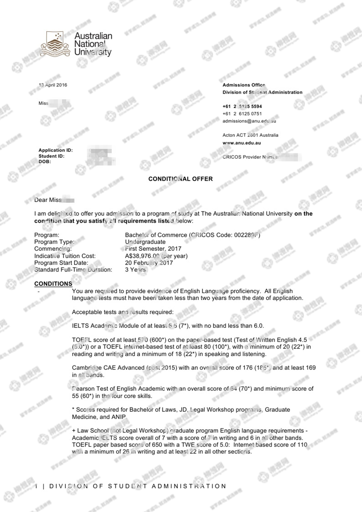 恭喜朱同学通过柳橙网获得澳洲国立大学offer!