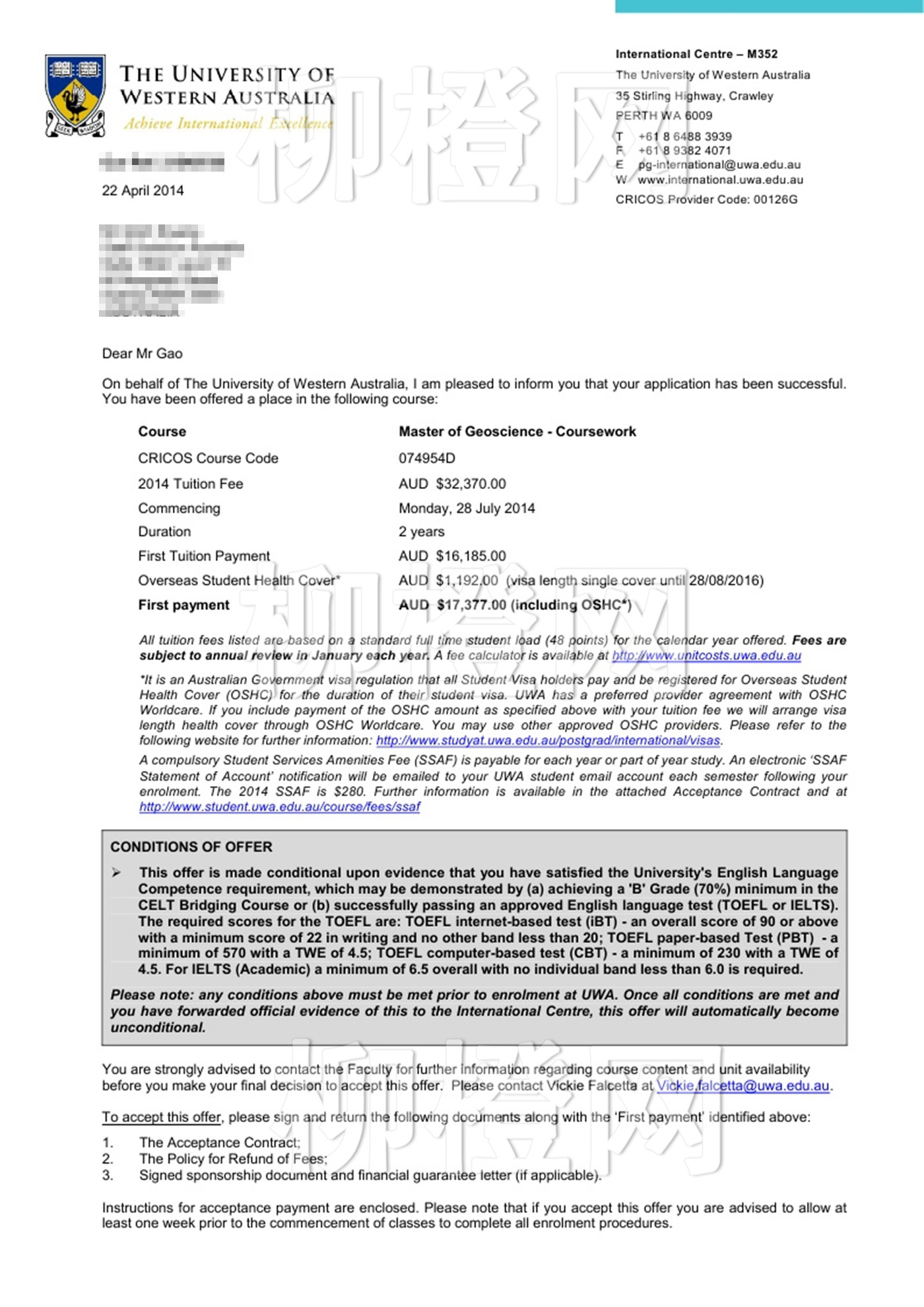 同学是在国家地质局工作,平时工作较繁忙,家人和老师经过很多筛选找到了我们 ,同学平均分虽然比较低 ,但是我们顺利的申到了同学理想的学校,并且是学校非常中意的Geoscience.美丽的西澳在等着你噢~~