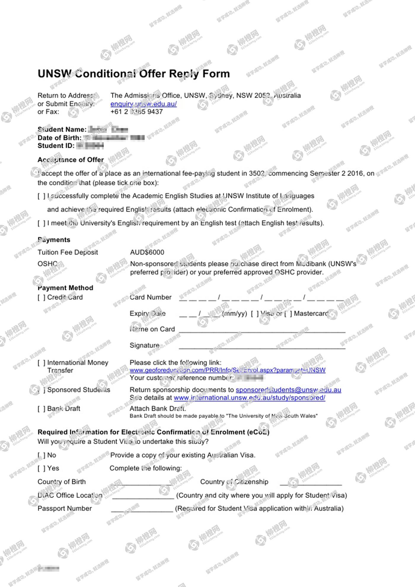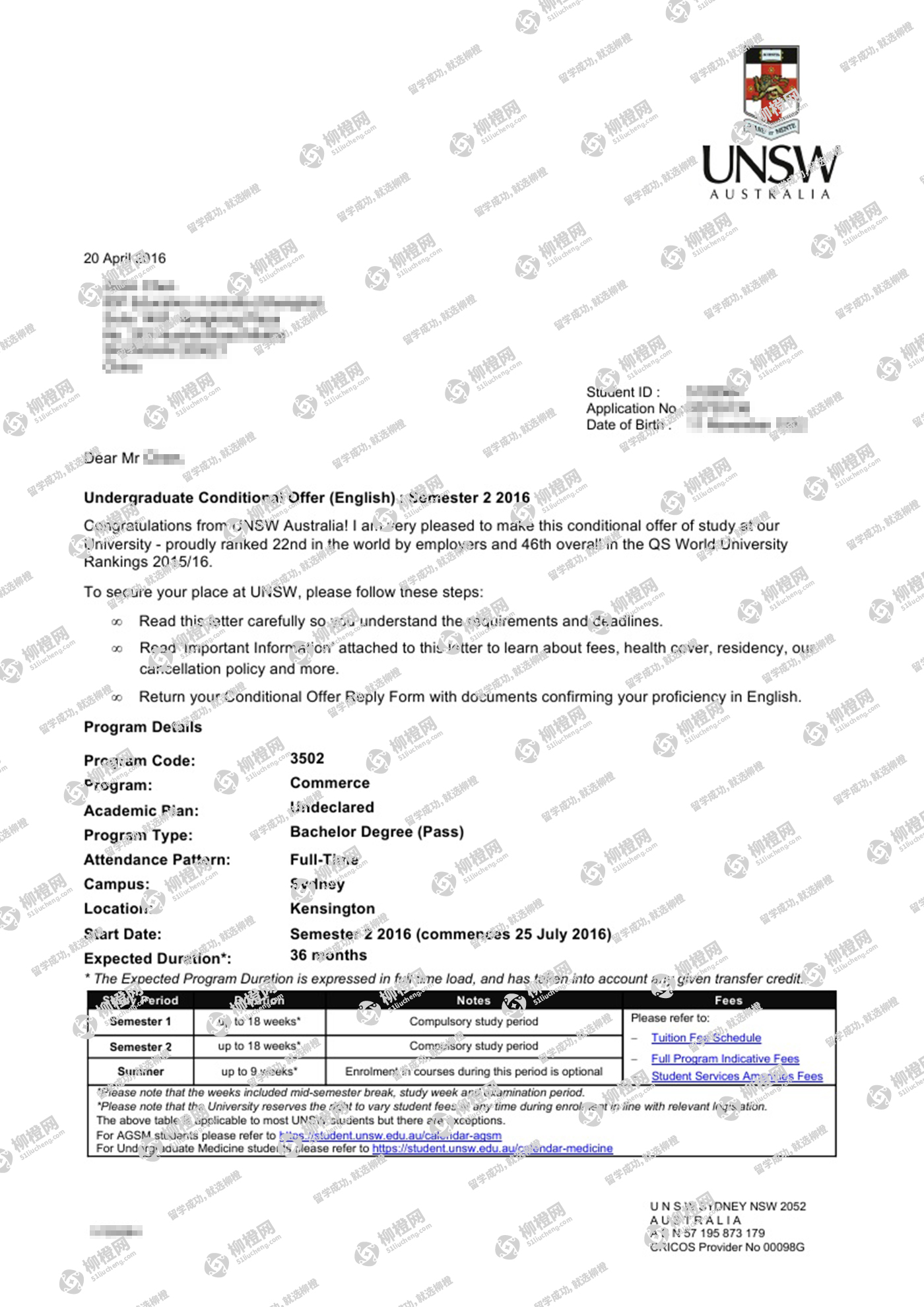 恭喜陈同学通过柳橙网获得新南威尔士大学offer!