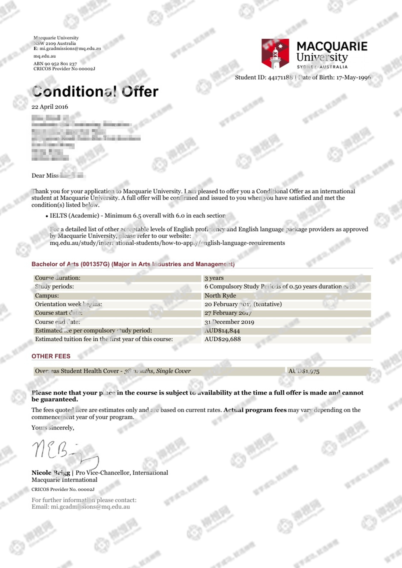 恭喜李同学通过柳橙网获得澳洲麦考瑞大学offer!