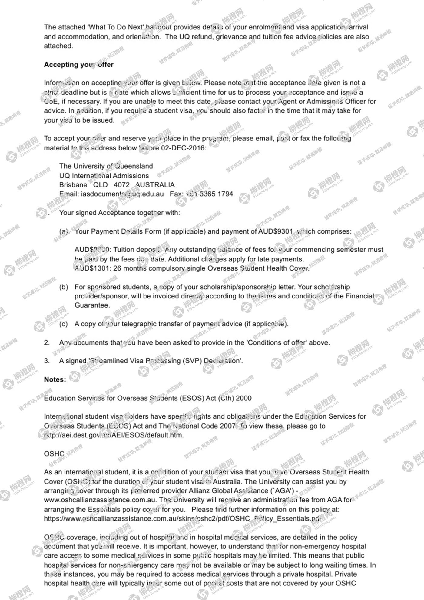 恭喜谢同学通过柳橙网获得昆士兰大学offer!