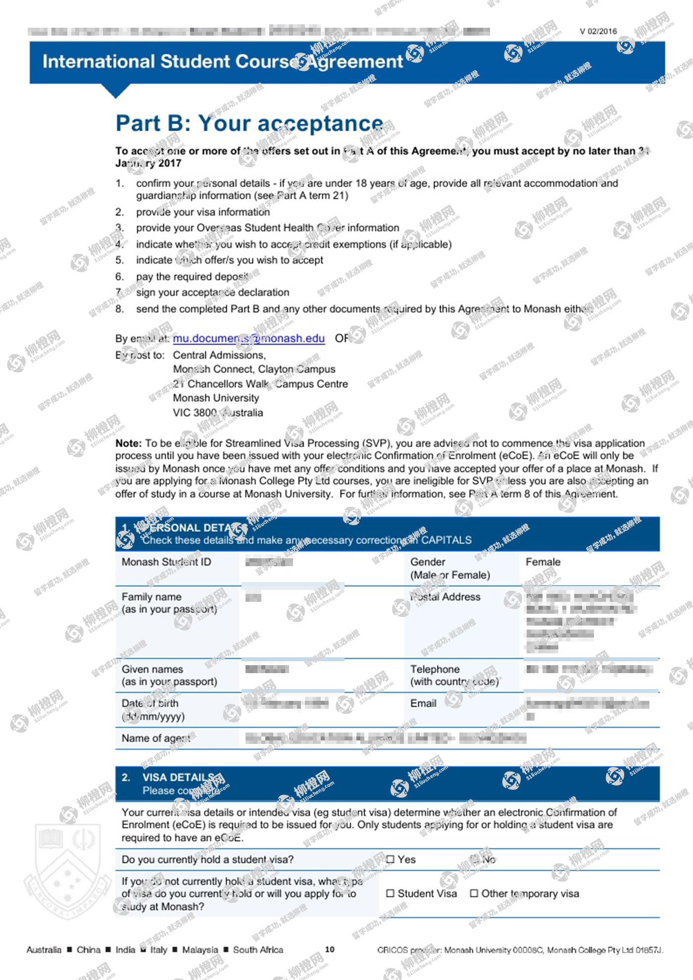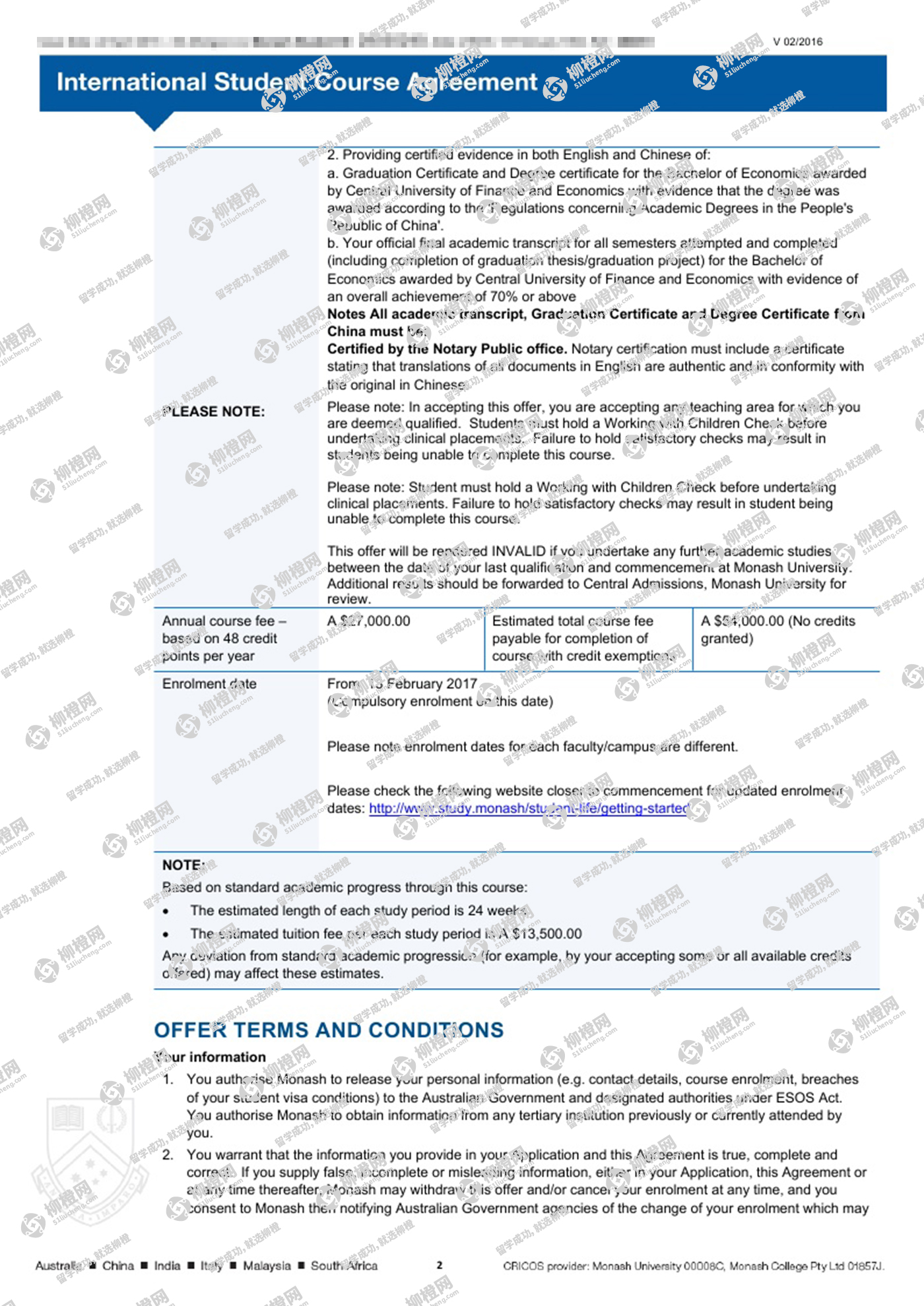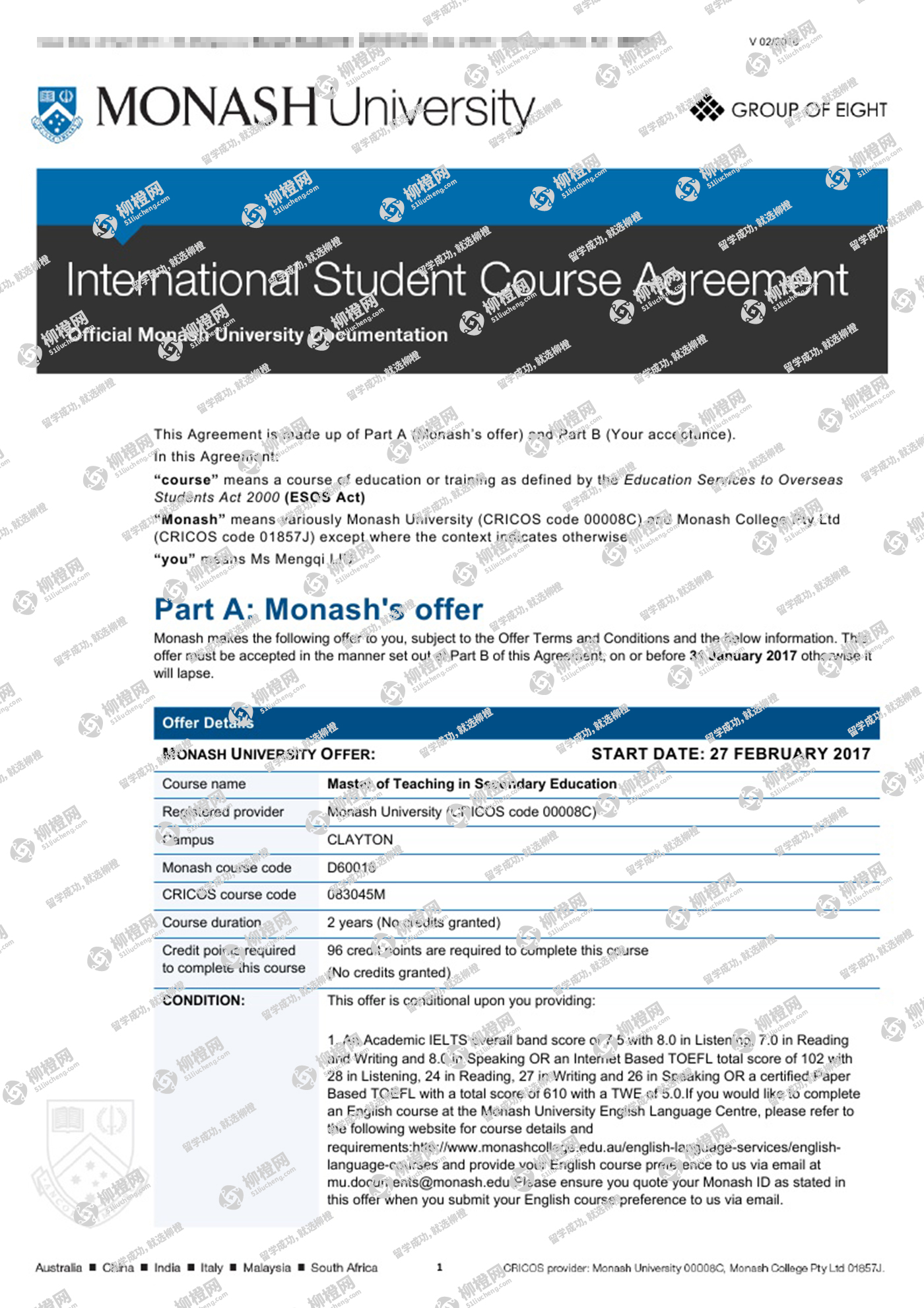 恭喜刘同学通过柳橙网获得莫纳什大学offer!
