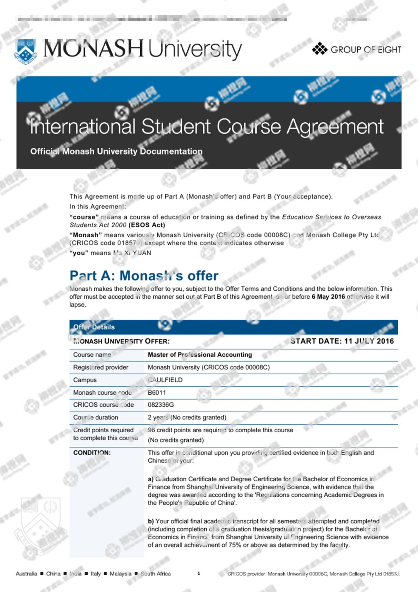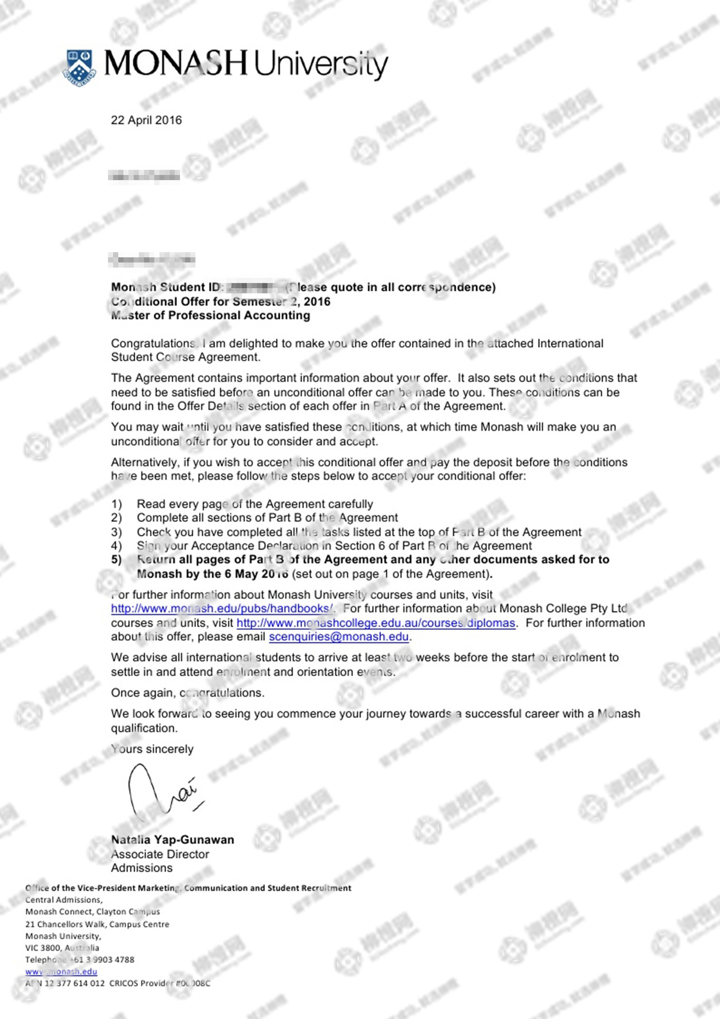 恭喜袁同学通过柳橙网获得澳洲莫纳什大学offer!