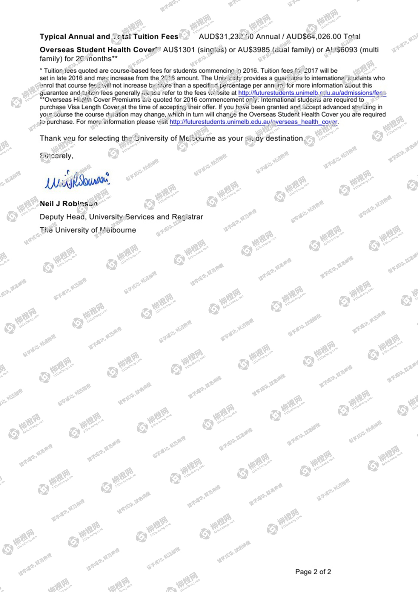 恭喜黄同学通过柳橙网获得墨尔本大学offer!