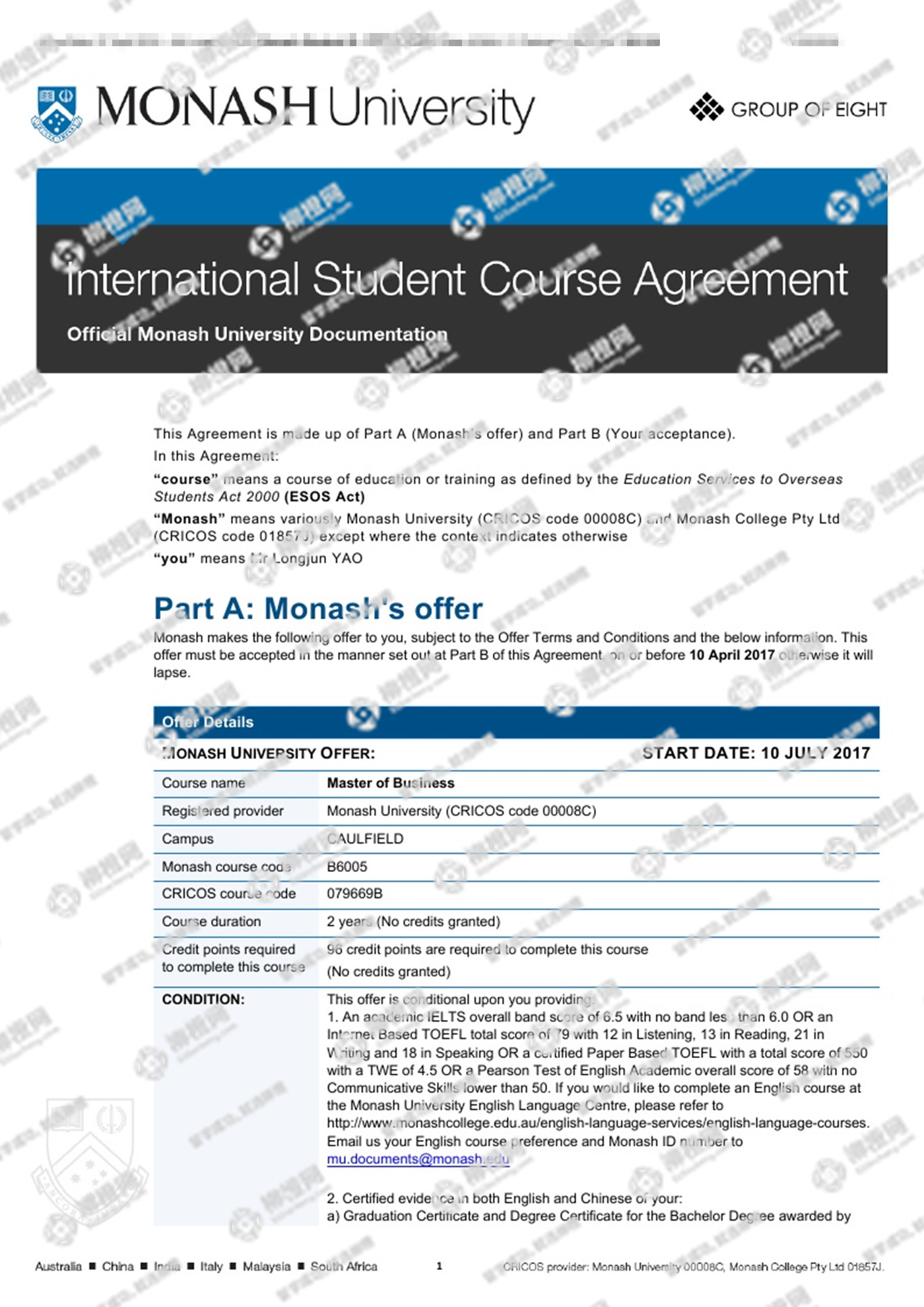 姚同学通过柳橙网办理留学服务,在柳橙网的专业协助下最终如愿拿到心仪院校offer