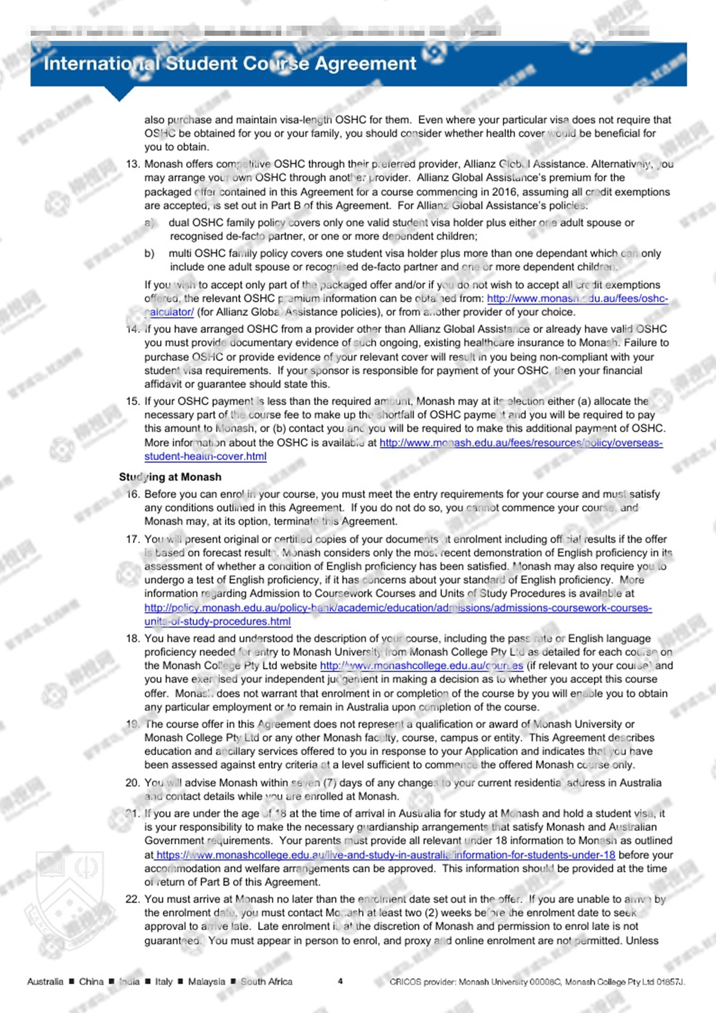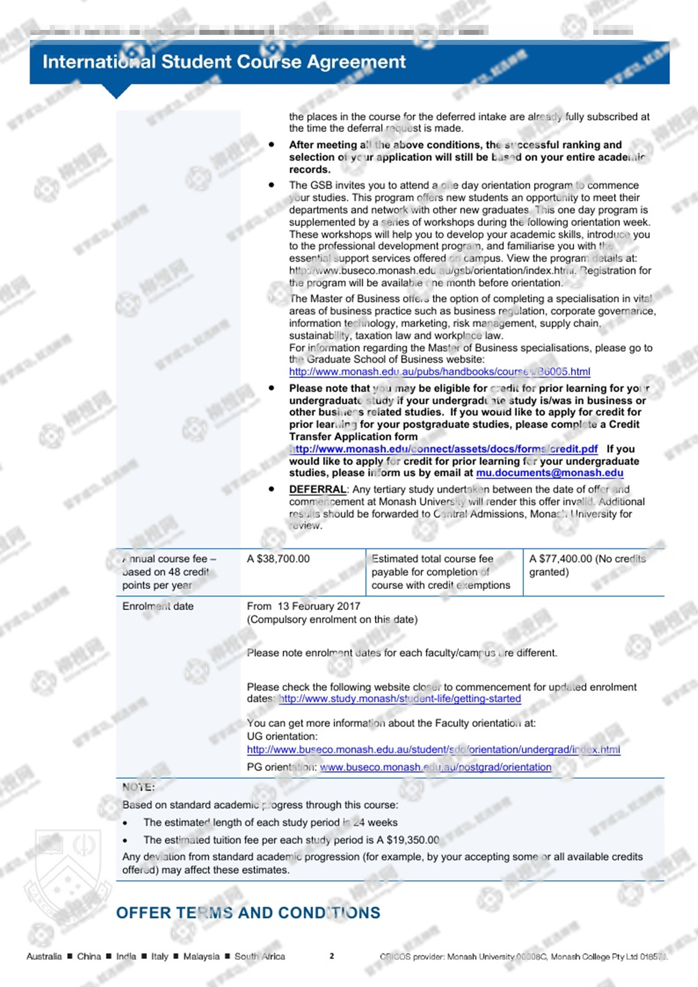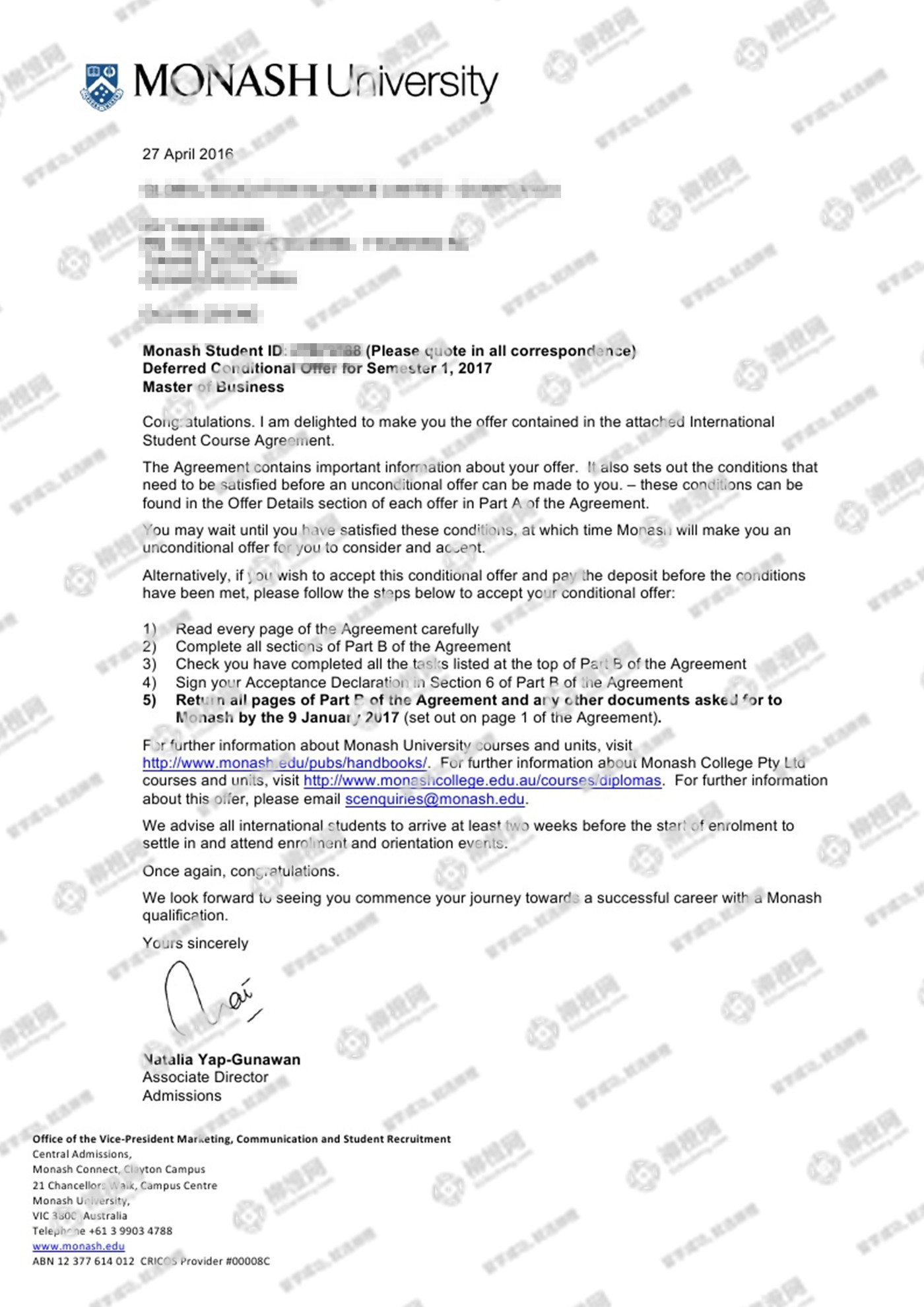 恭喜郑同学通过柳橙网获得澳洲莫纳什大学offer!