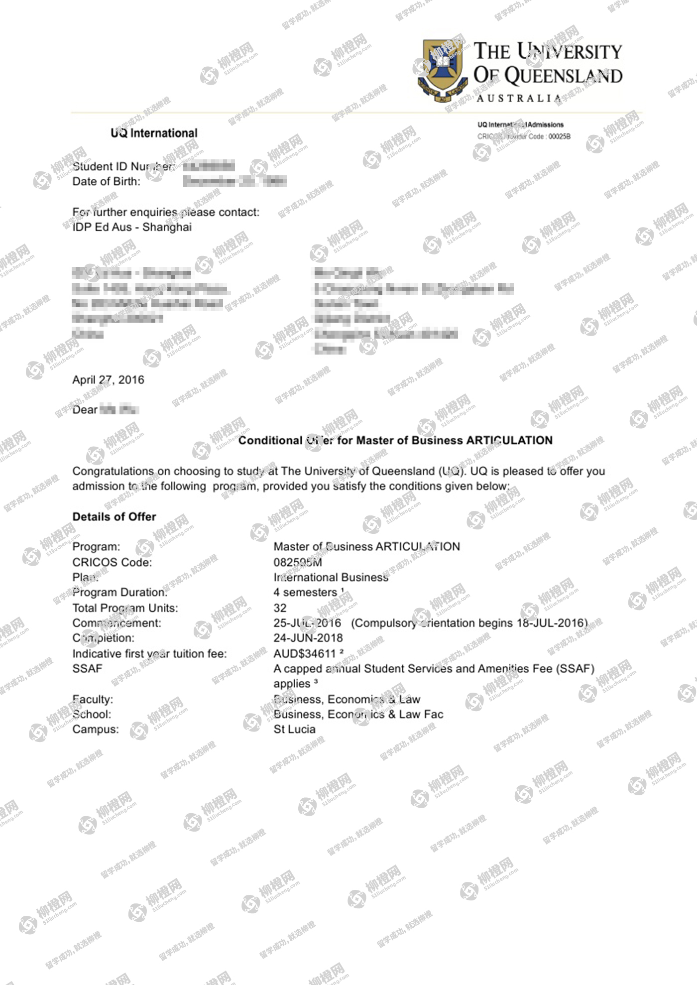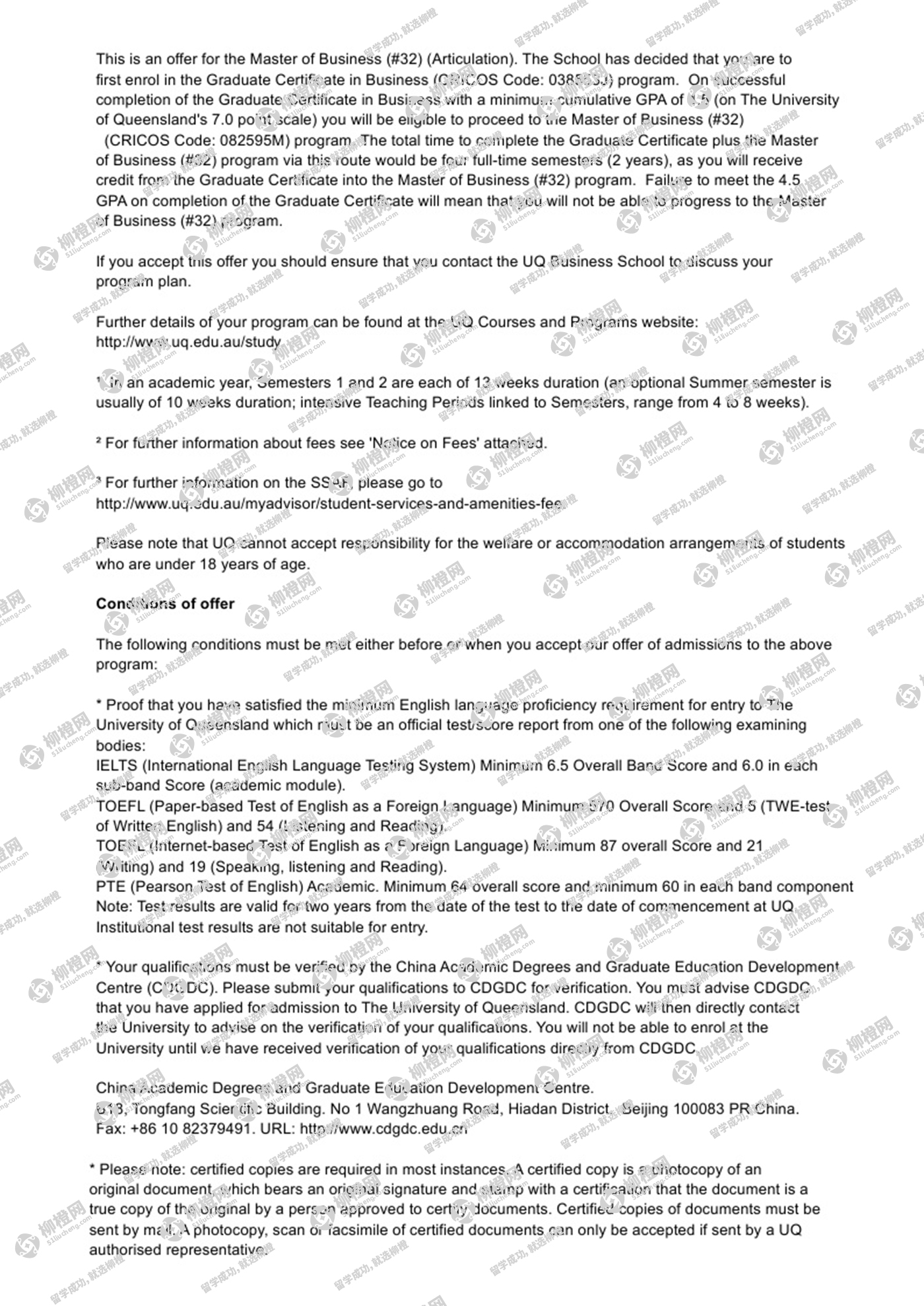 恭喜吴同学通过柳橙网获得澳洲八大昆士兰大学offer!