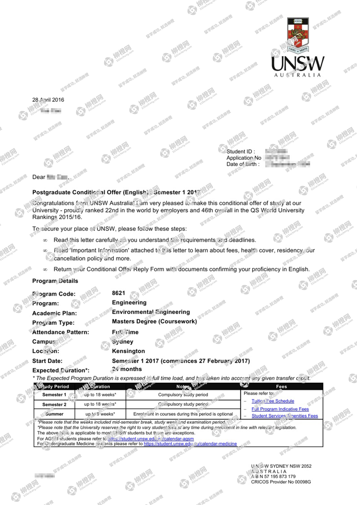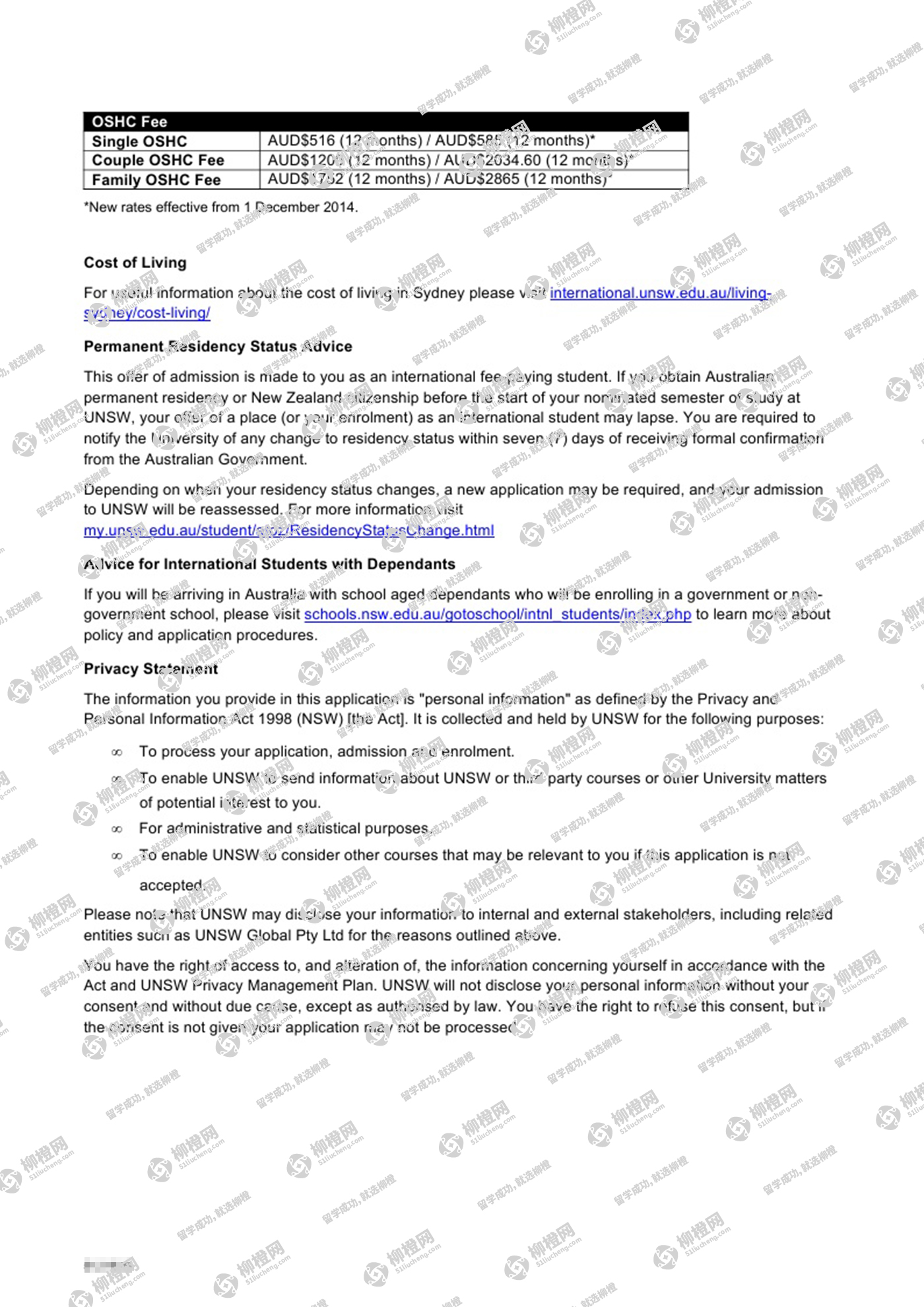 恭喜曹同学通过柳橙网获得澳洲八大新南威尔士大学offer!
