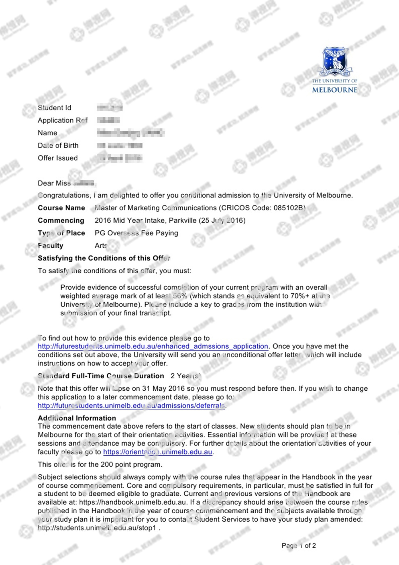 江同学背景不是很好,但是很早就委托柳橙网做申请,成功拿到澳洲墨尔本大学offer