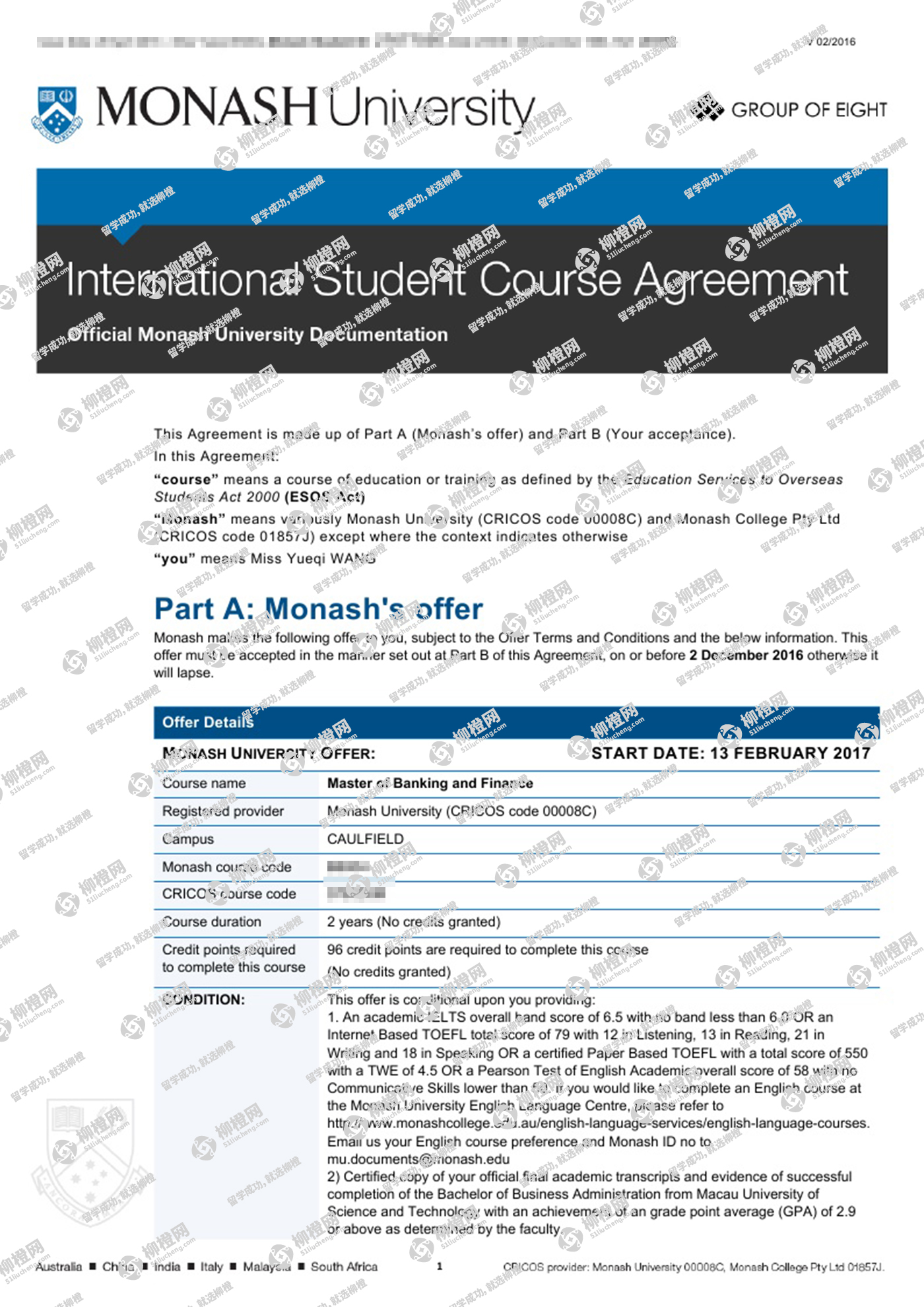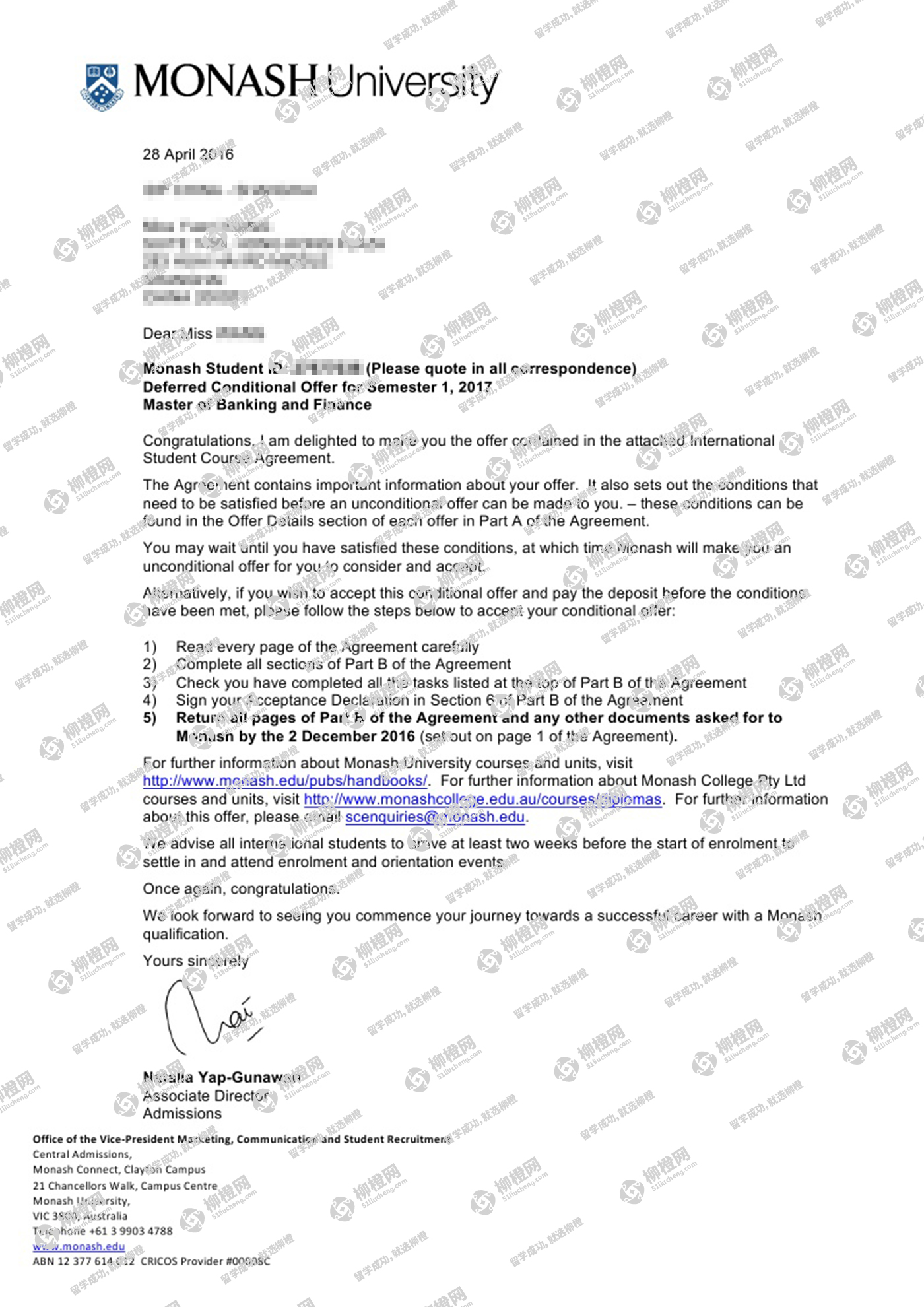 王同学本身条件一般,但是通过柳橙网成功申请到莫纳什大学offer