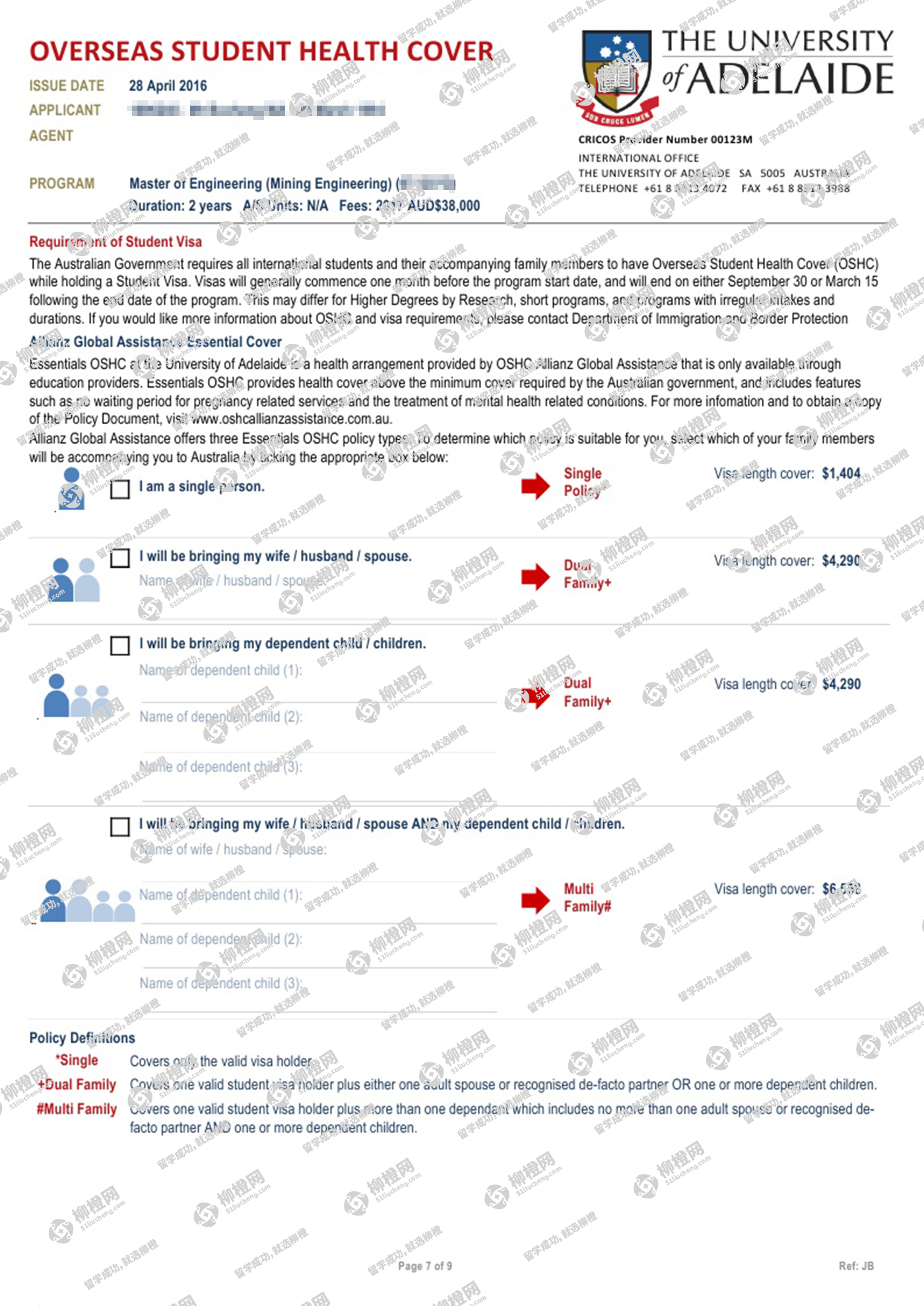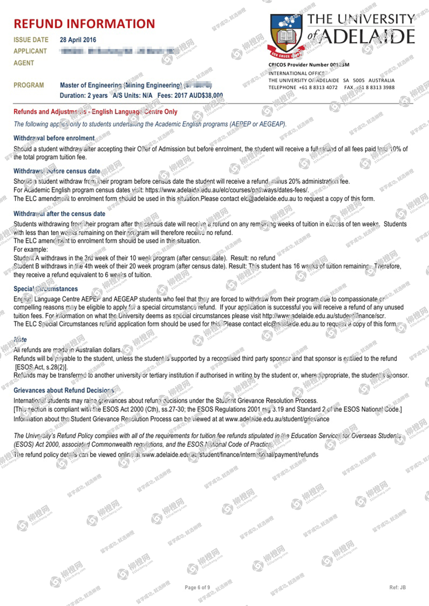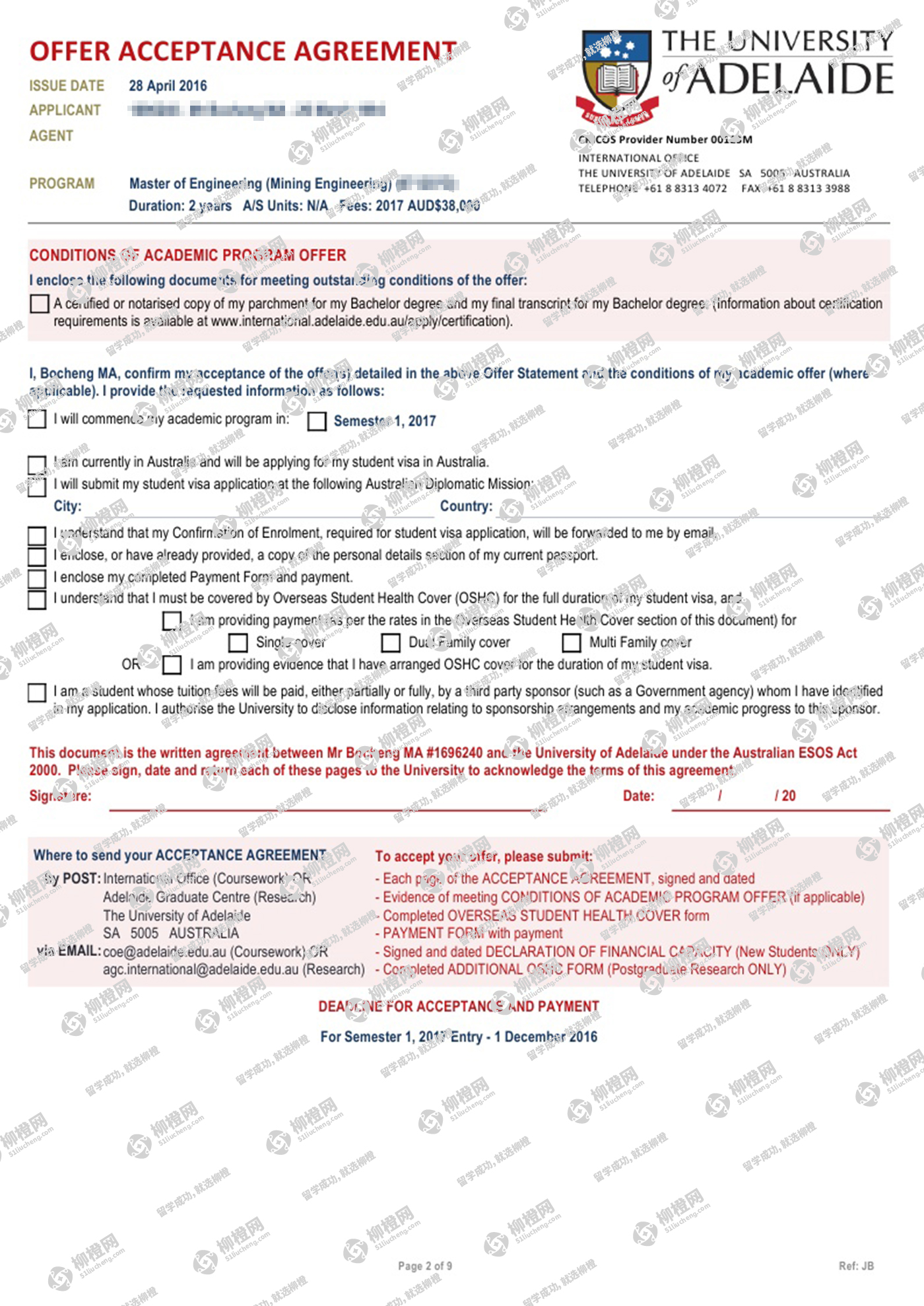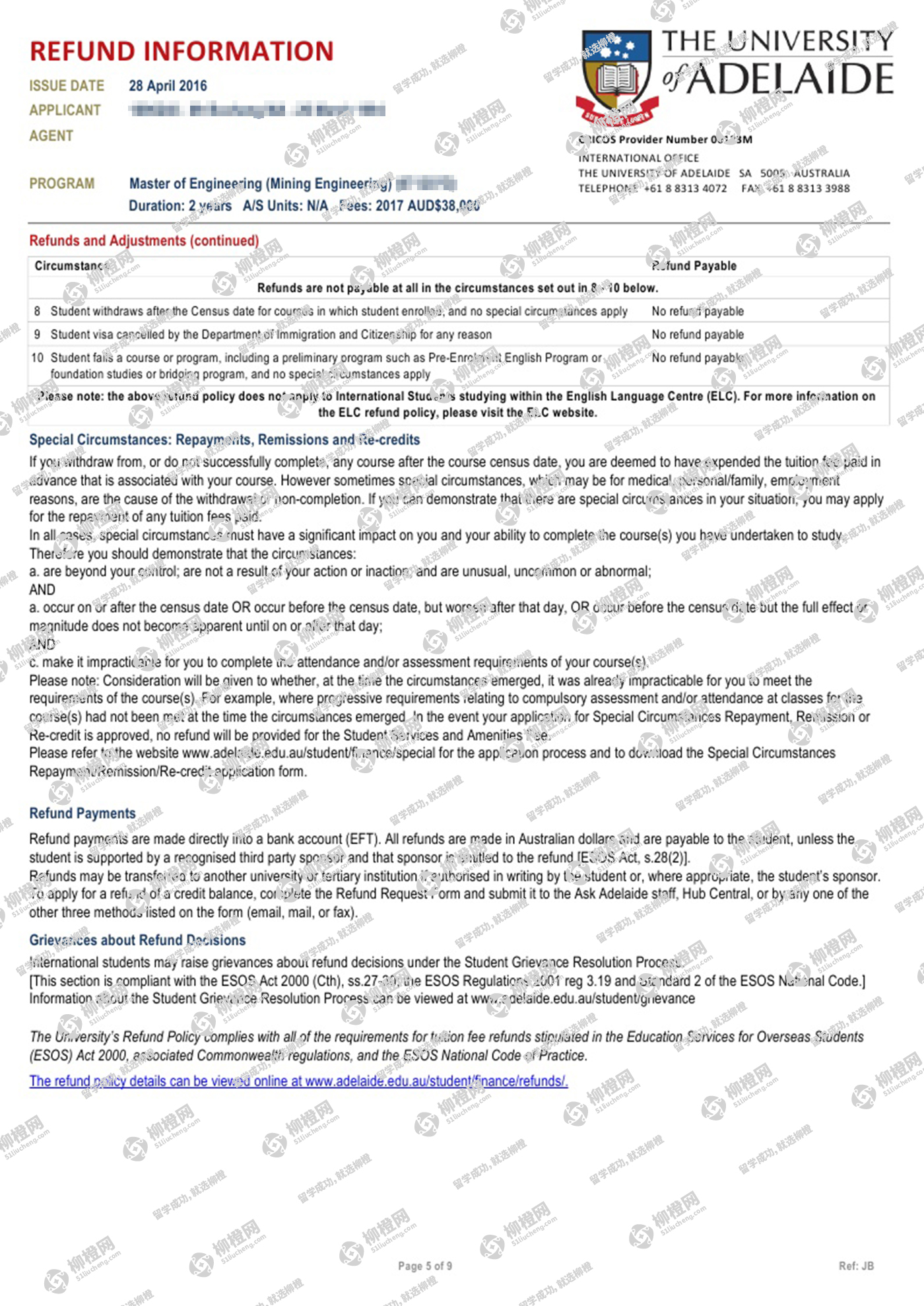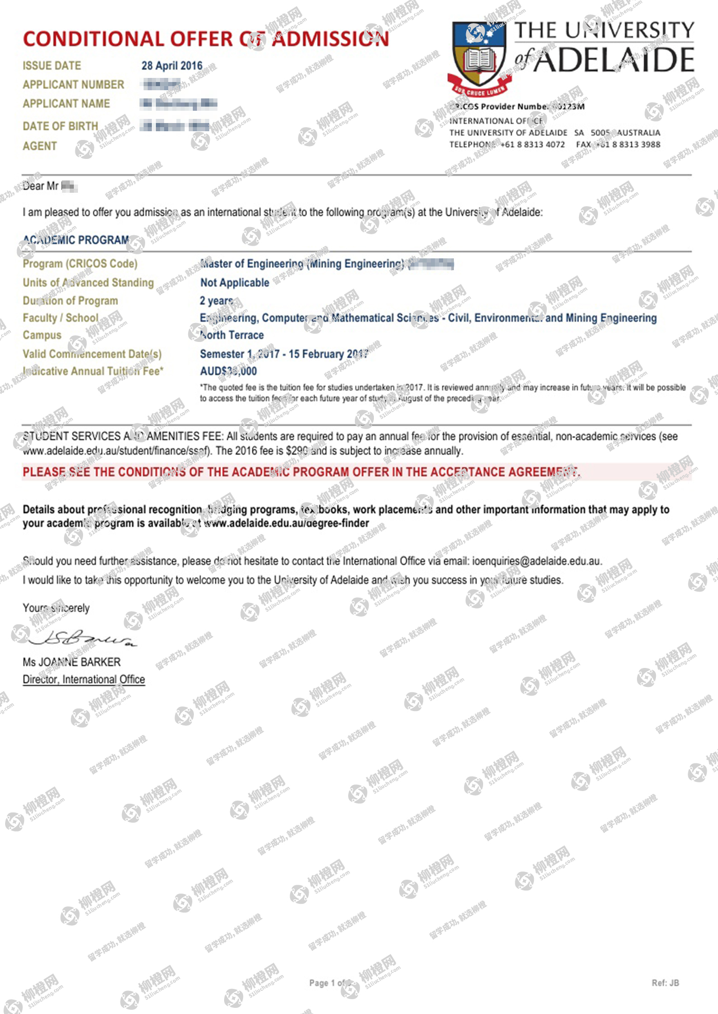 马同学背景不是很好,但是对矿产情有独钟,考虑到就业和专业排名,通过柳橙网成功申请到阿德莱德大学offer