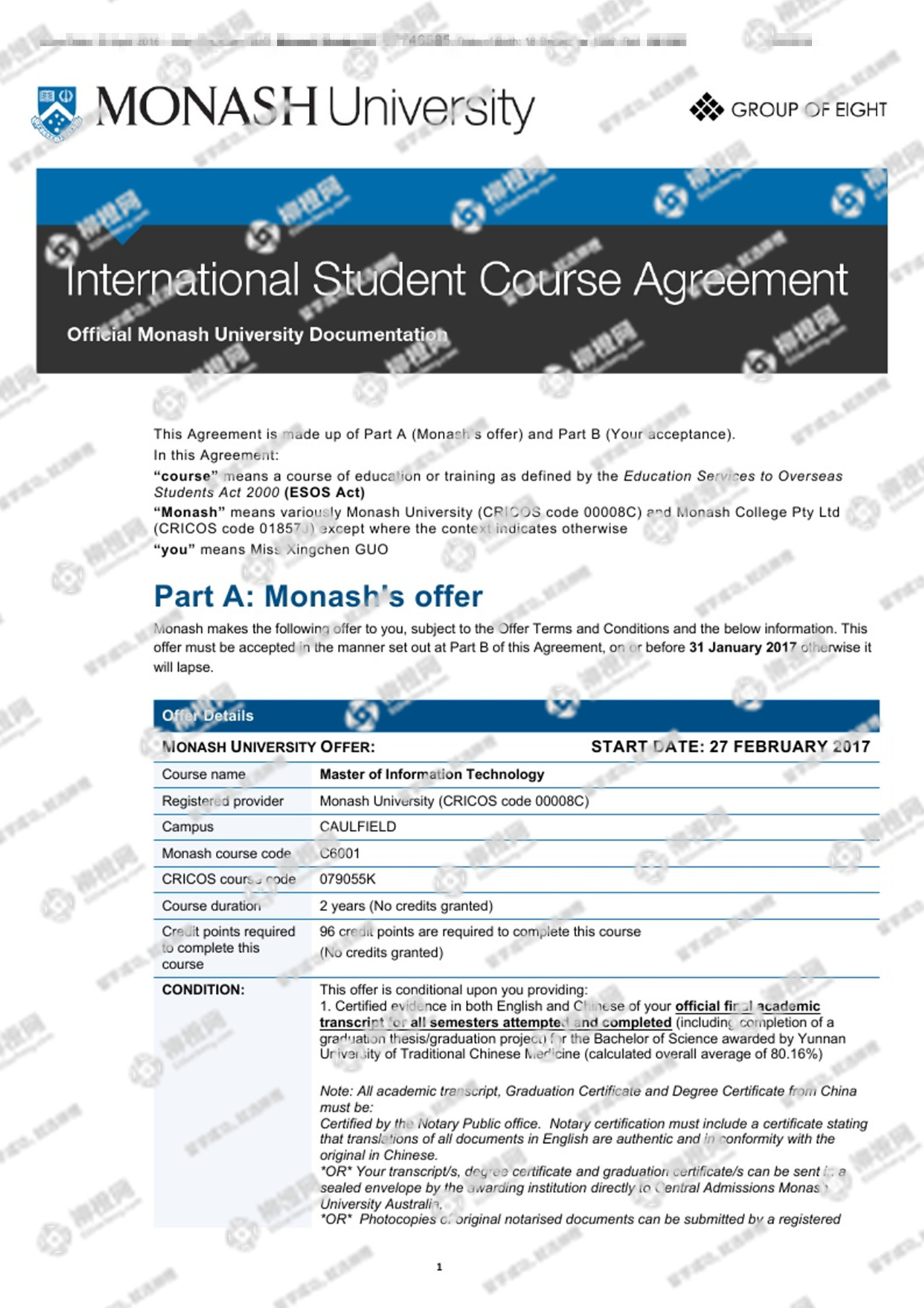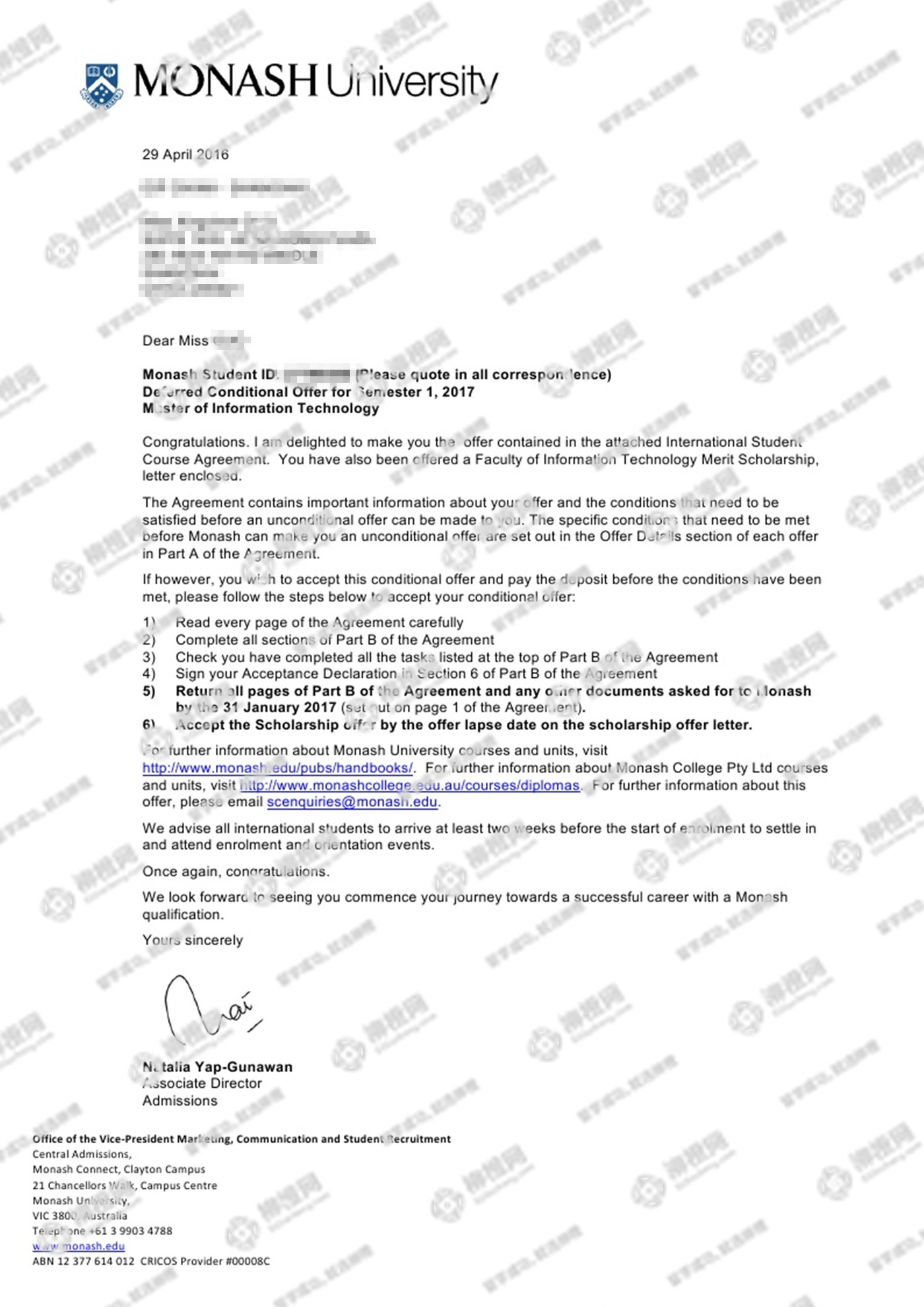 郭同学背景不强,但是很早就委托我们递交申请,通过柳橙网,成功申请到澳洲莫纳什大学offer