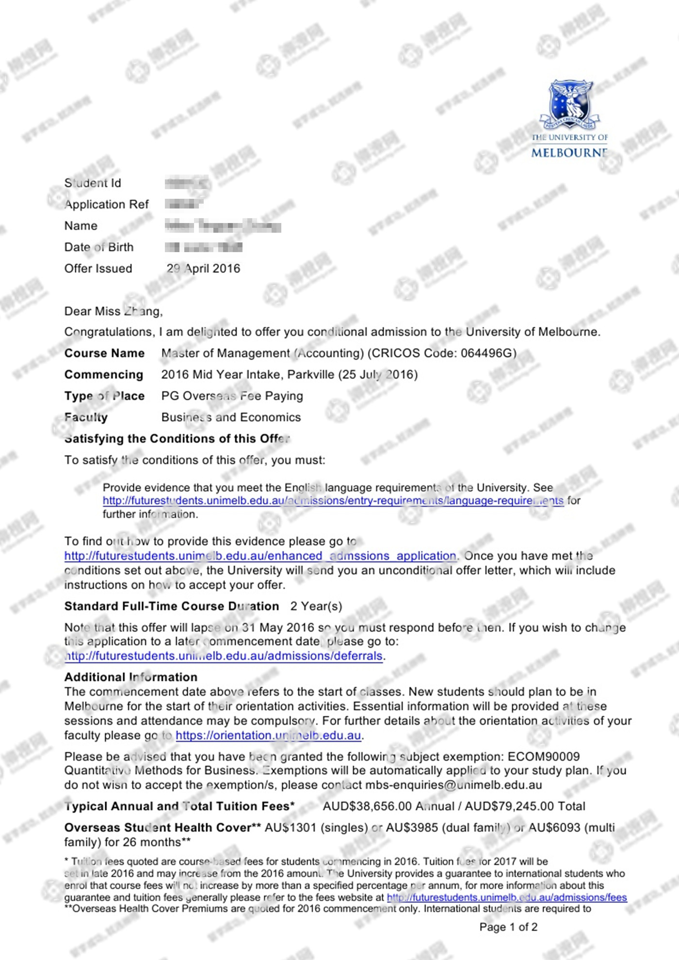 张同学整体的背景不强,但是很配合这边申请,很早就定了服务,才能成功拿到澳洲墨尔本大学offer