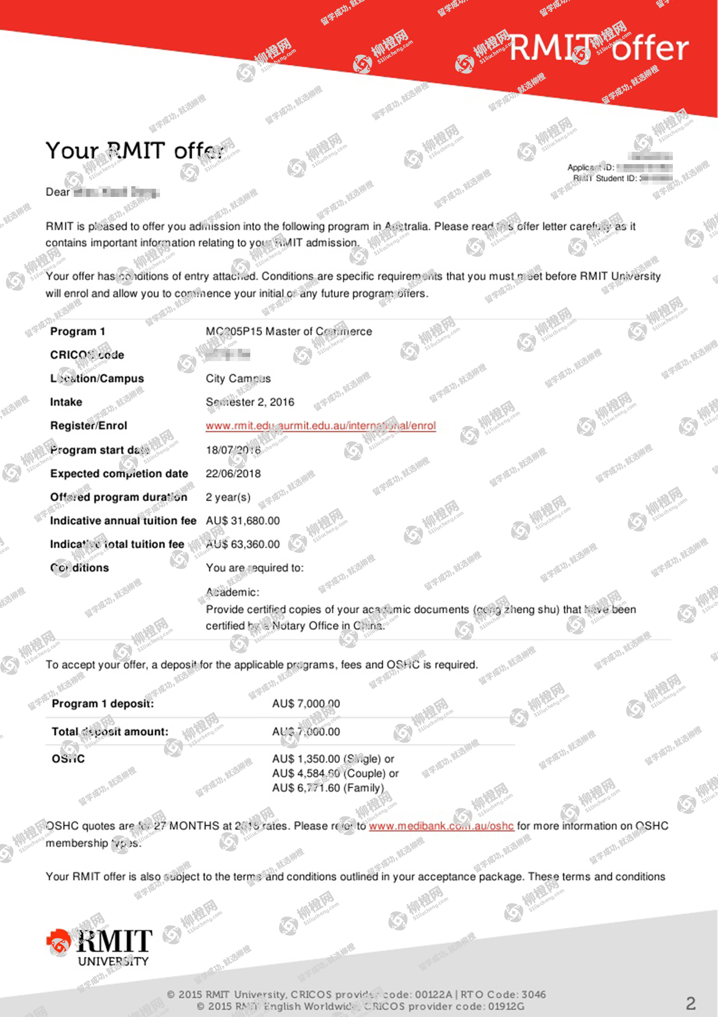 董同学背景虽然不是很好,但是通过柳橙网的申请,拿到了世界名校皇家墨尔本理工大学的offer。