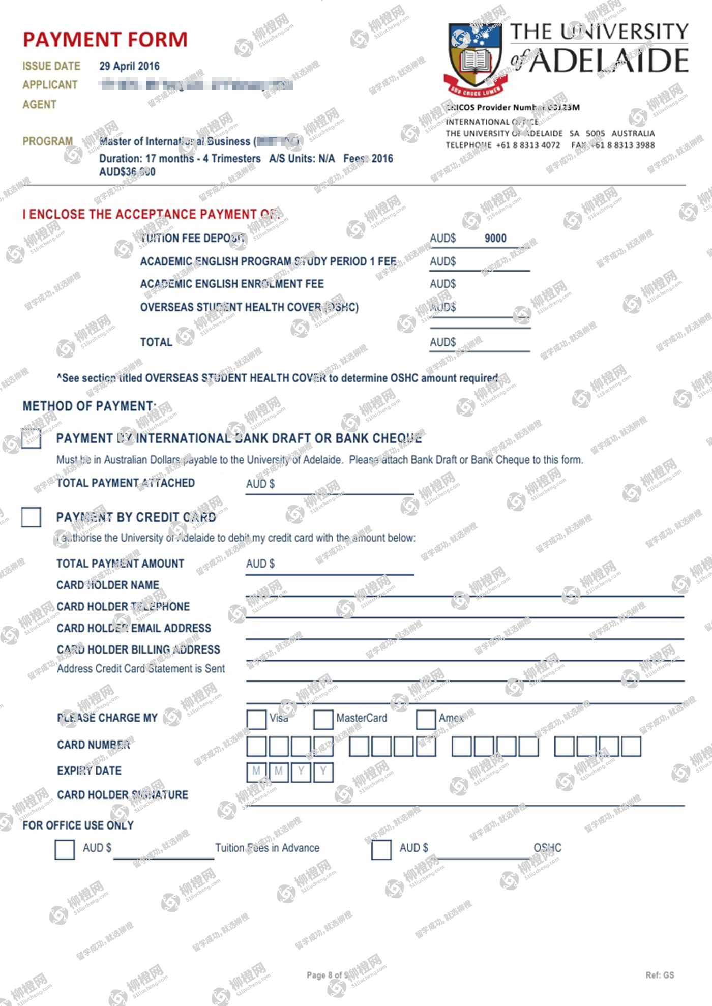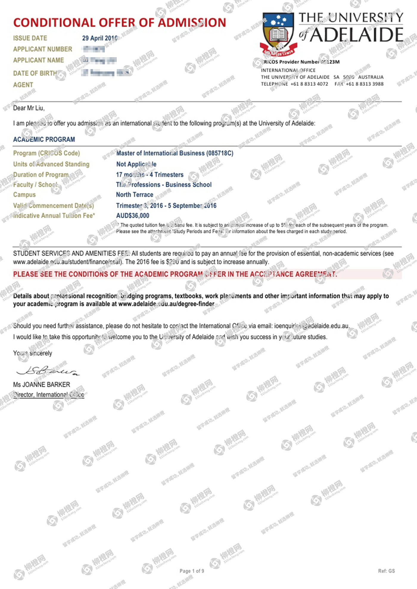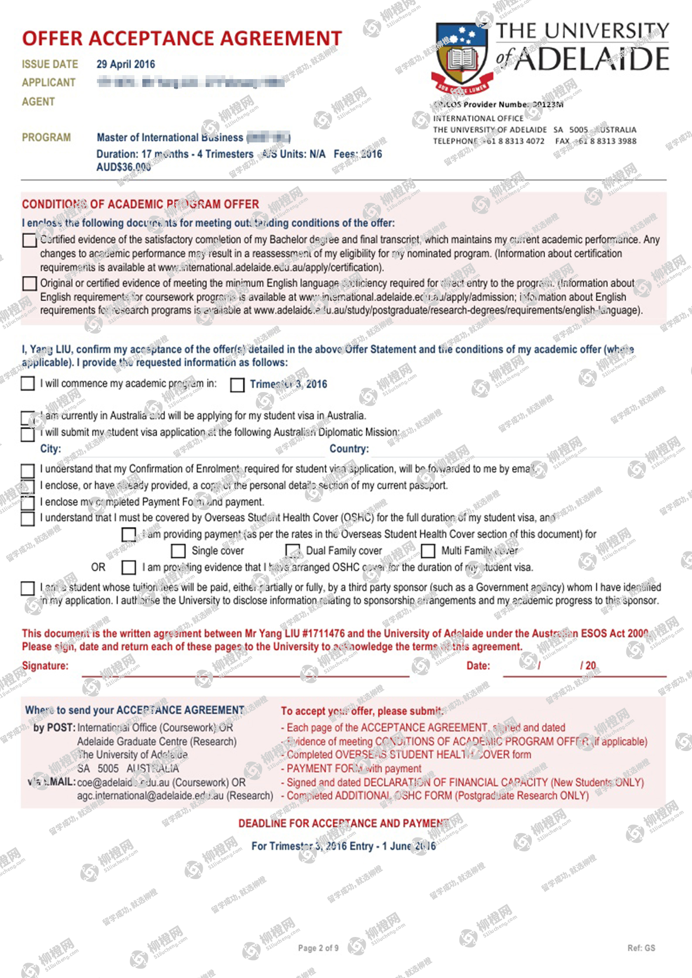 四川外国语大学,均分83,在柳橙网的帮助下,拿到澳洲阿德莱德的offer,祝贺