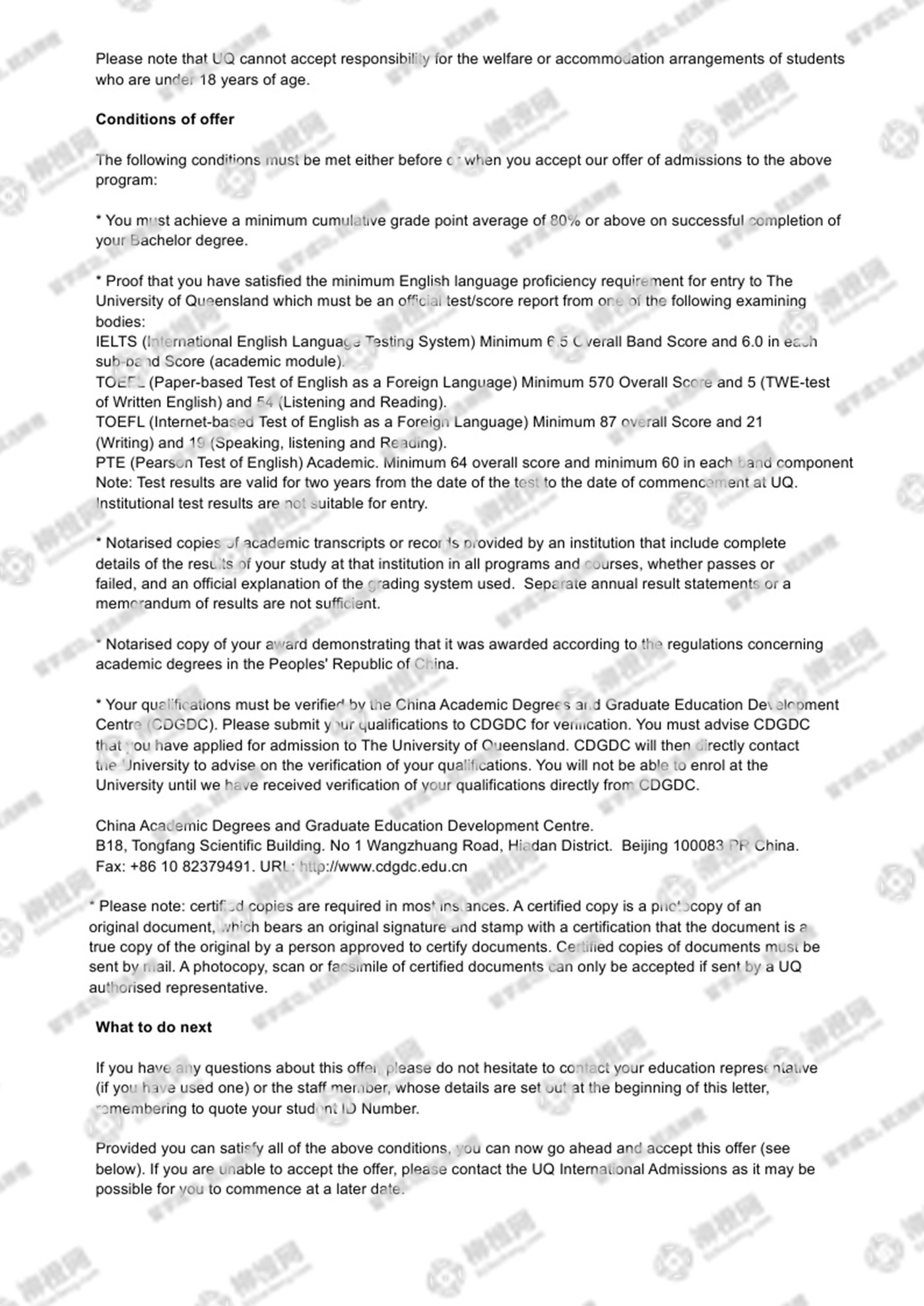 曹同学,GPA2.94,通过柳橙网申请到了昆士兰大学。