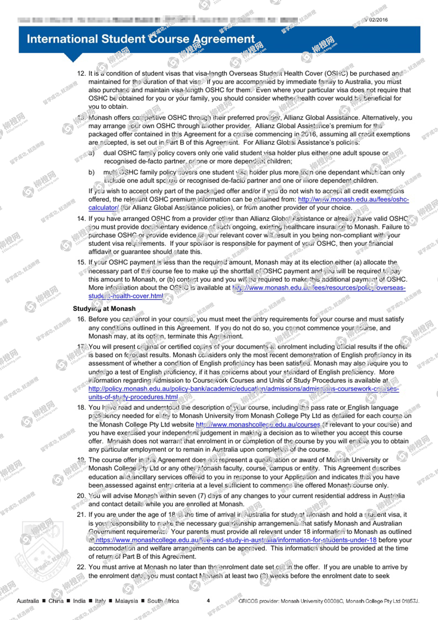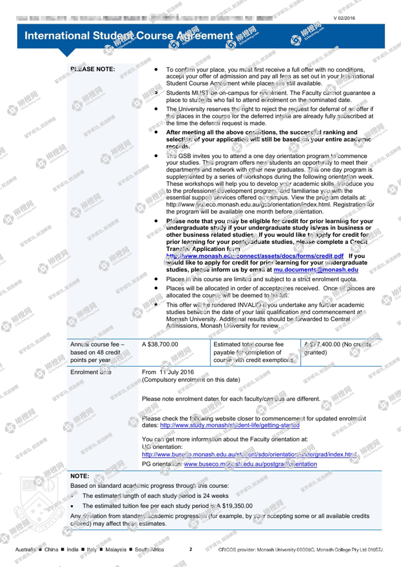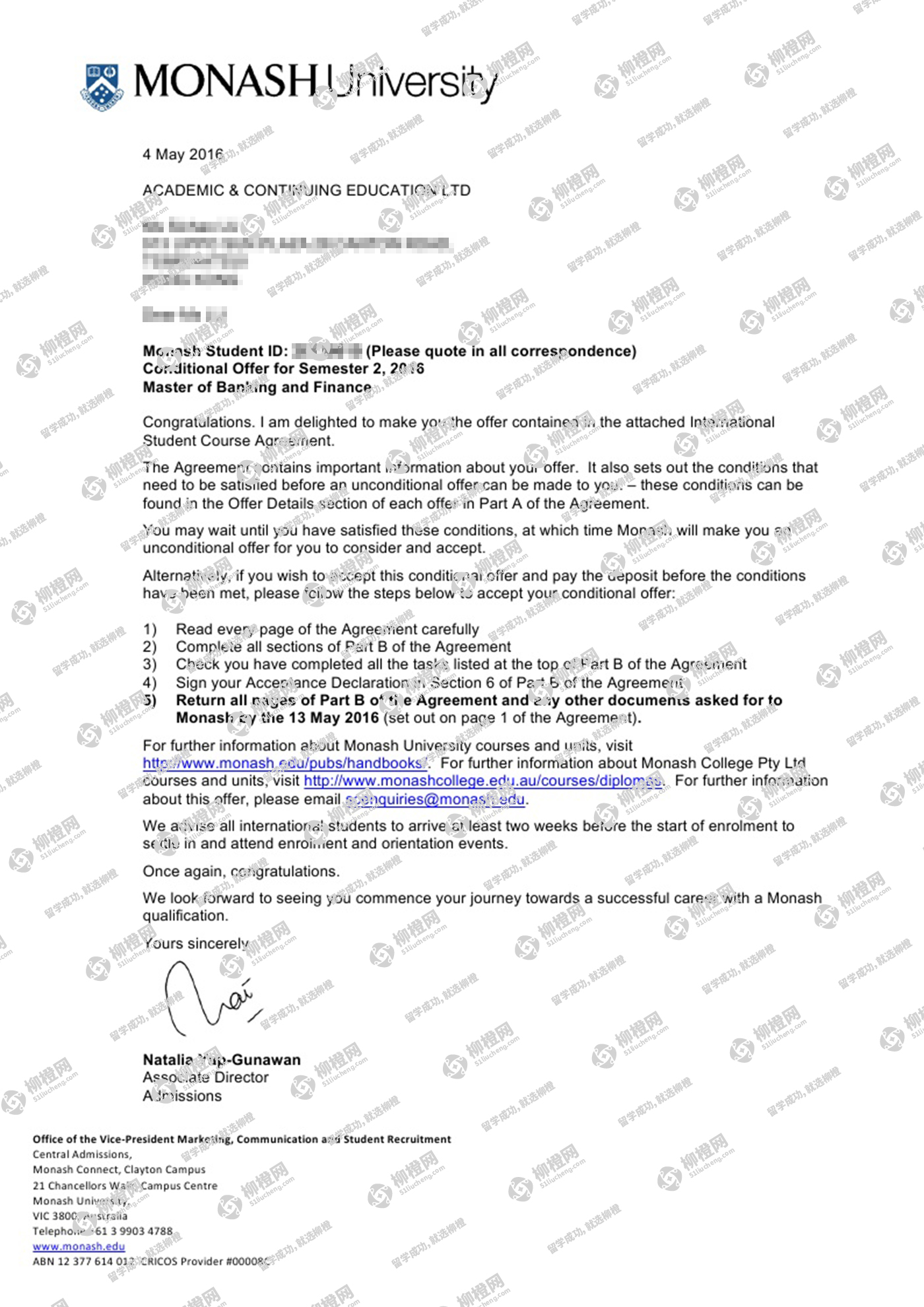 在柳橙网老师的专业指导下成功申请到了澳洲莫纳什大学,全程高效透明,值得推荐