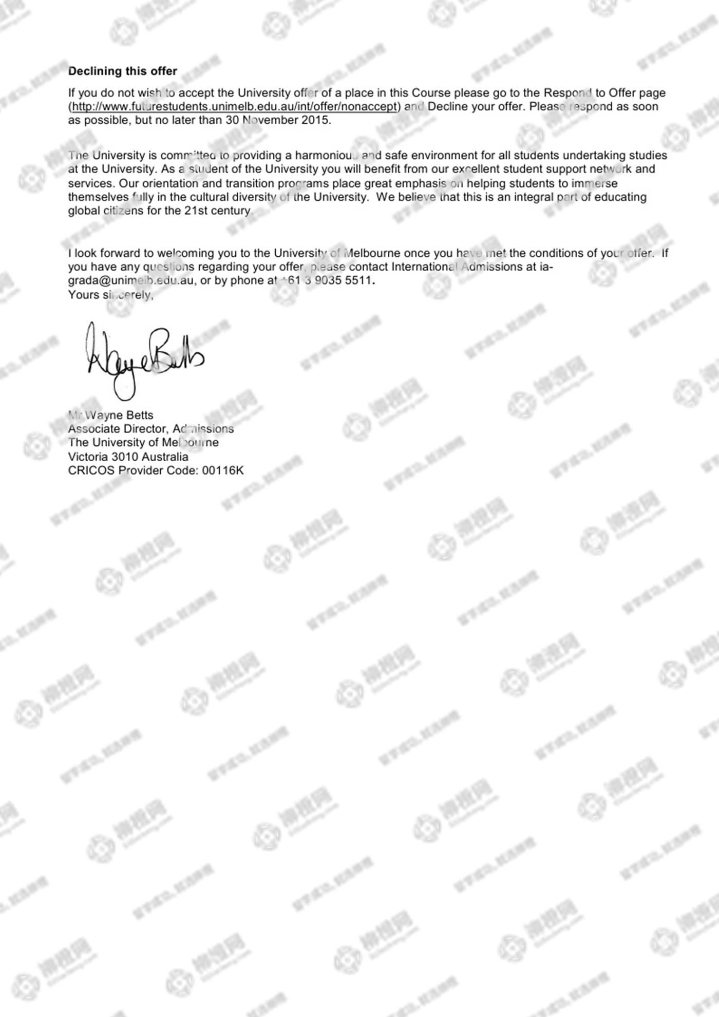 在柳橙网老师的专业指导下成功申请到了澳洲墨尔本大学,全程高效透明,值得推荐