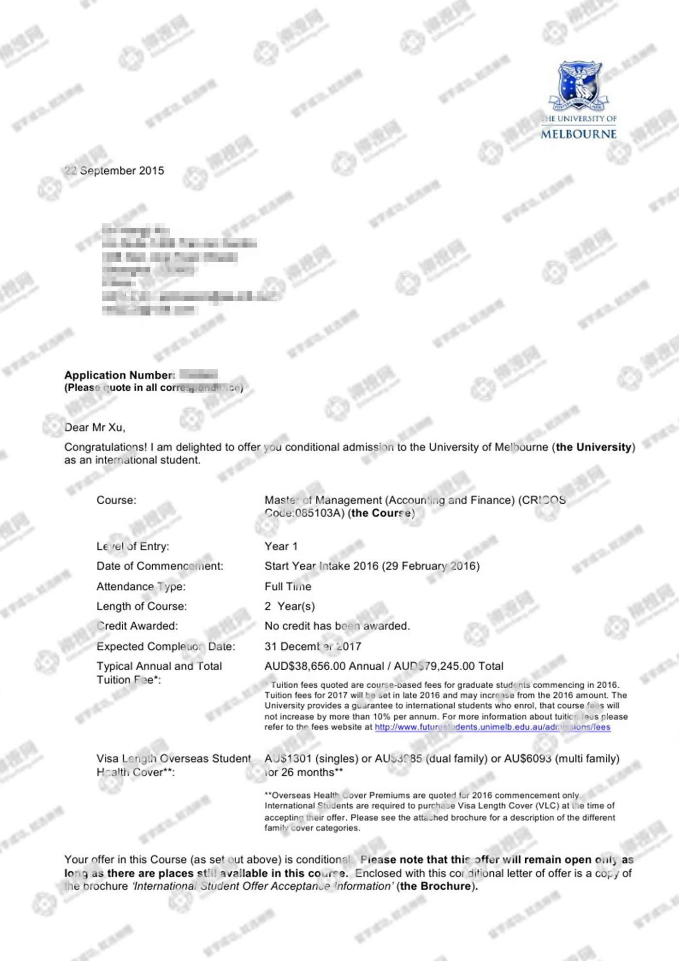 徐同学澳洲墨尔本大学offer