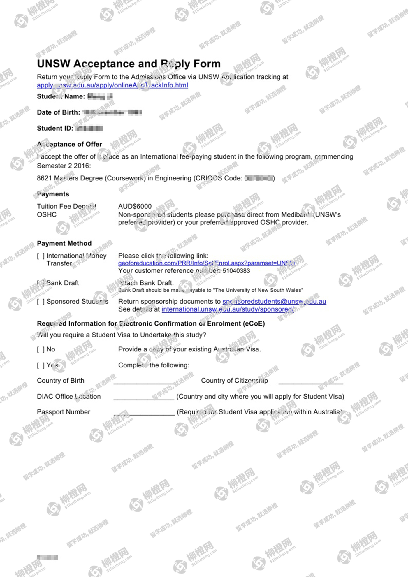 在柳橙网老师的专业指导下成功申请到了澳洲新南威尔士大学,全程高效透明,值得推荐