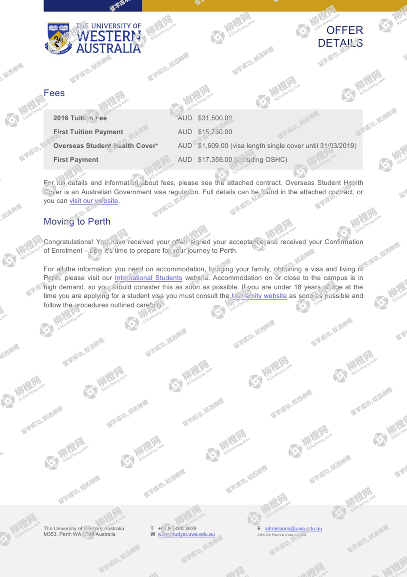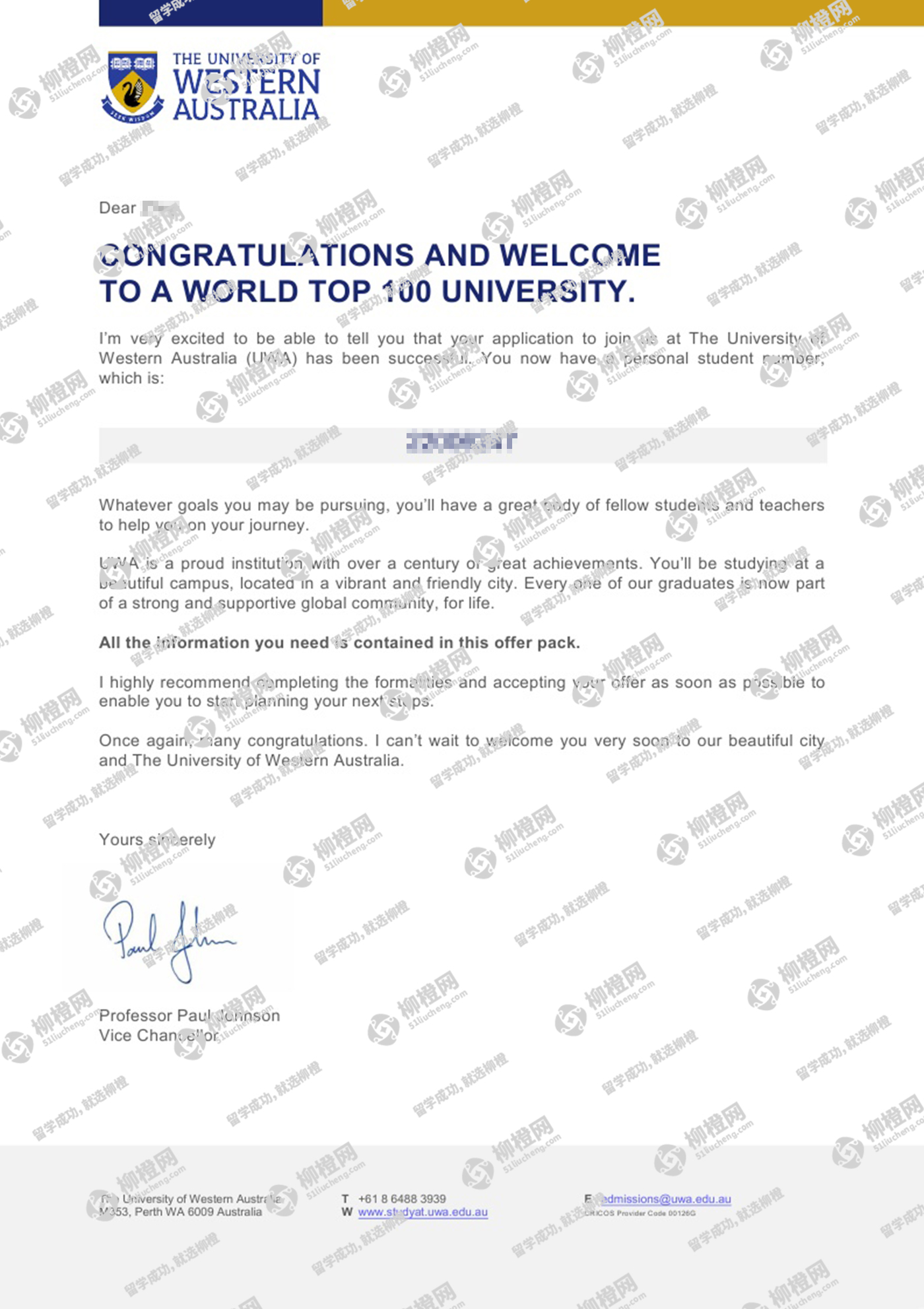 在柳橙网老师的专业指导下成功申请到了澳洲西澳大学,全程高效透明,值得推荐