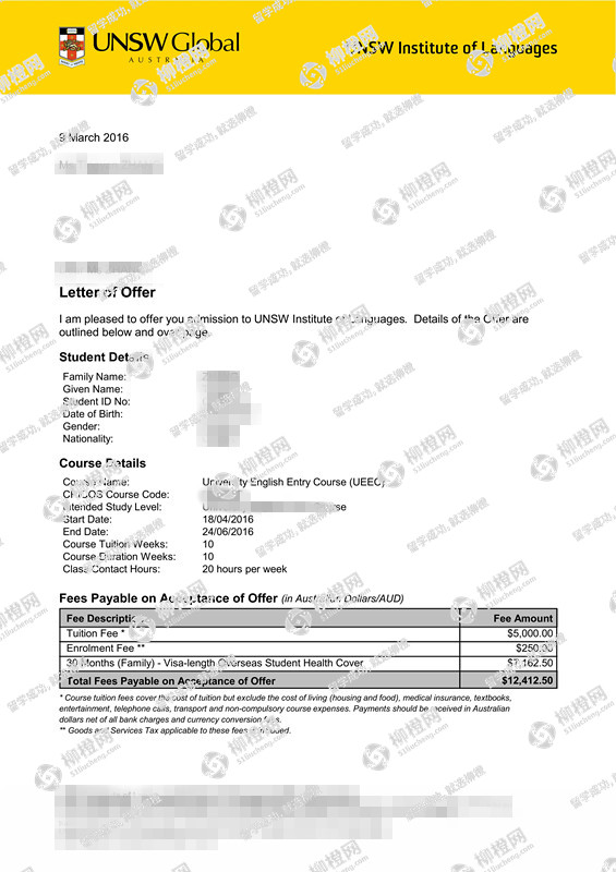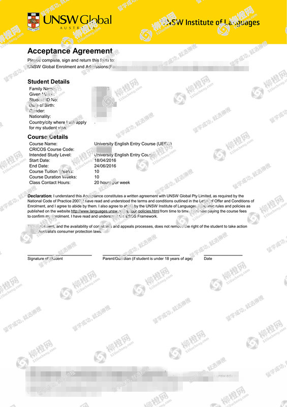 恭喜张同学获得澳洲新南威尔士大学语言offer