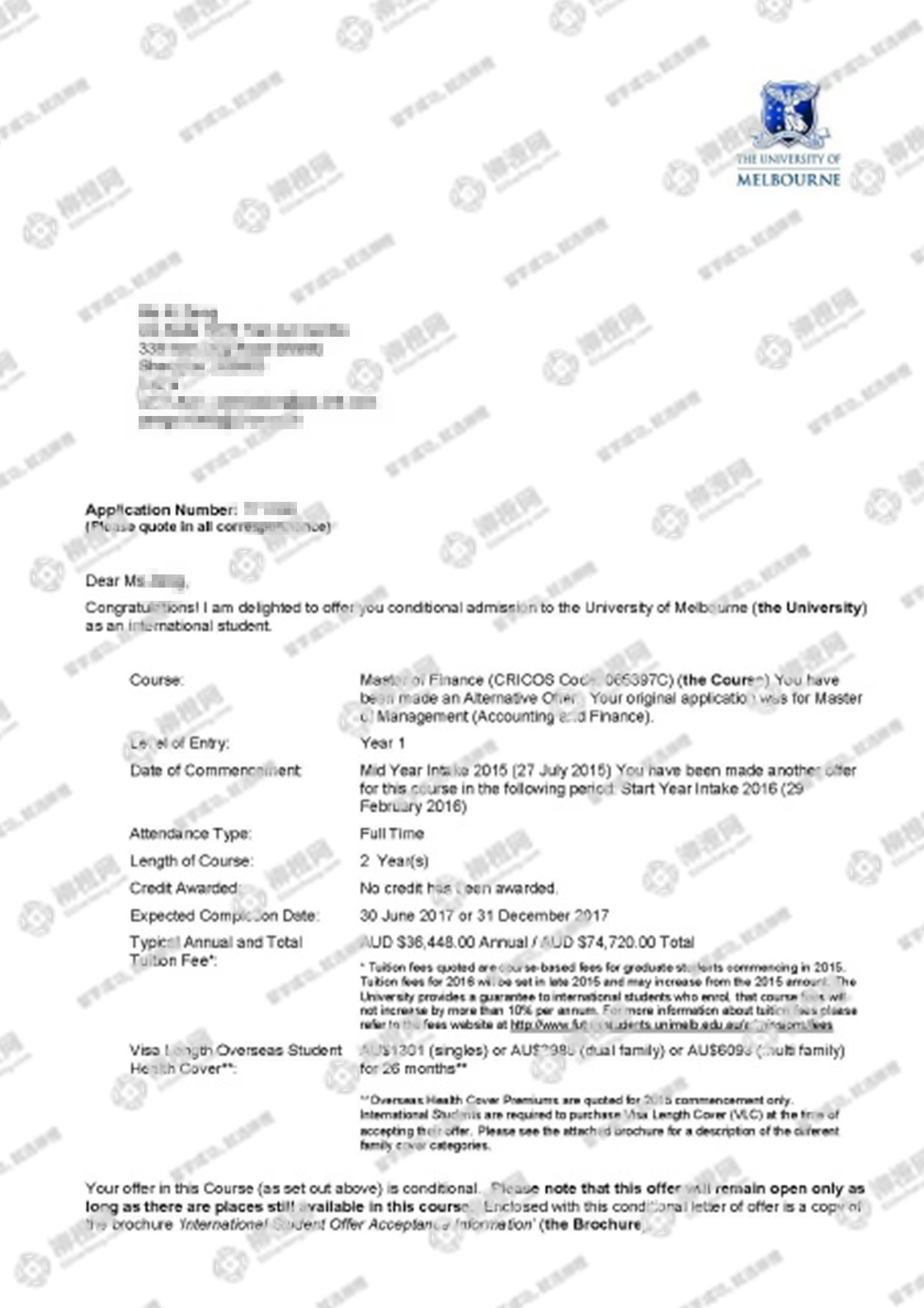 恭喜曾同学获得澳洲墨尔本大学offer