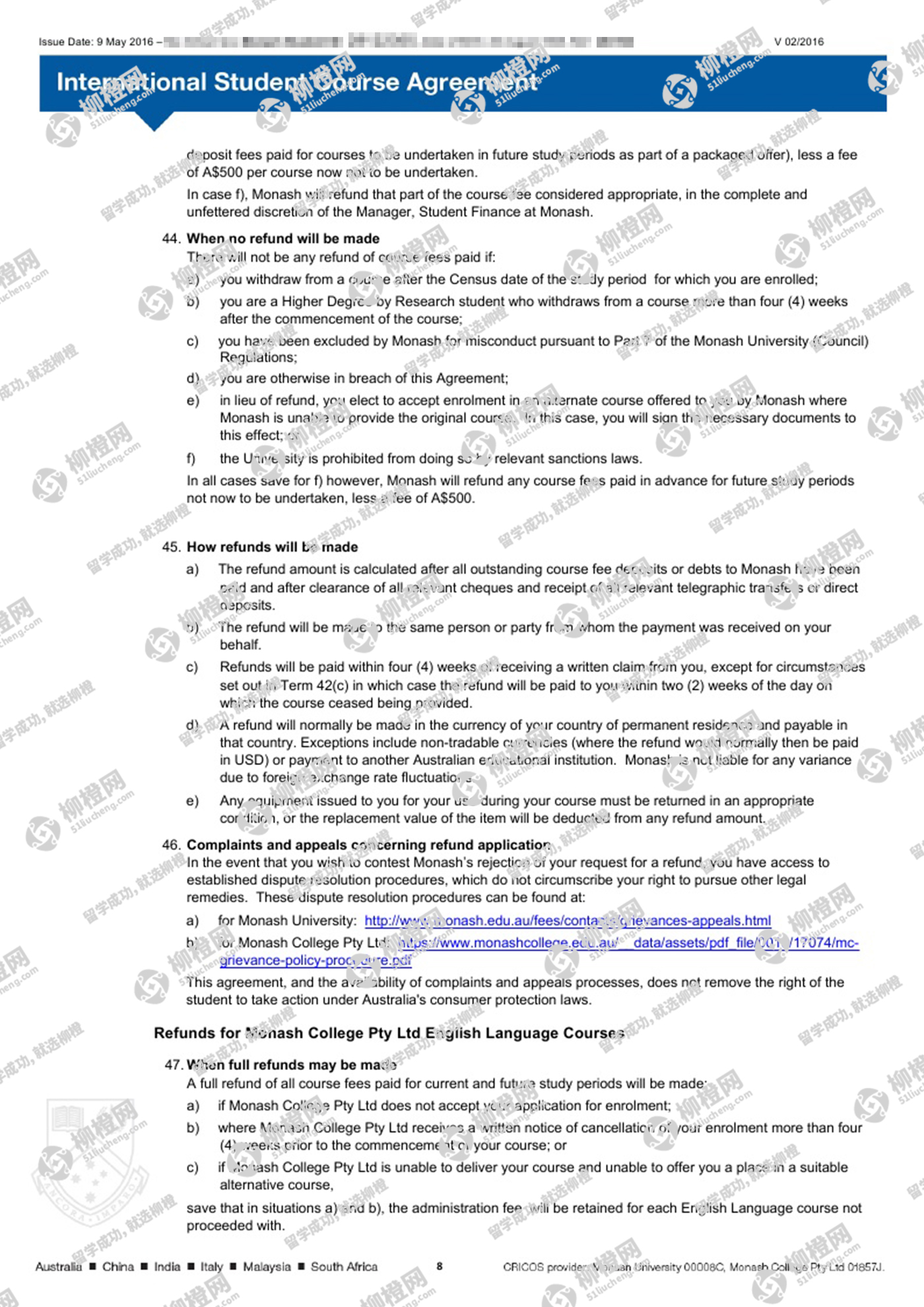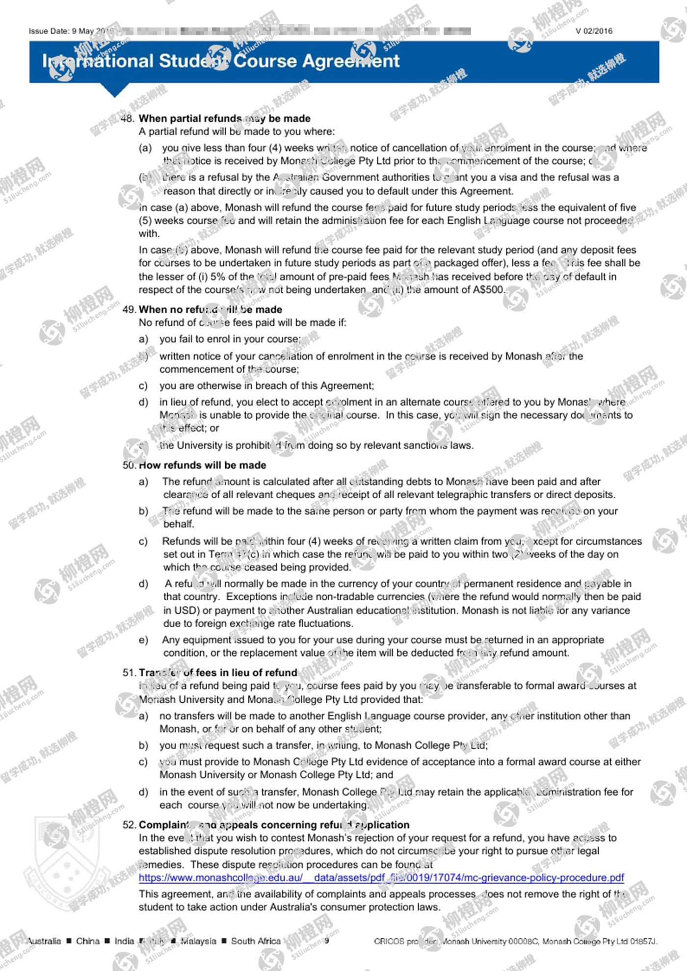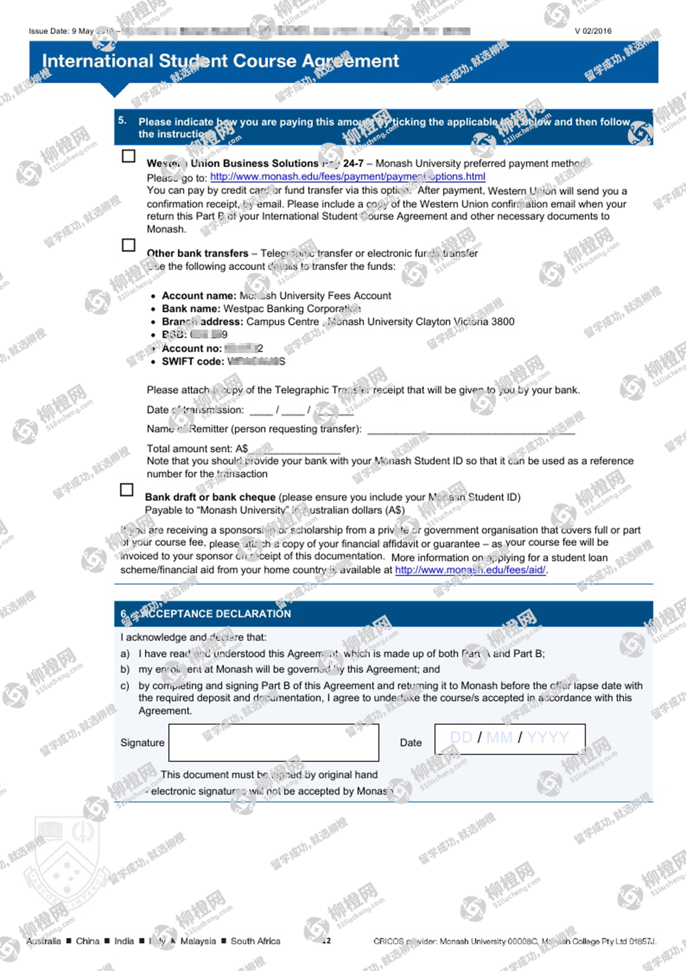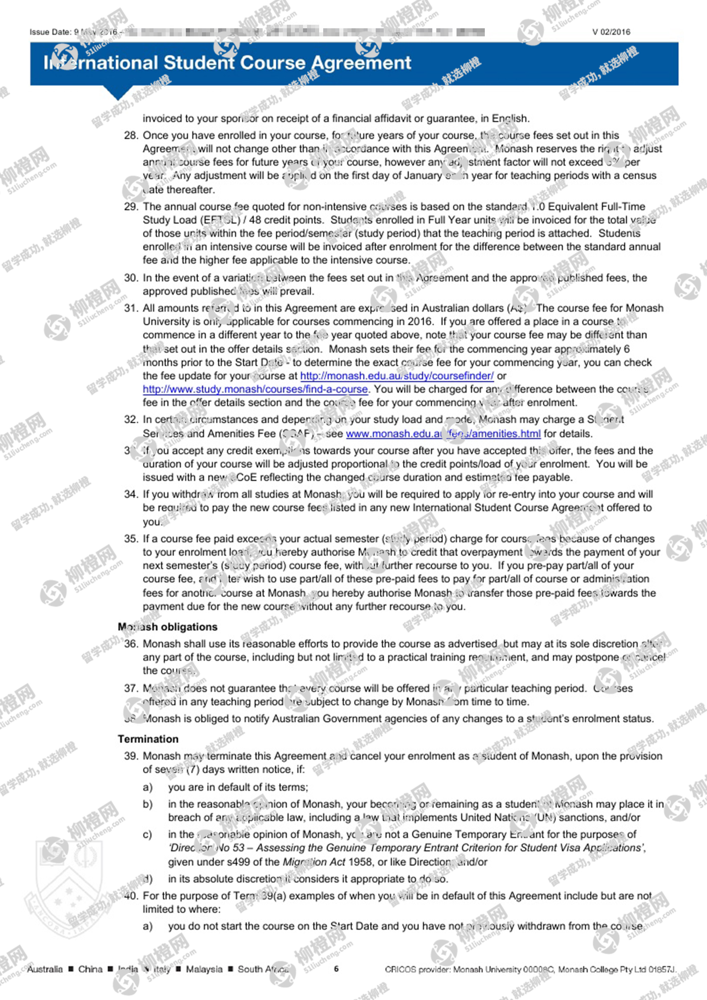 恭喜田同学获得澳洲莫纳什大学offer