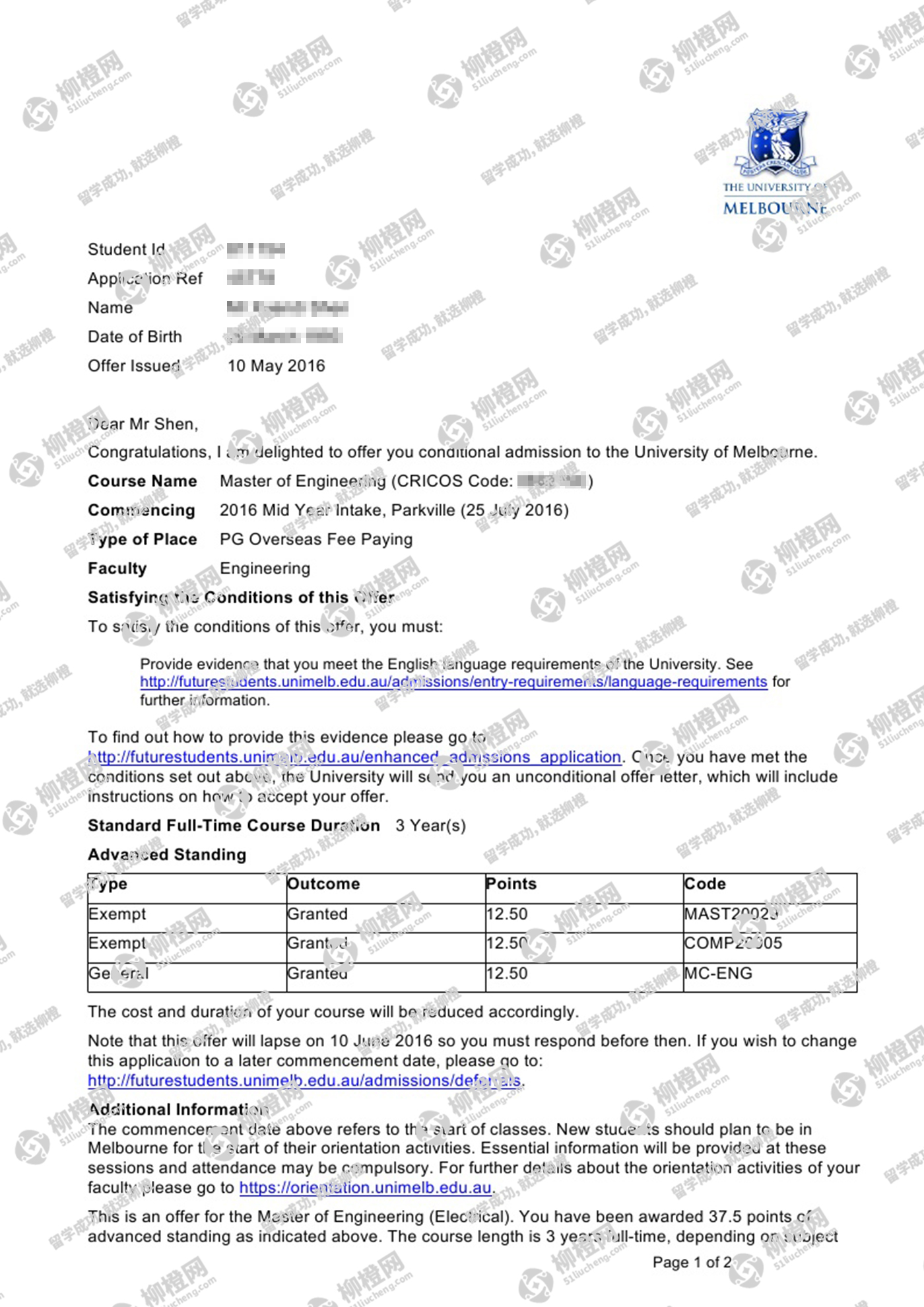 沈同学,双非背景,在柳橙网专业老师的帮助下,成功拿到了澳洲顶级大学墨尔本大学的offer。