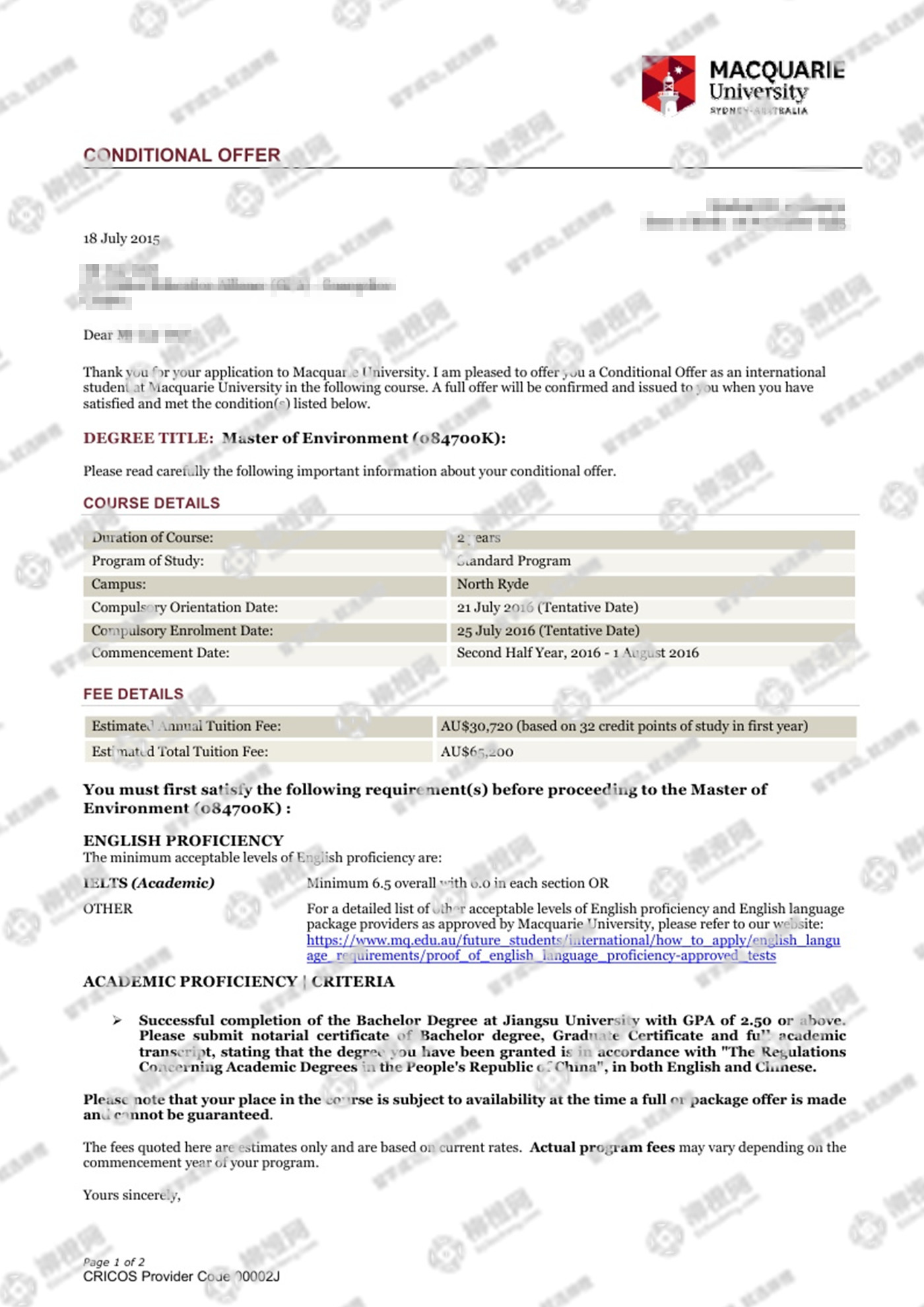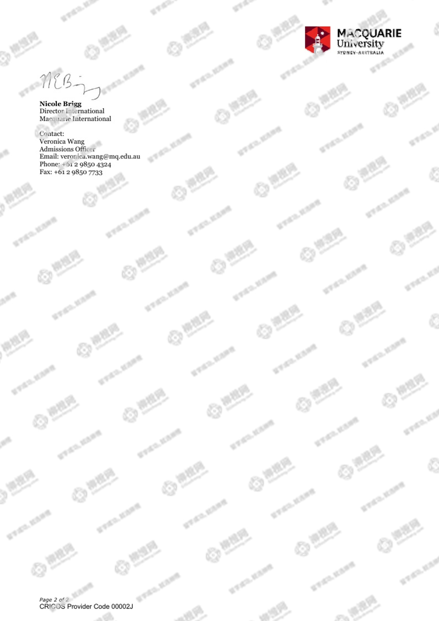 恭喜同学获得麦考瑞大学录取