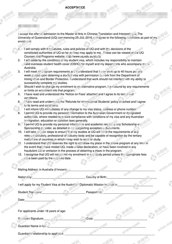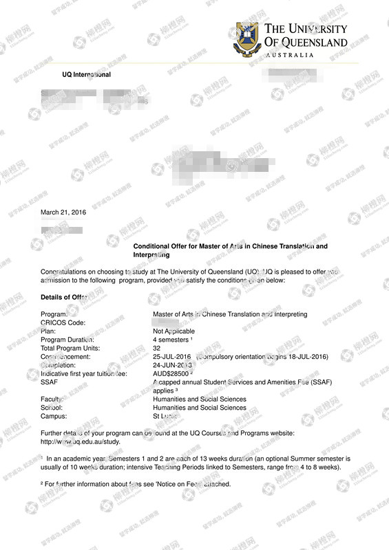 解放军信息工程大学 通信工程 80分申到昆士兰大学Arts in Chinese Translation and Interpreting (MACTI)