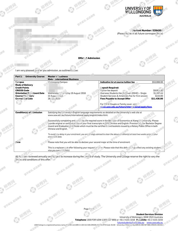 湘潭大学经济学专业72.8分申到卧龙岗大学 bussiness专业