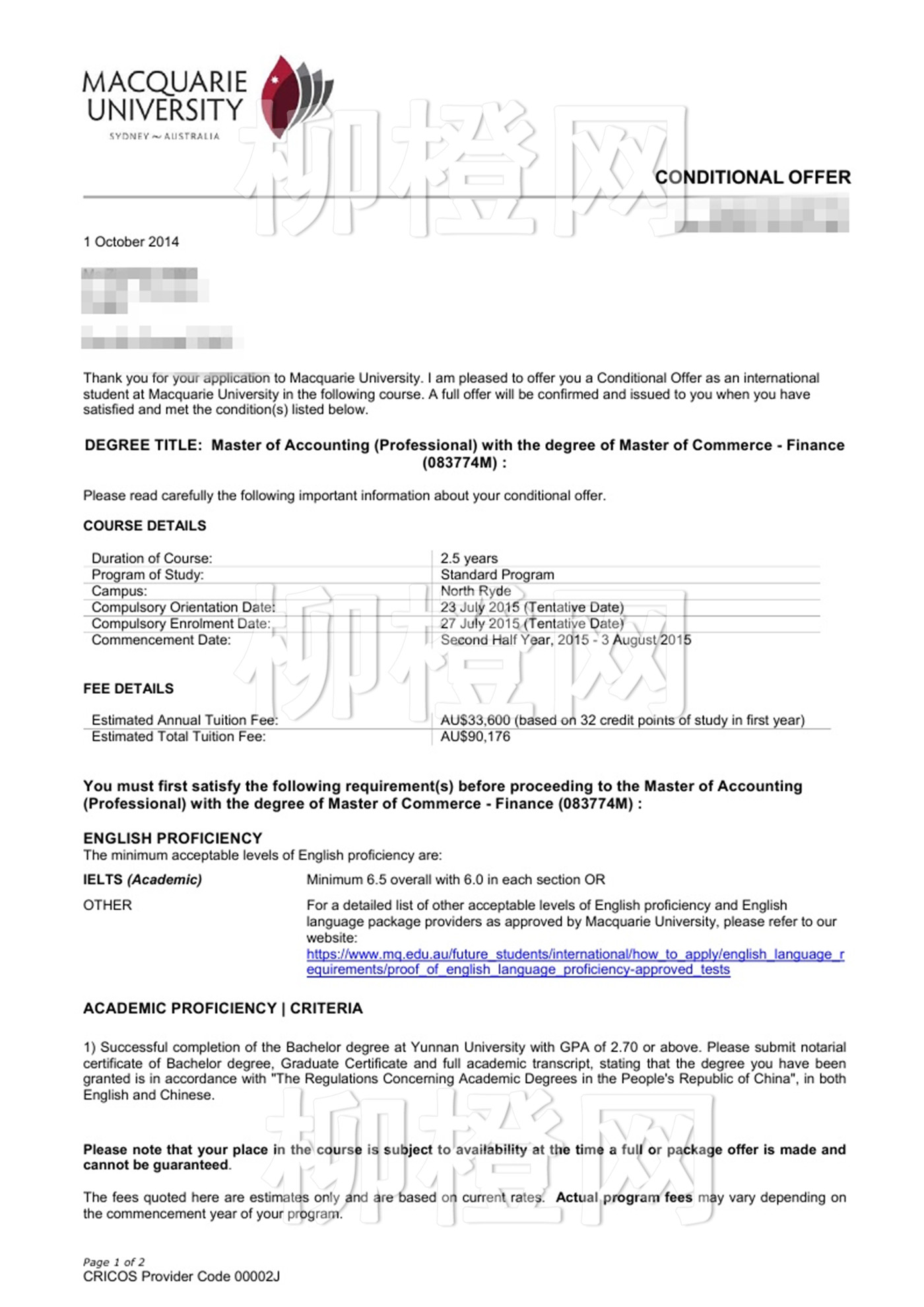 麦考瑞大学 最好的专业是会计 ,金融 ,专业排名也不错