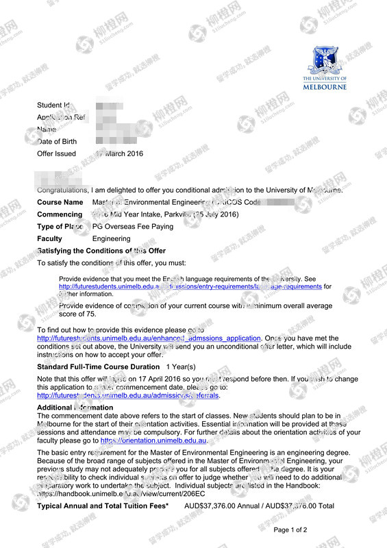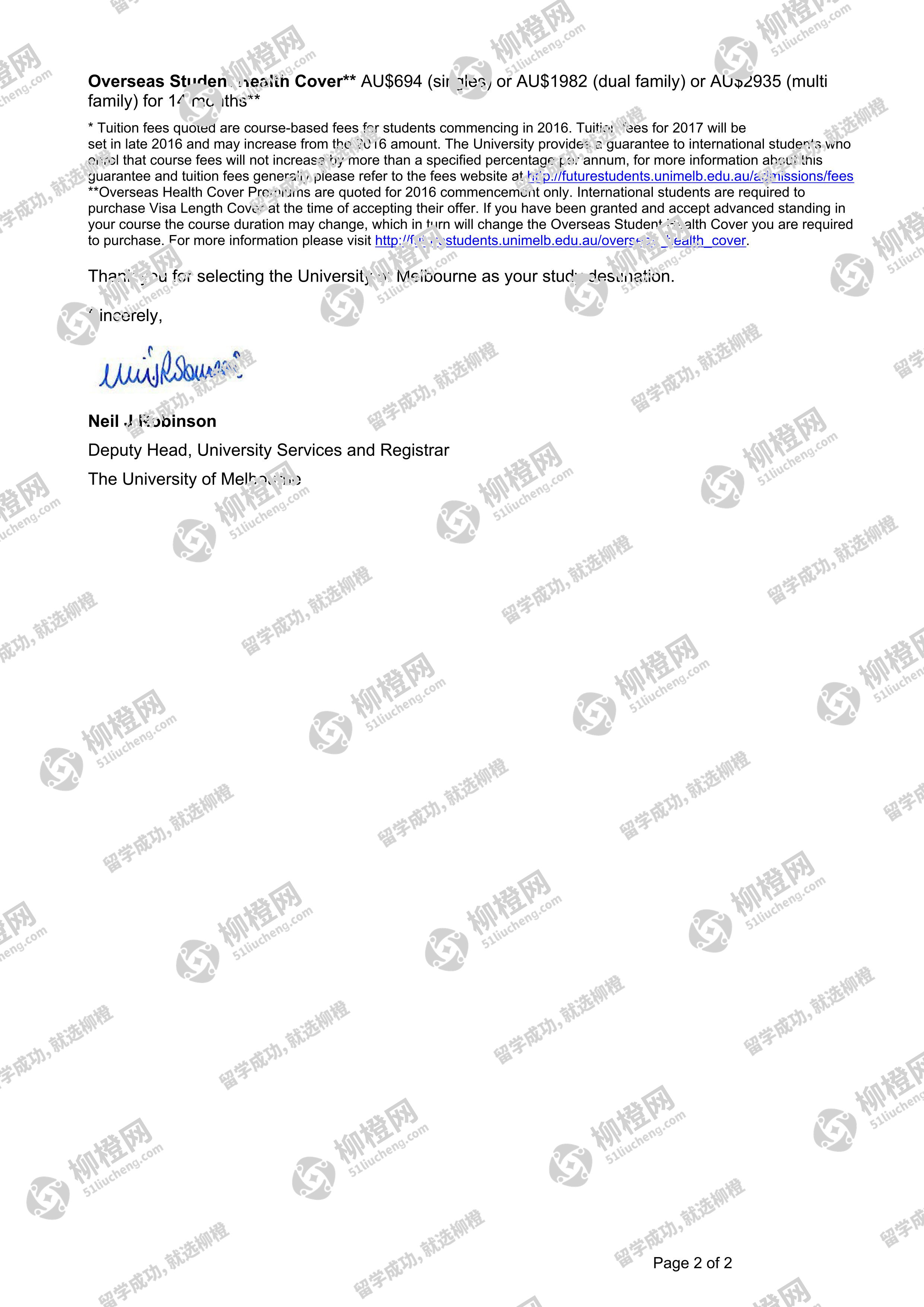 恭喜鲁同学在上海柳橙网申请到了澳大利亚的世界名校墨尔本大学的offer。