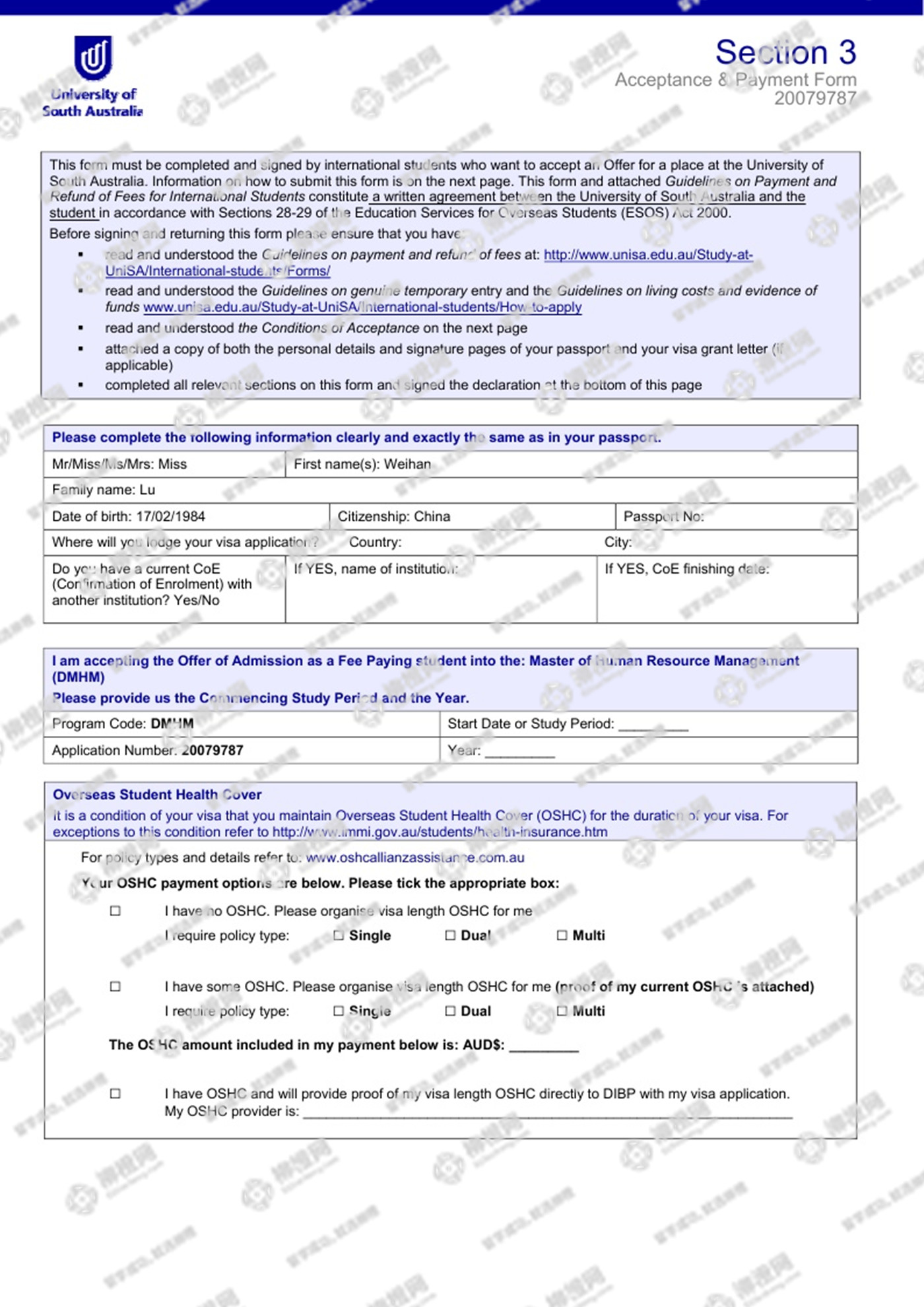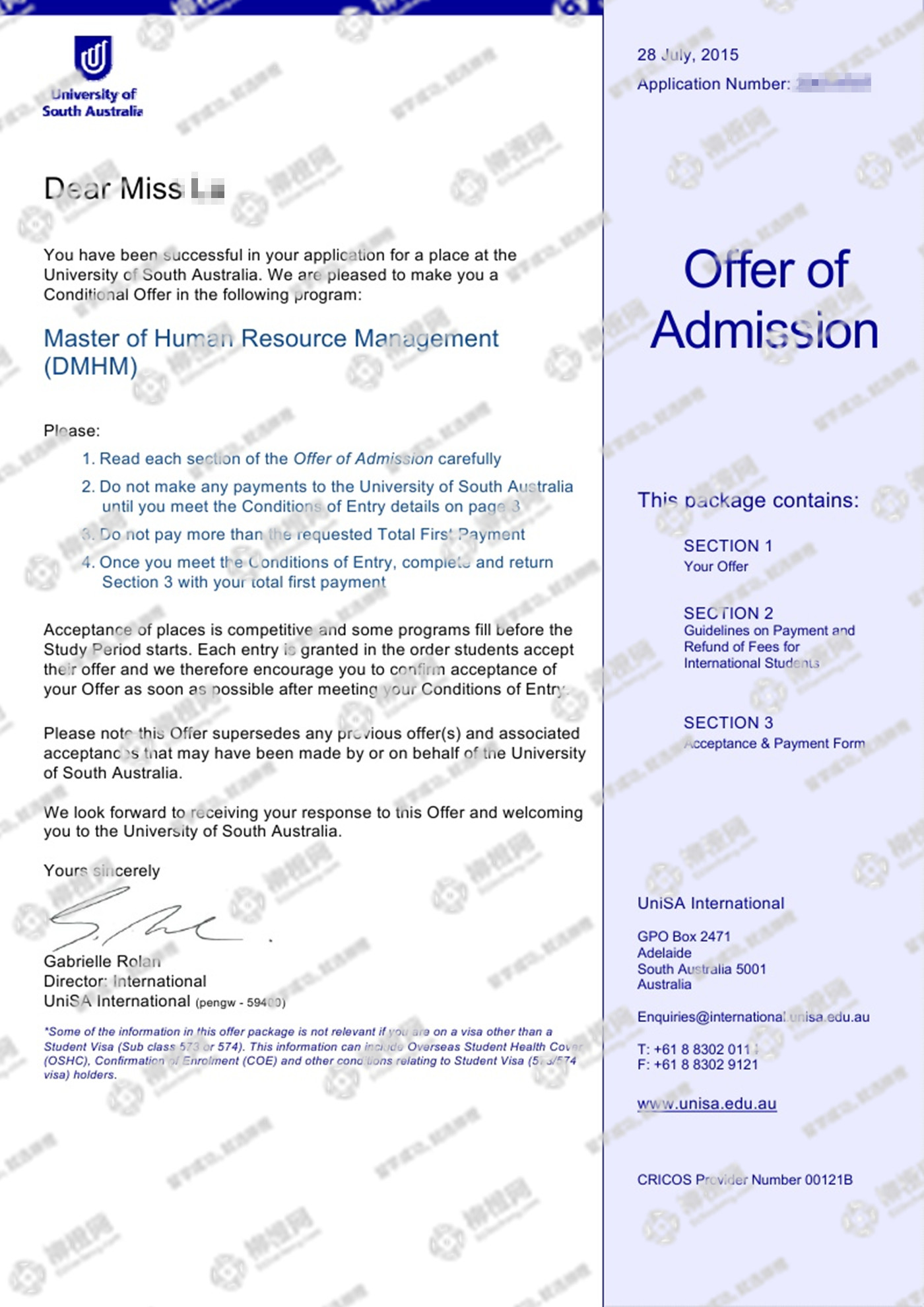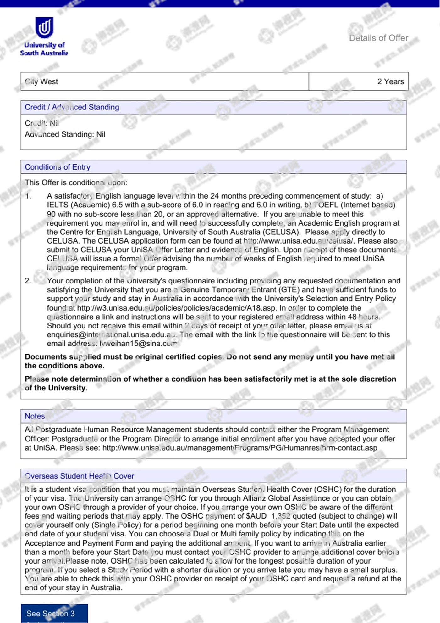 恭喜吕同学在上海柳橙网顺利地申请到了澳大利亚 南澳大学的offer。