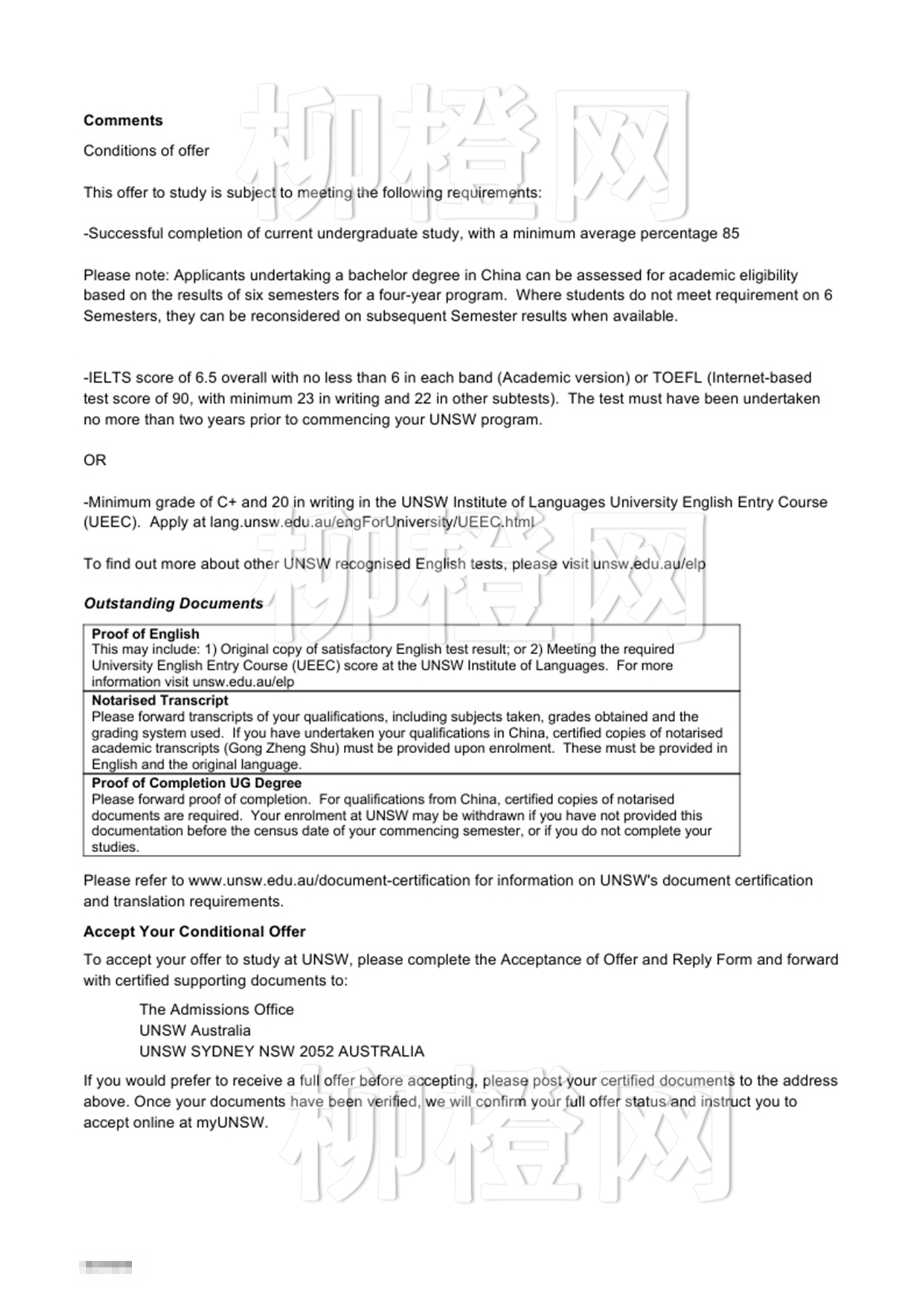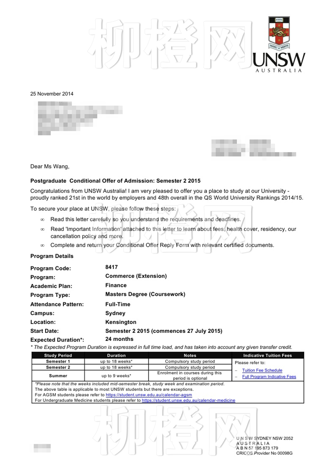 在最新的“QS世界大学排名(2015-2016)”中,新南威尔士大学位居世界第46位,为世界Top50大学。均分不错,在柳橙团队的耐心指导下,学生对于申请方向有了清晰的认识。