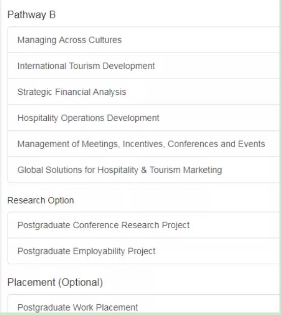 课程设置:有2个方向 Pathway A 是针对没有相关本科专业背景学生;Pathway B 是针对有相关专业背景的学生。Pathway B还包括一个5天的到欧洲研学,这个研学活动的费用已经包括在学费中。另外2年的课程还可以选择是否参加实习。