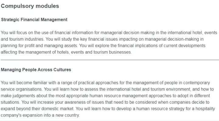 MSc International Hospitality and Tourism Management